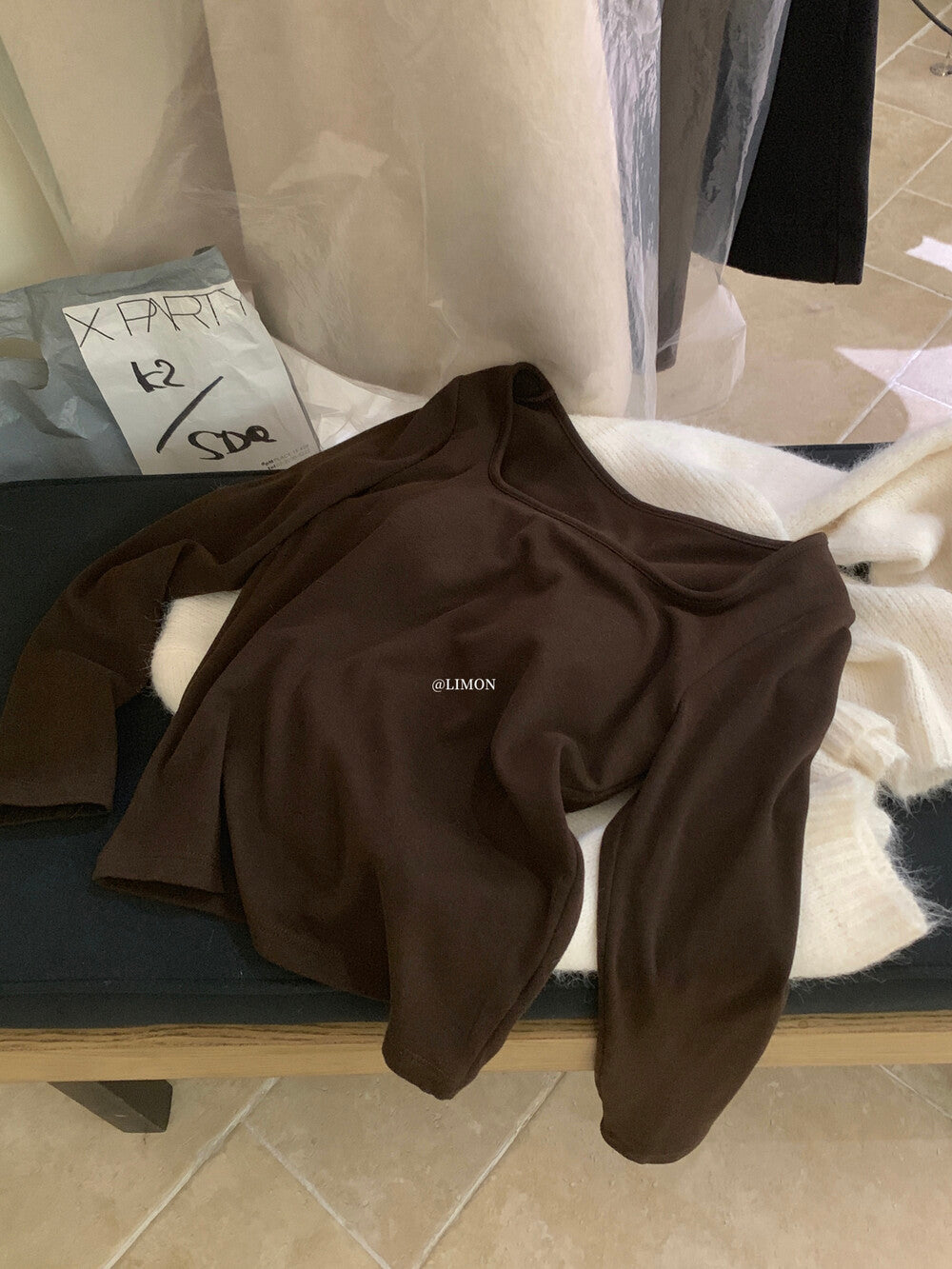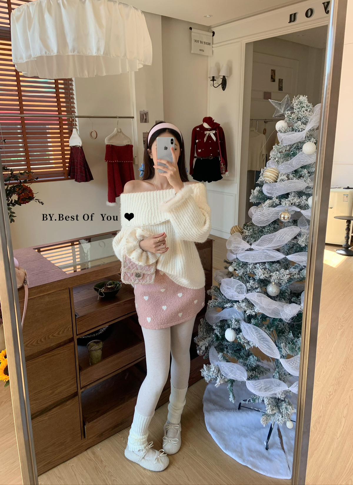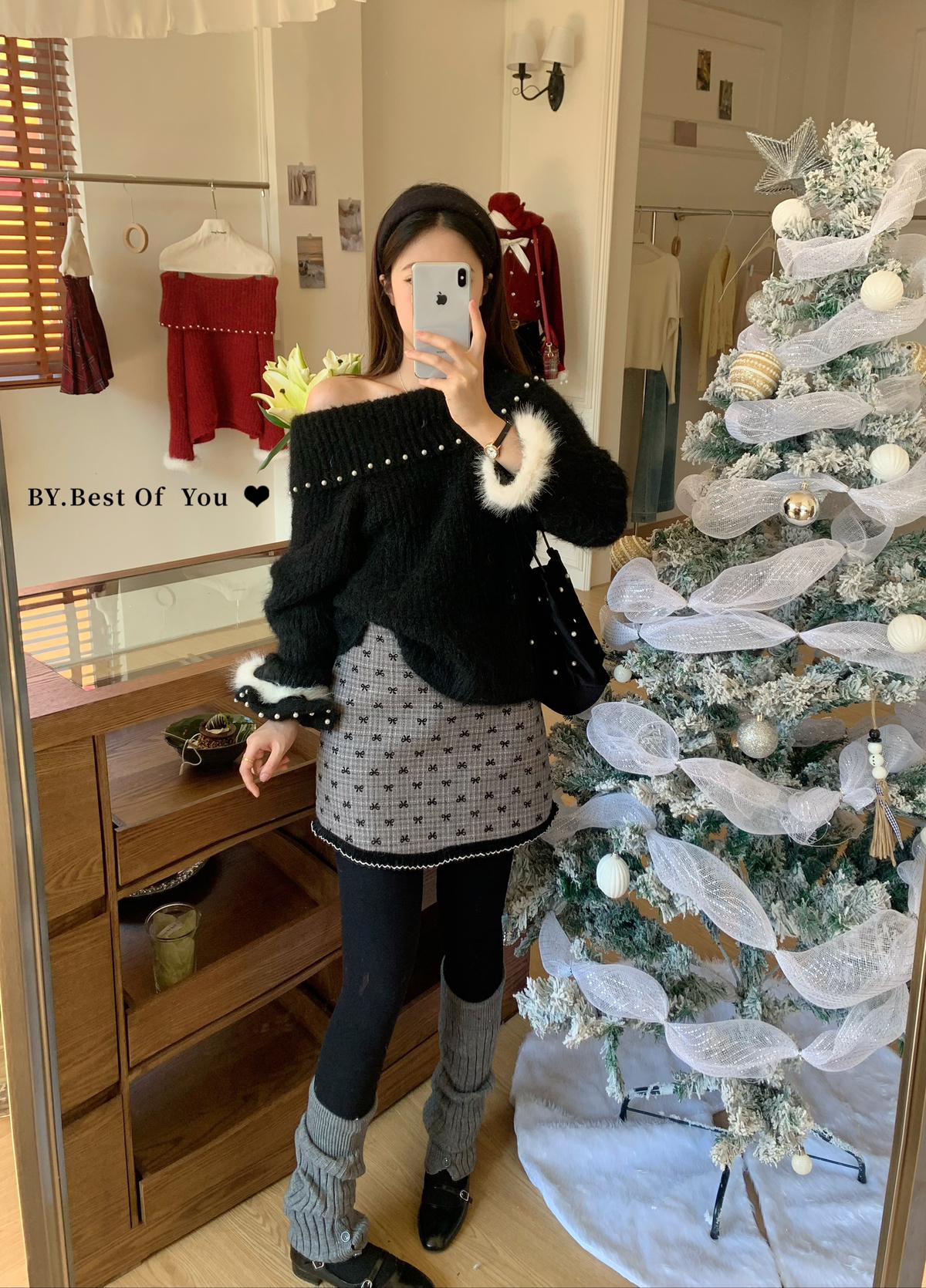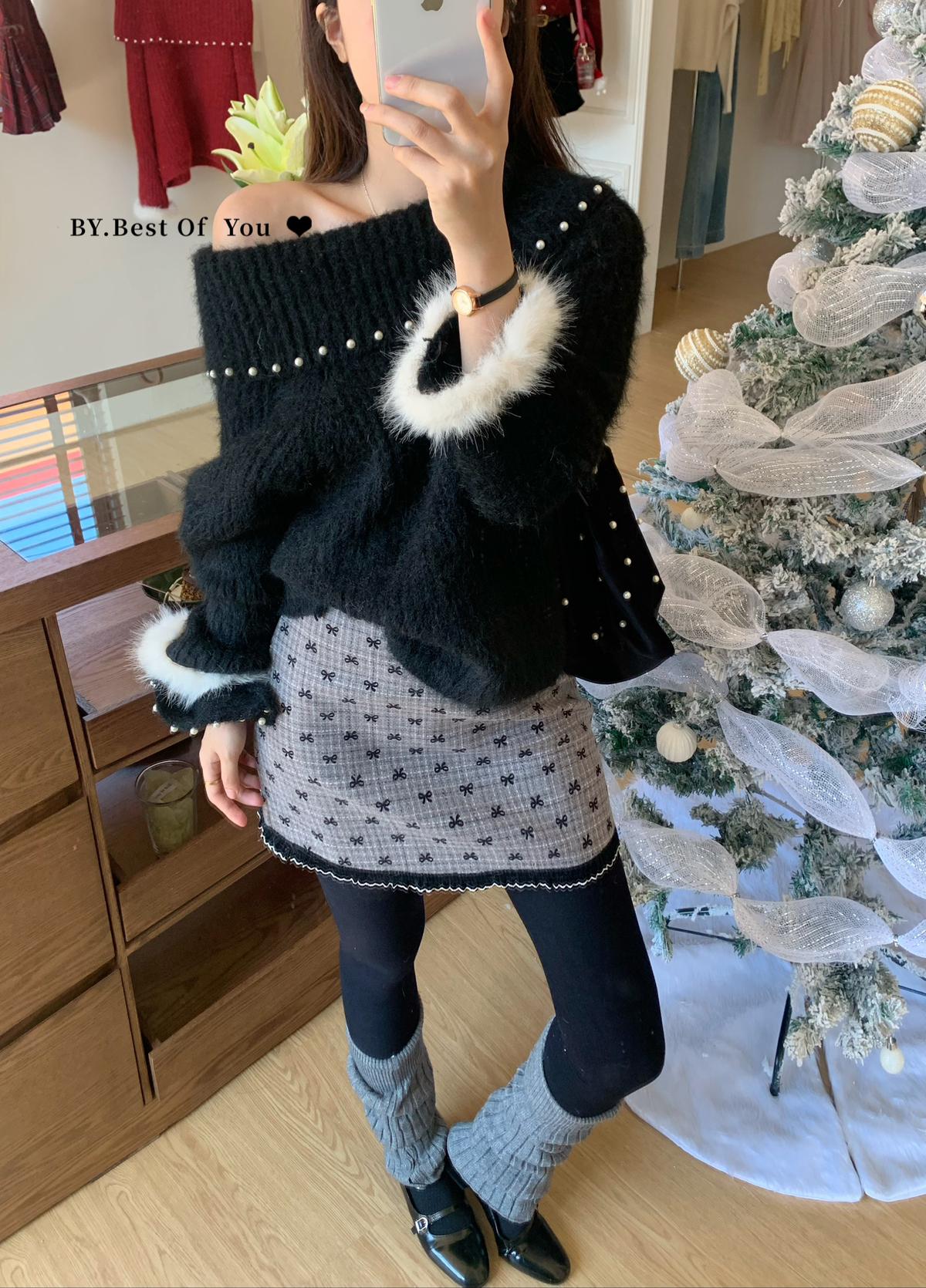 【C8052】溫柔設計感燙鑽一字肩針織衫(含8%羊毛)