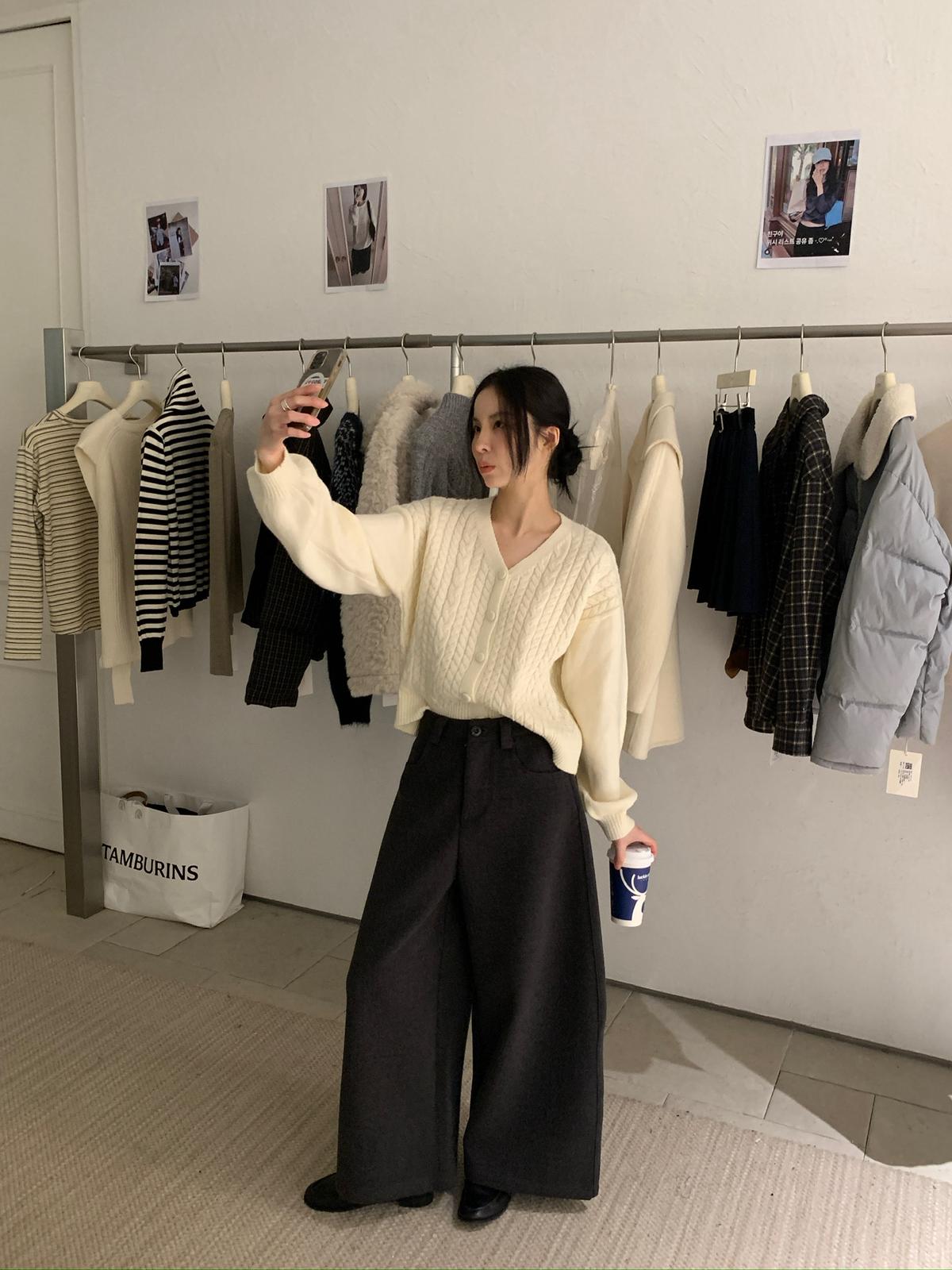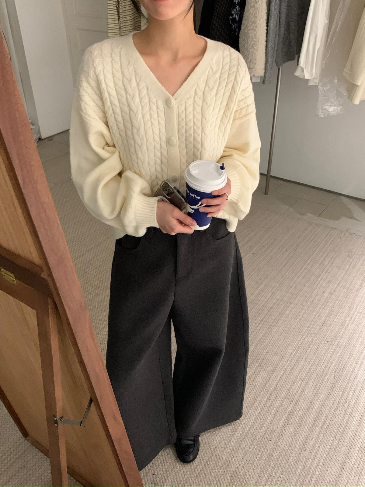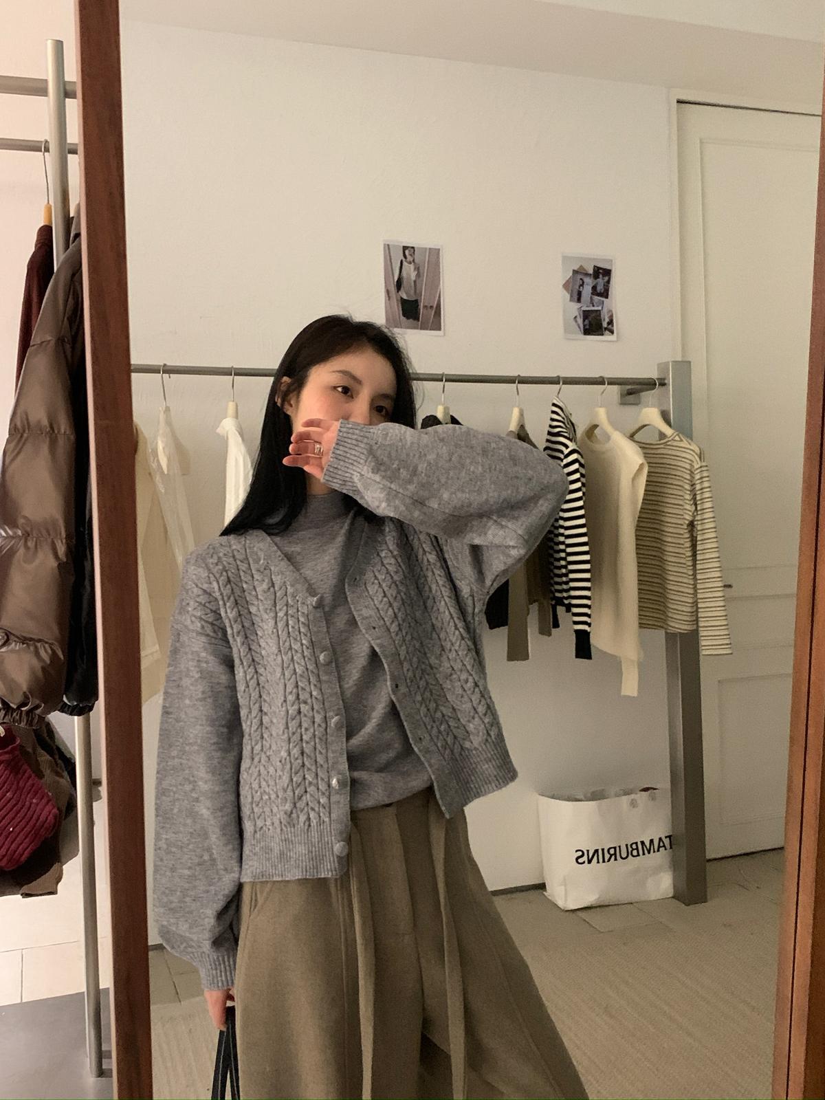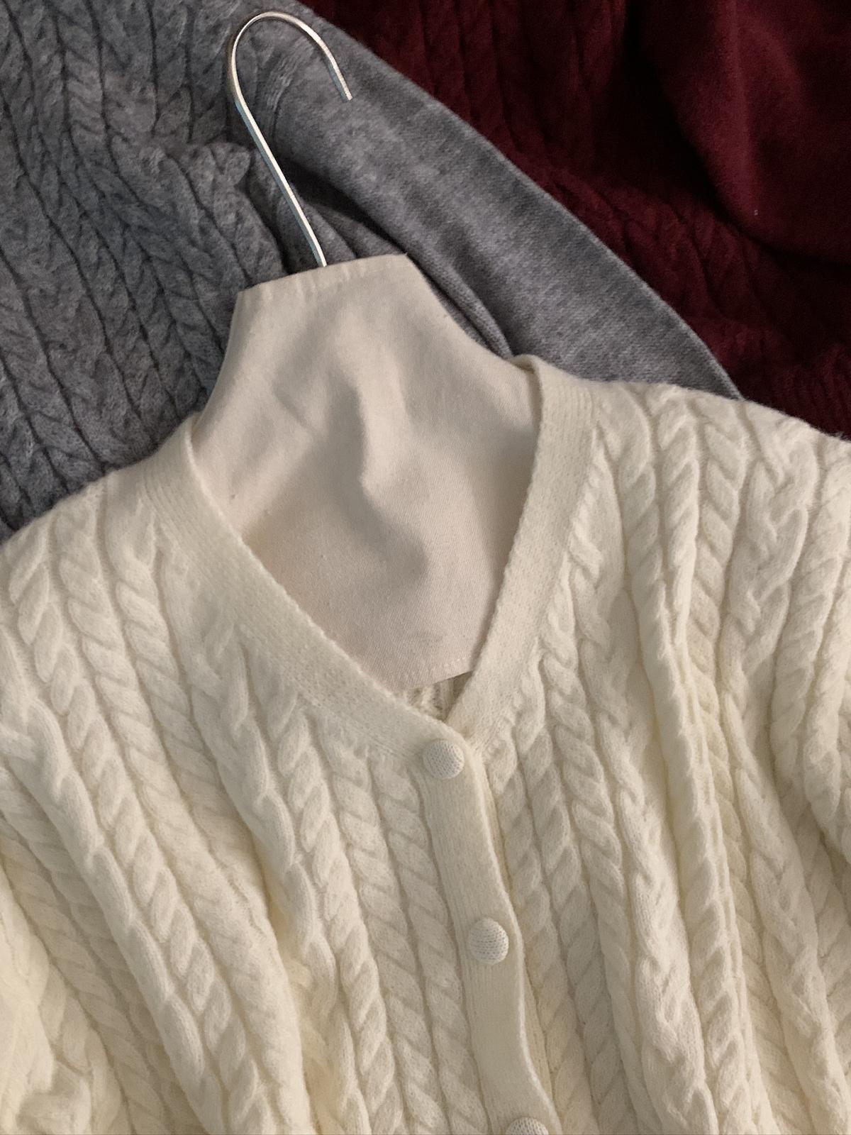 【C8035】韓系軟糯麻花V領開衫毛衣