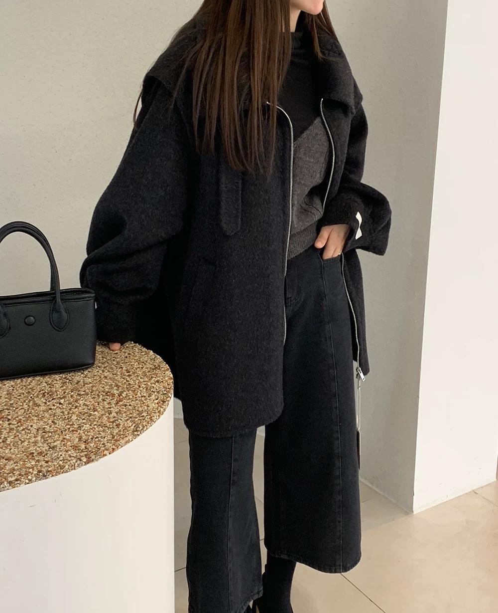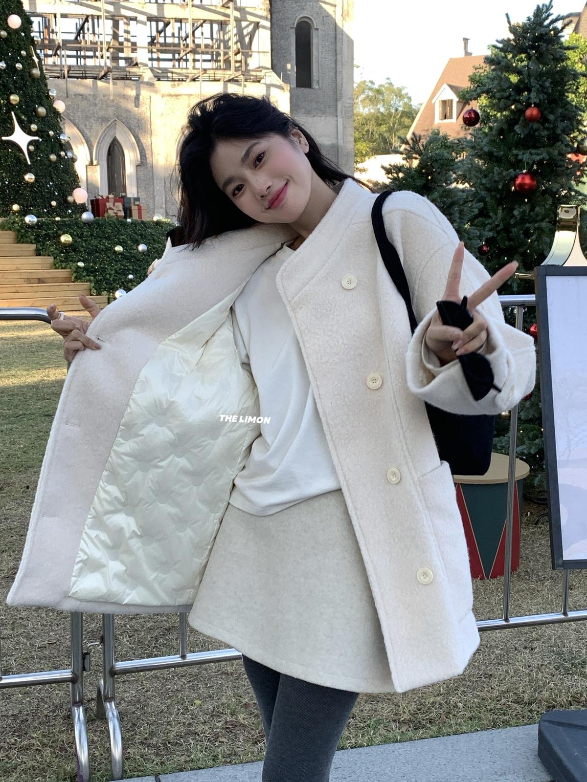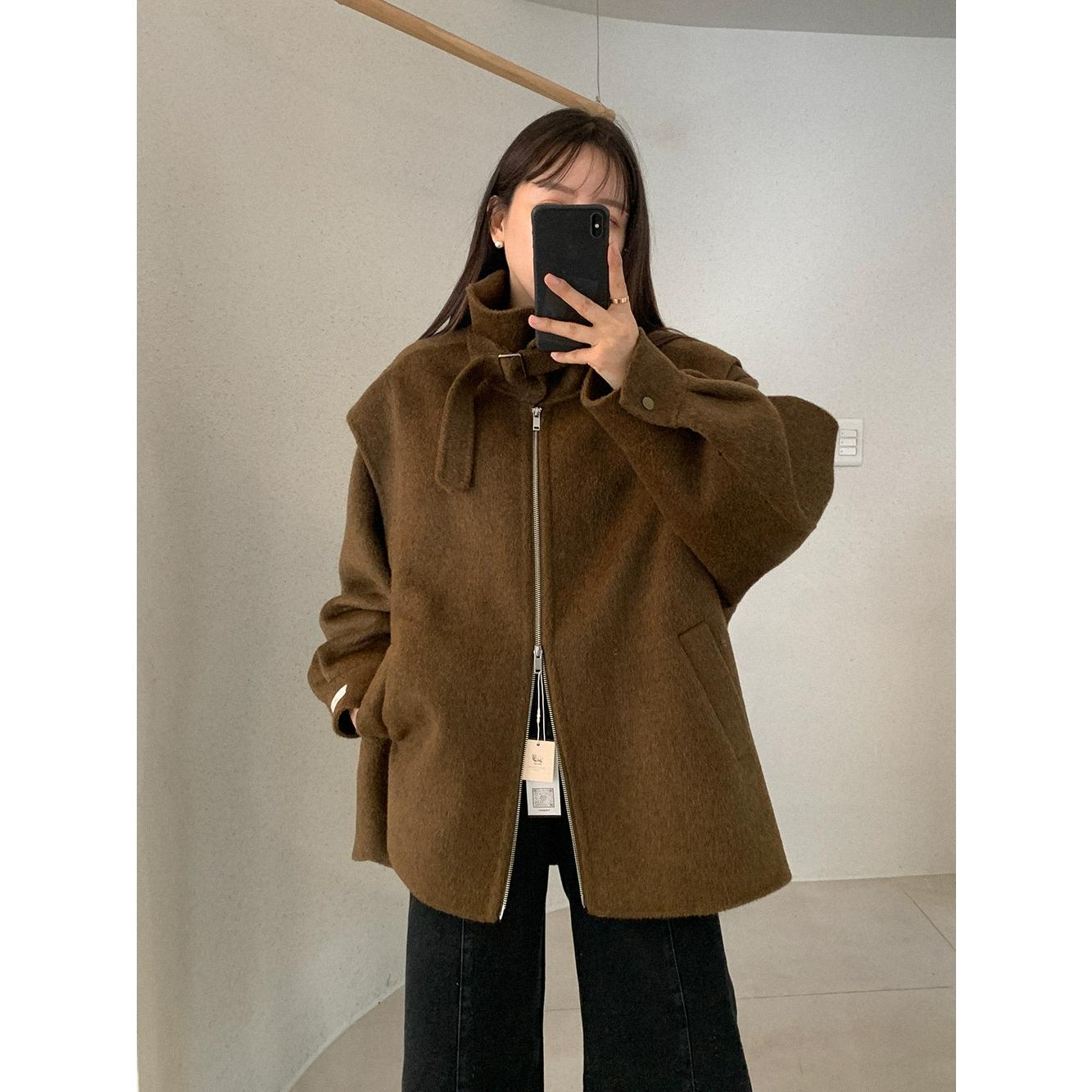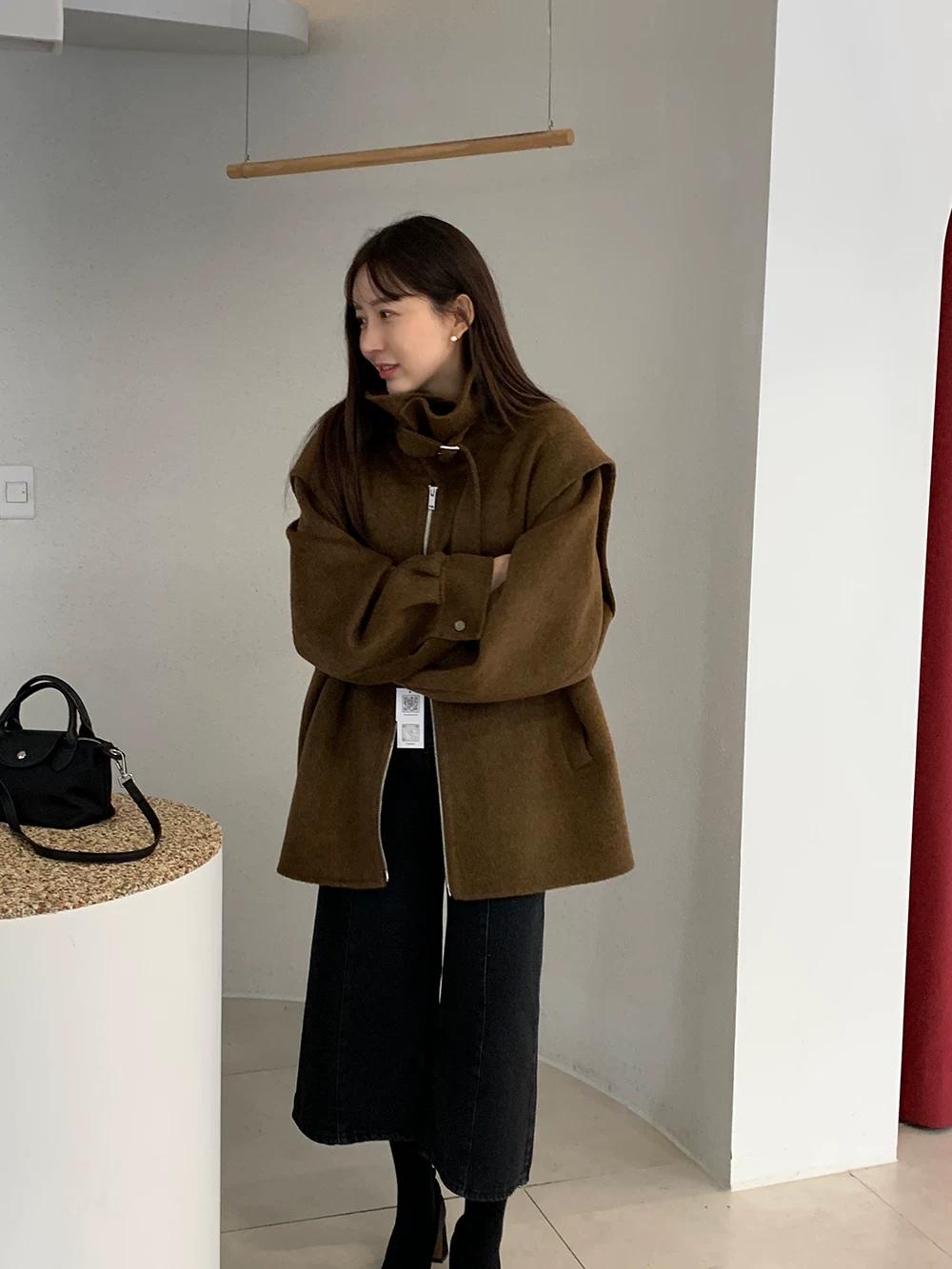 【C8036】設計感韓系翻領坎肩毛呢大衣復古立領設計感毛呢外套女大衣