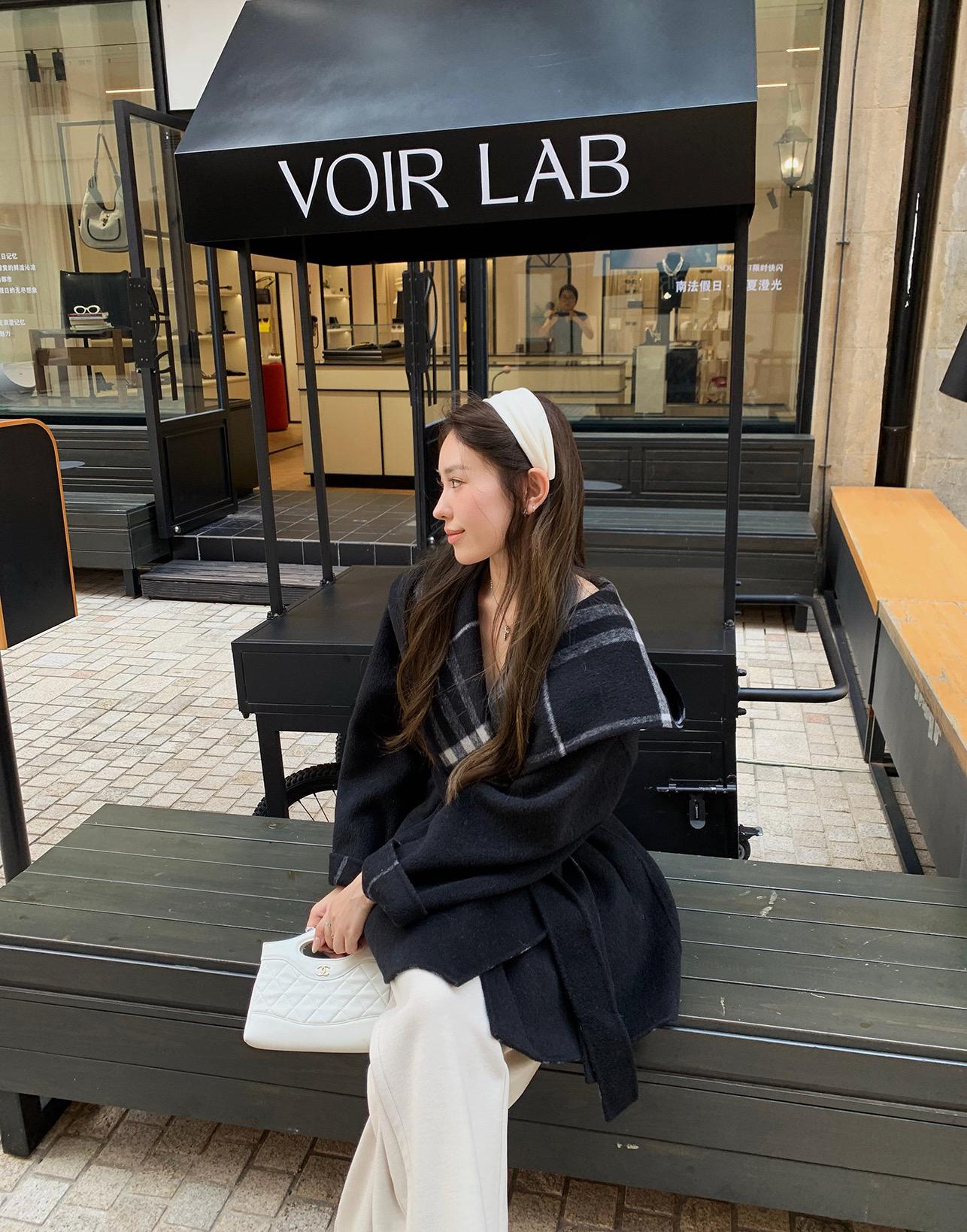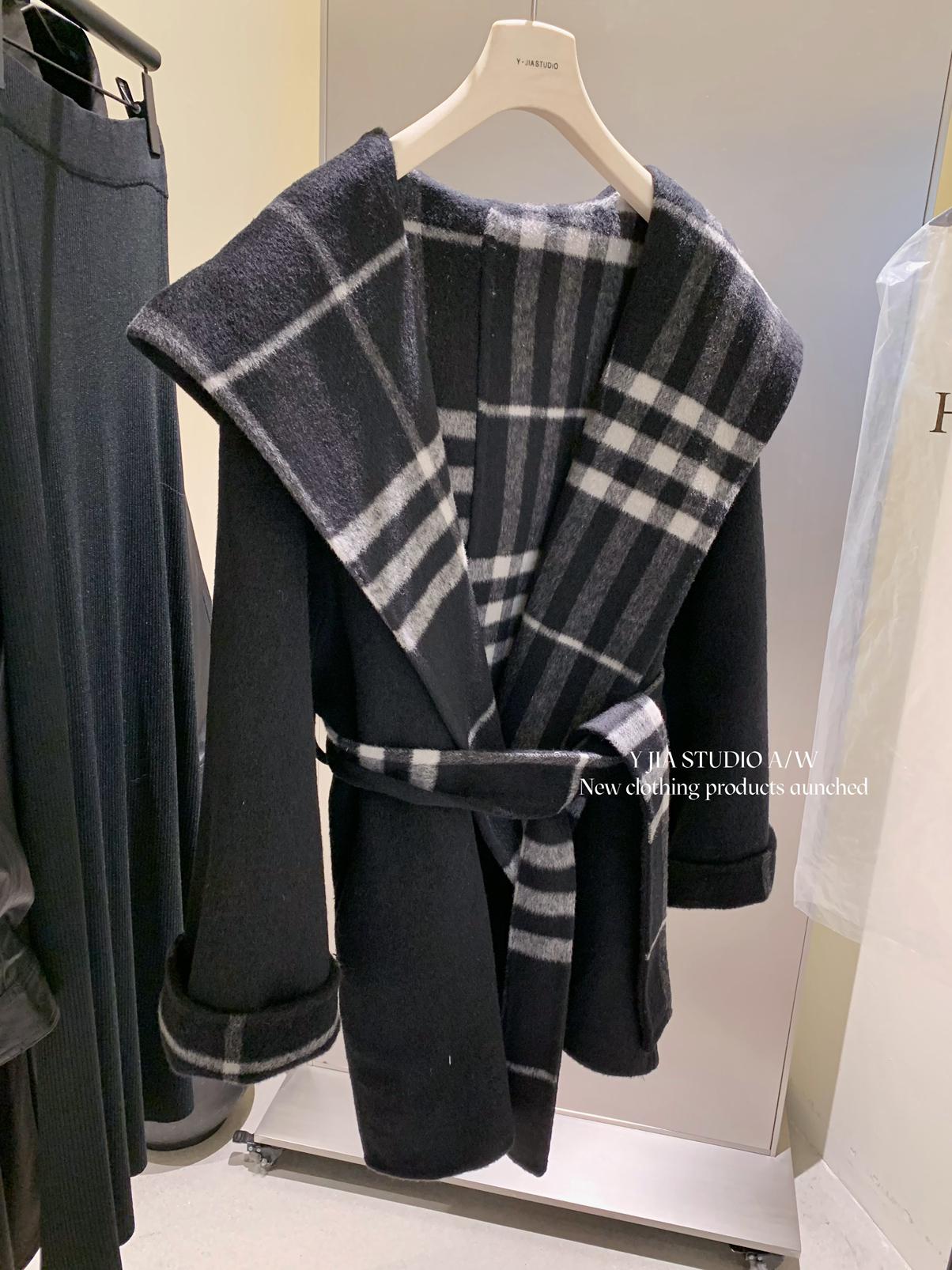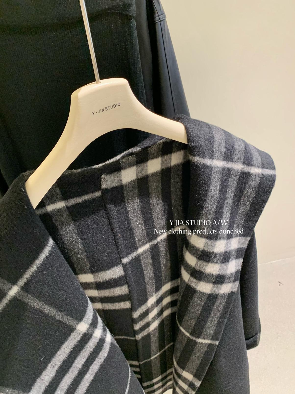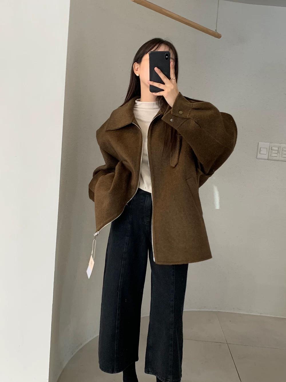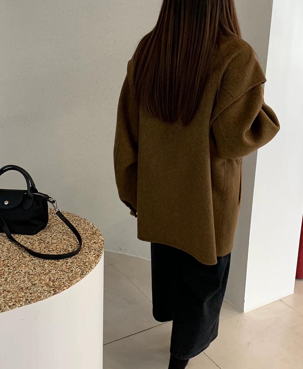 【C8036】設計感韓系翻領坎肩毛呢大衣復古立領設計感毛呢外套女大衣