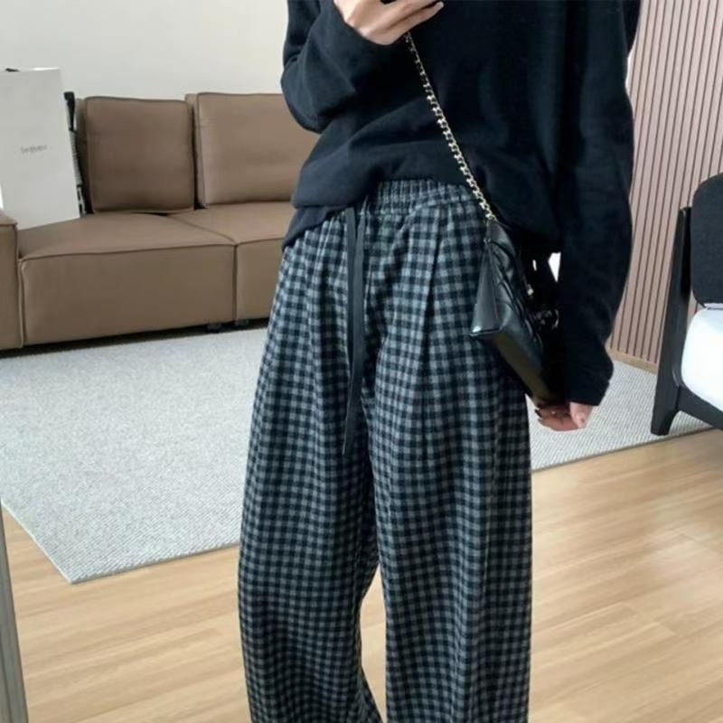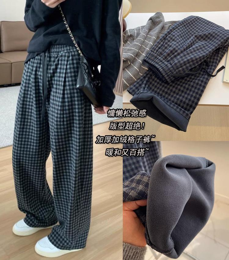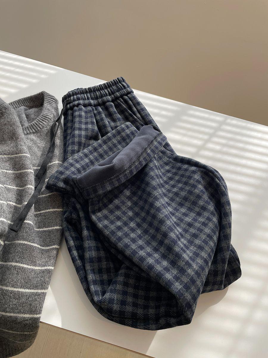 【C8037】銀狐絨復古寬鬆格子休閒褲慵懶風闊腿褲女秋冬季長褲子休閒褲