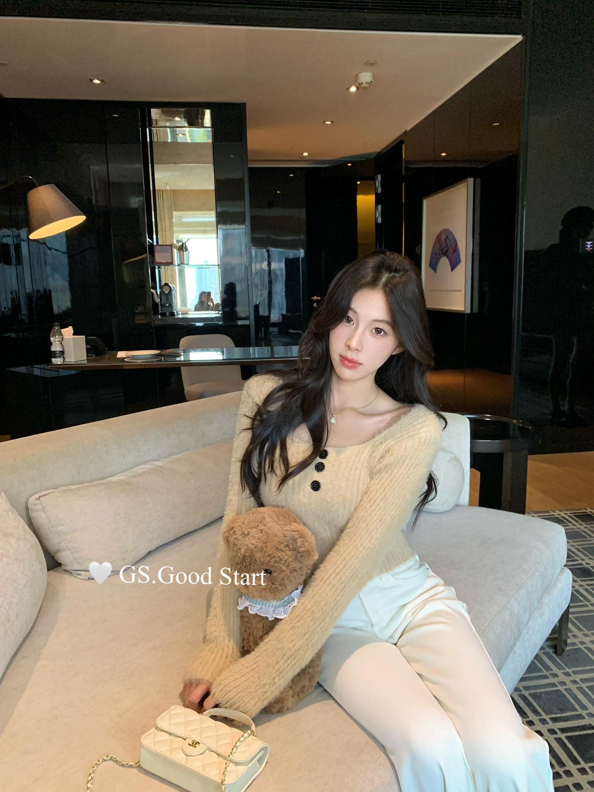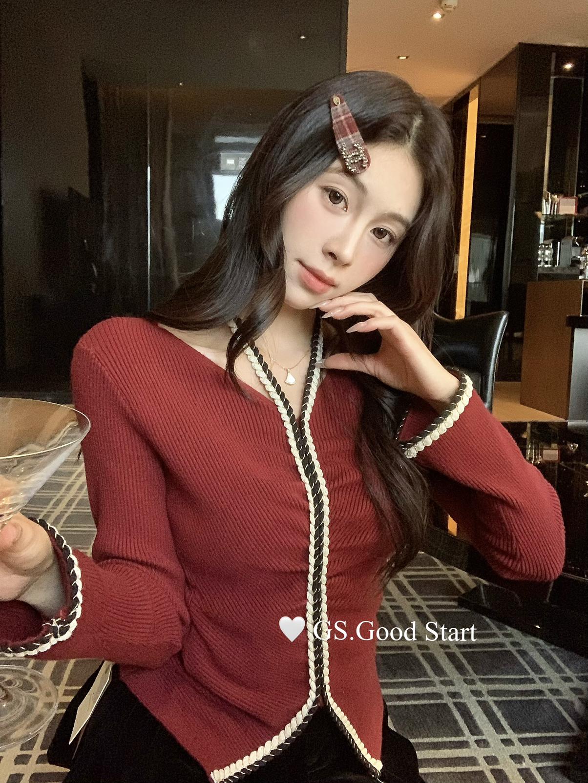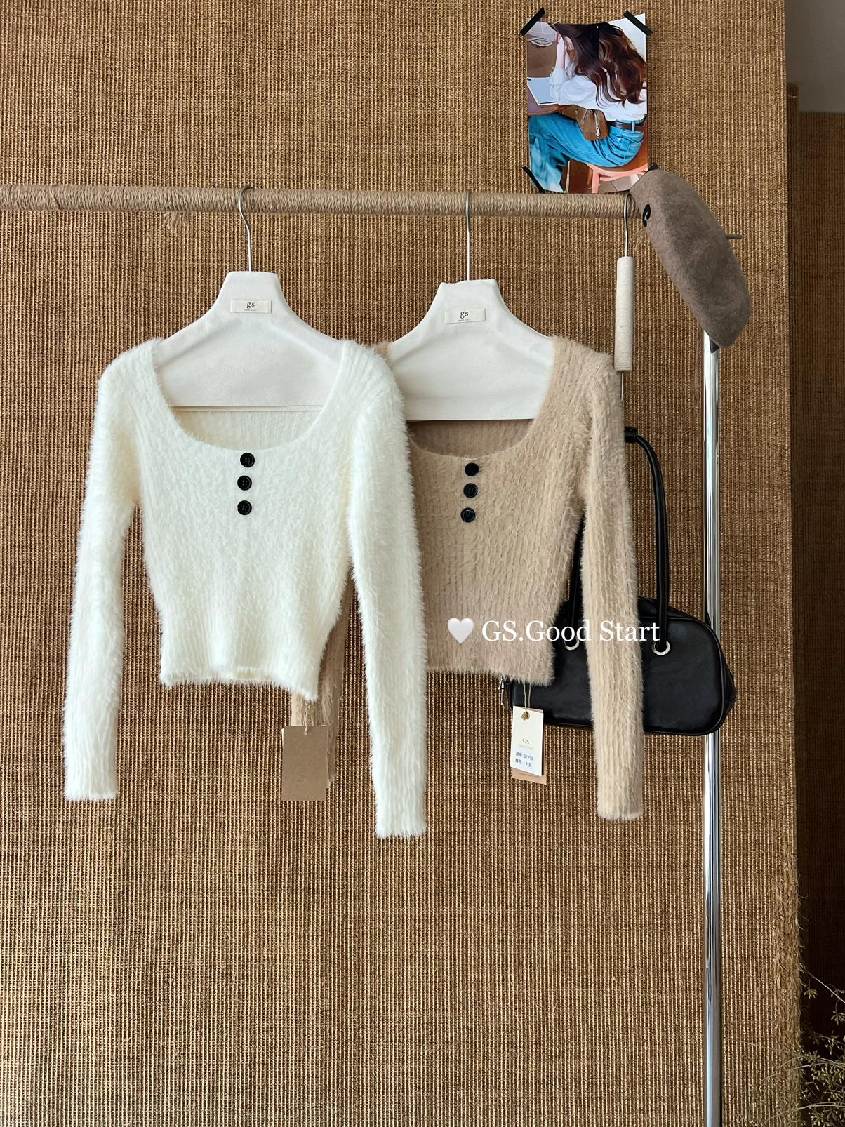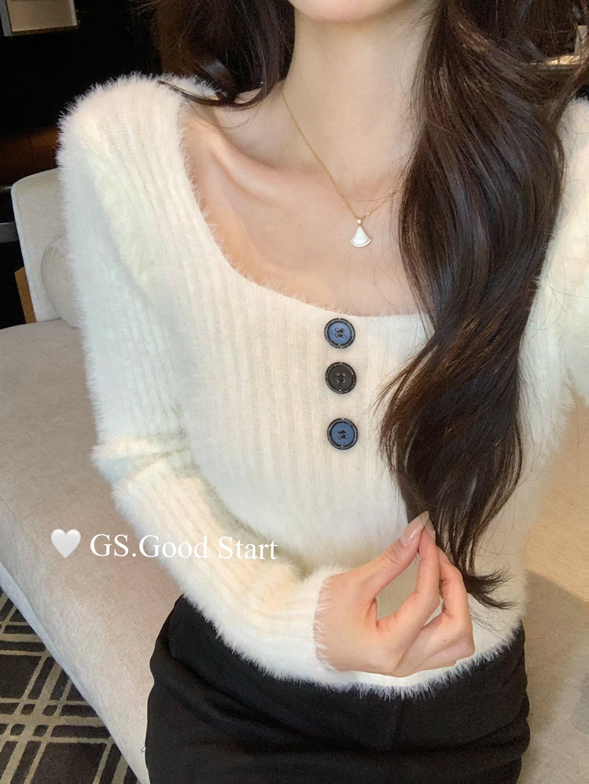 【C8040】超軟糯!修身短款版型*有點小sexy~秋冬純欲方領休閒針織小衫