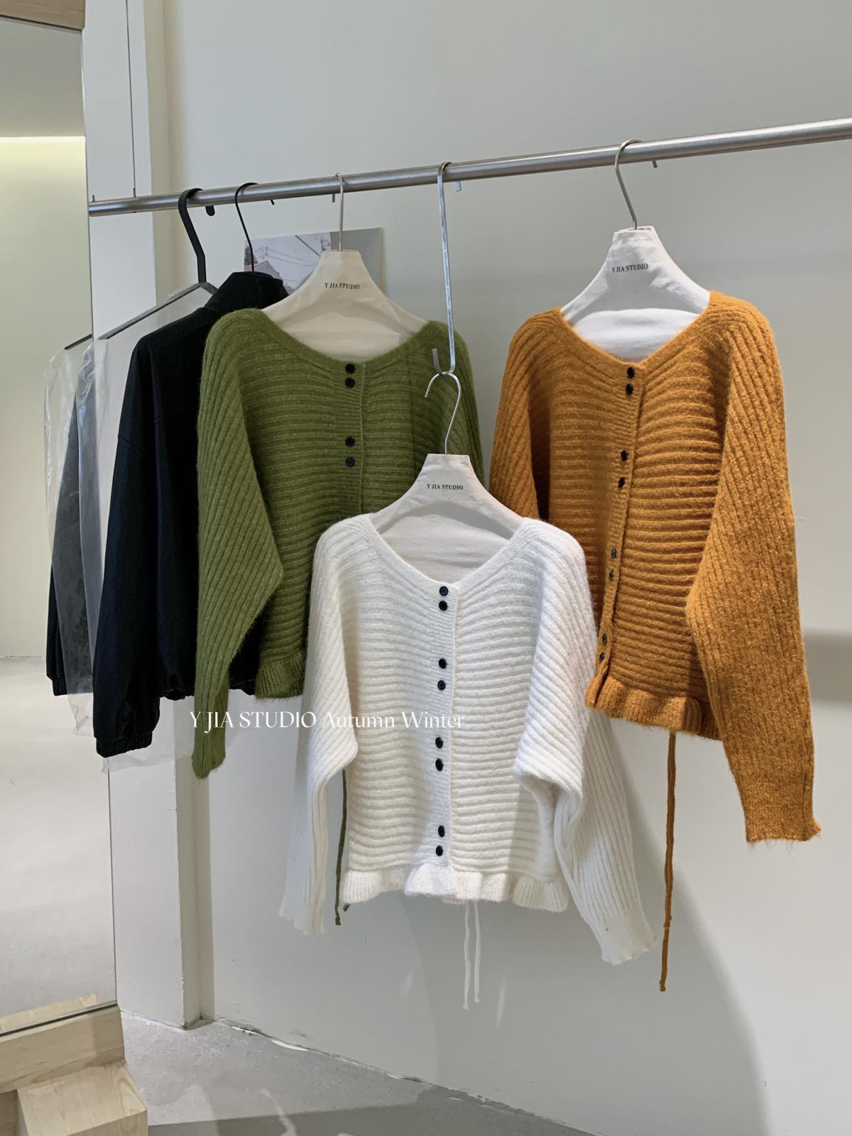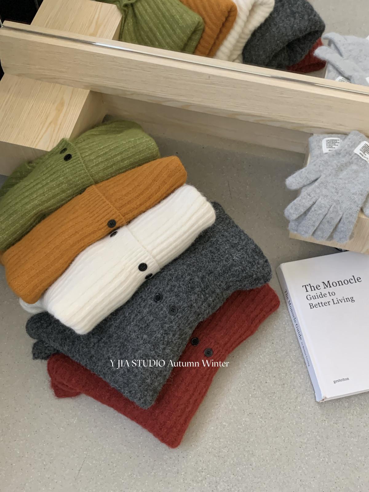 【YS2566】美式時尚潮純色休閒百搭外套針織開衫
