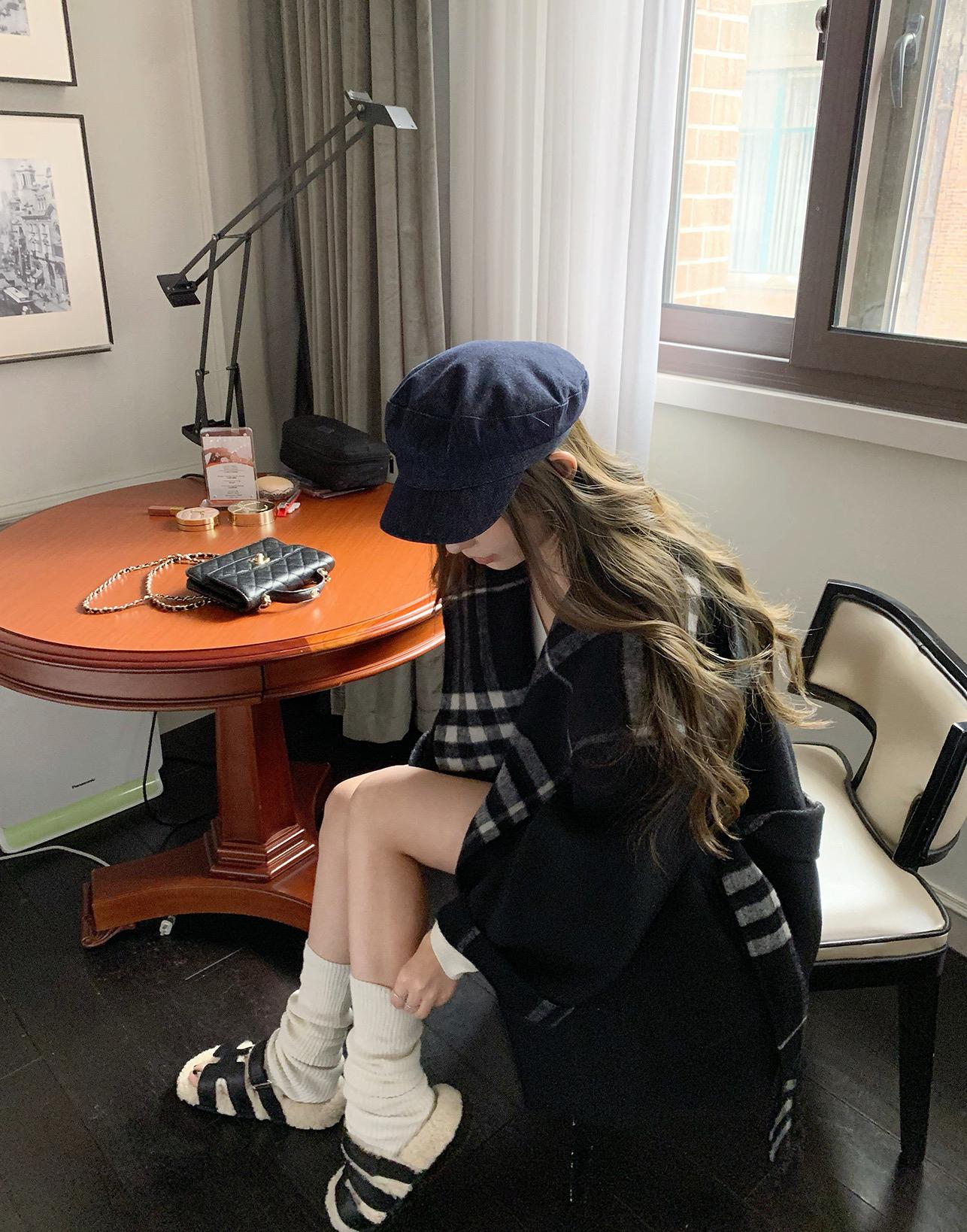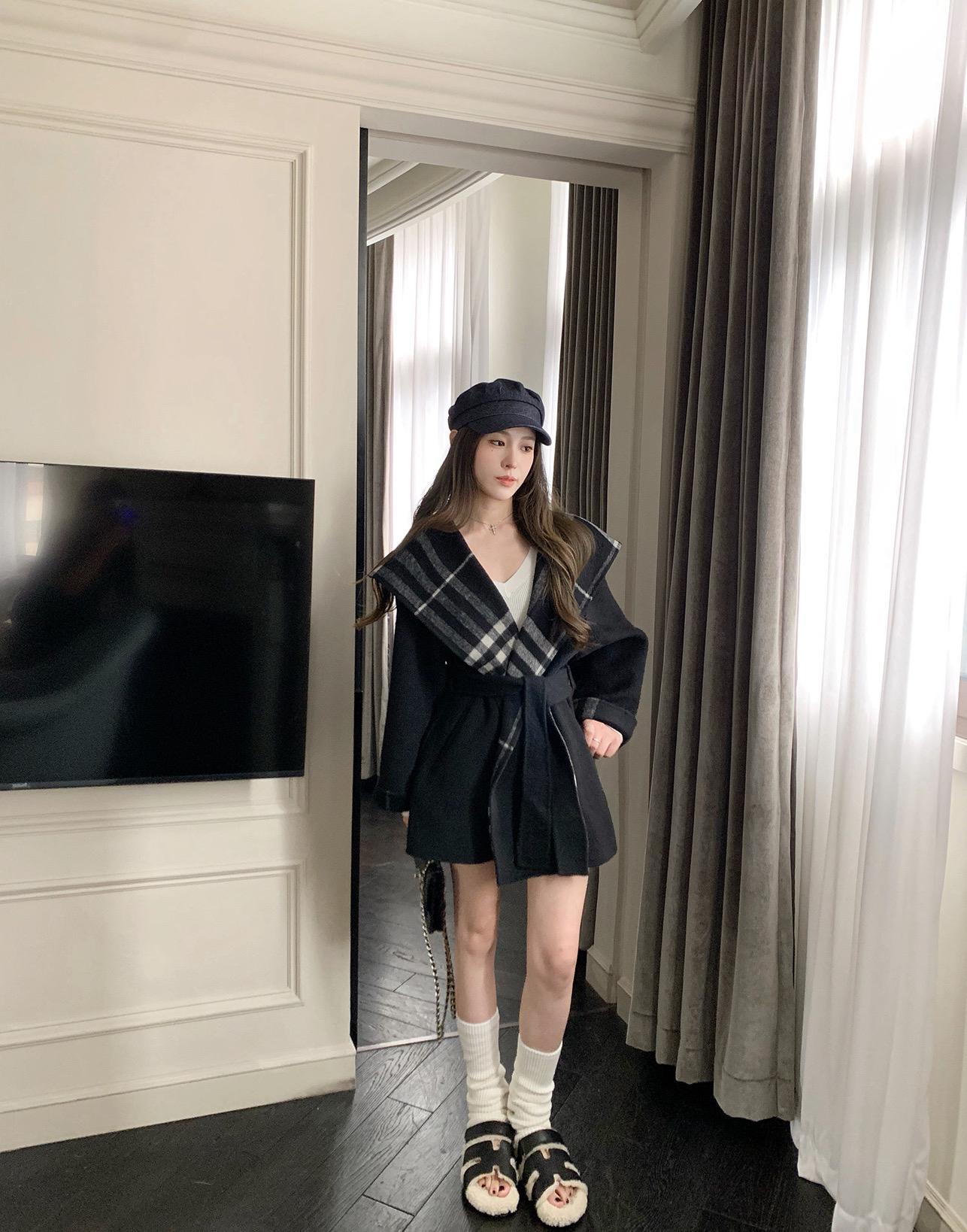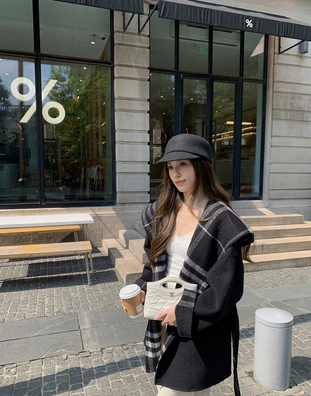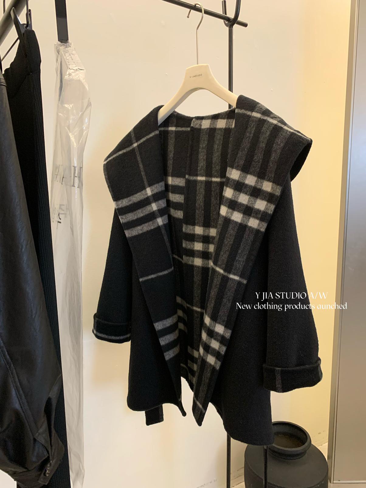 【C8045】流浪巴黎復古格紋高級感斗篷羊毛大衣外套羊毛外套(含70%羊毛)