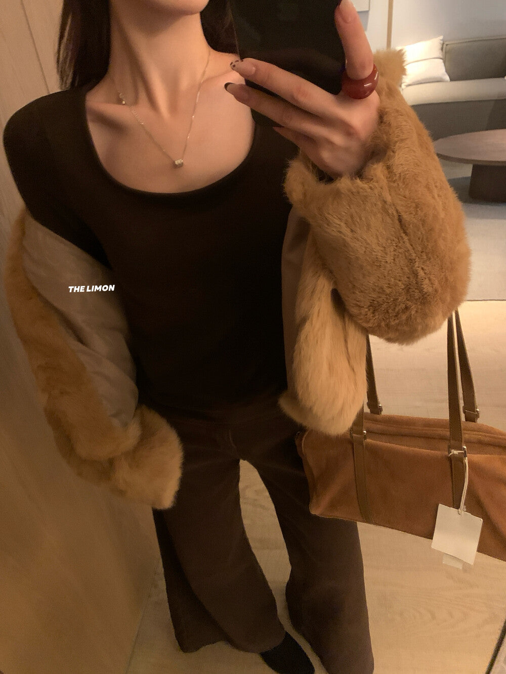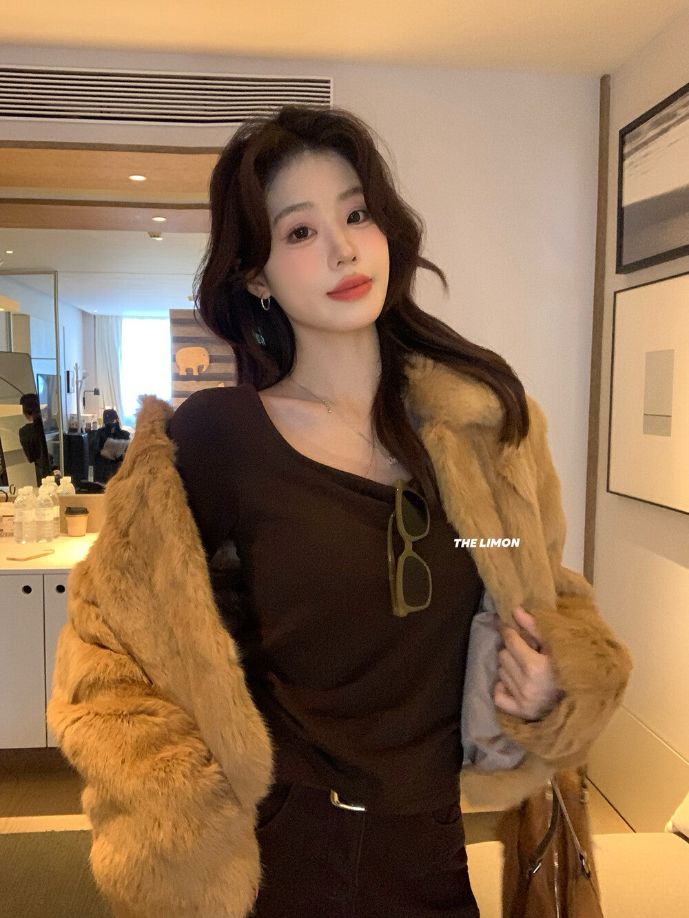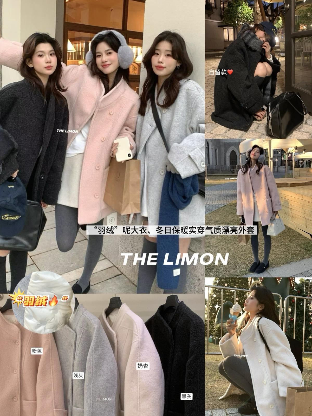 【C8047】高級感圈圈毛立領呢料保暖羽絨服外套