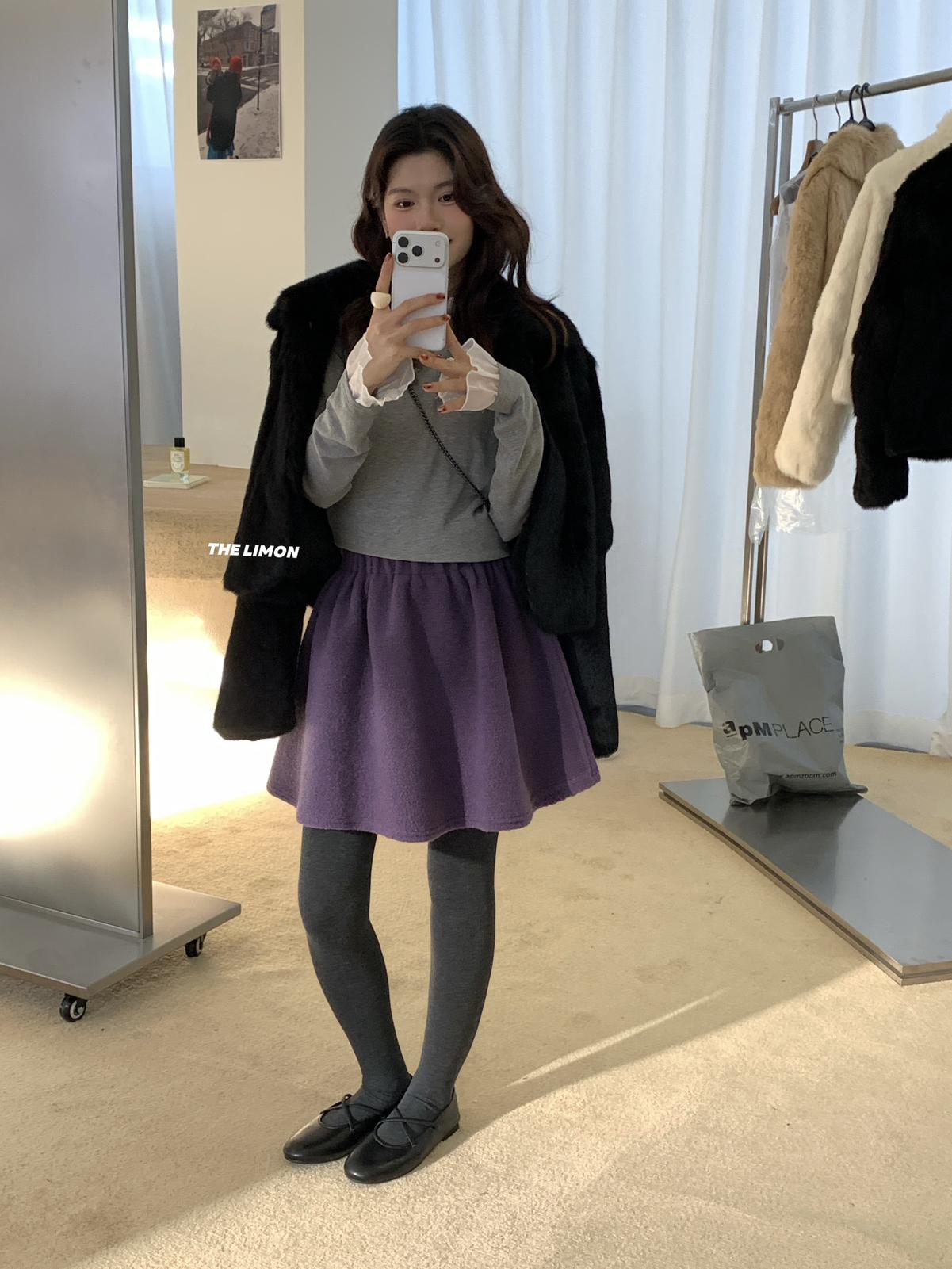 【C8050】遮胯顯瘦超厚毛呢半身裙