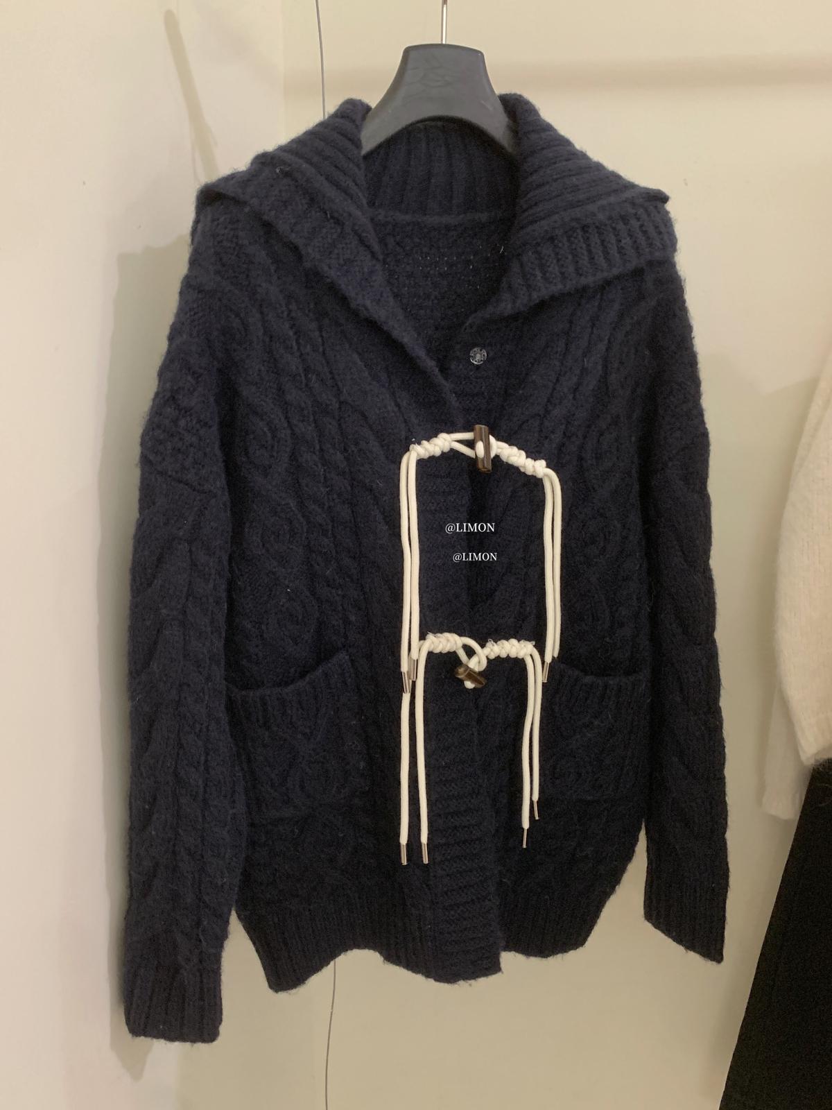 【C8054】超重工牛角扣海軍領減齡麻花開衫毛衣