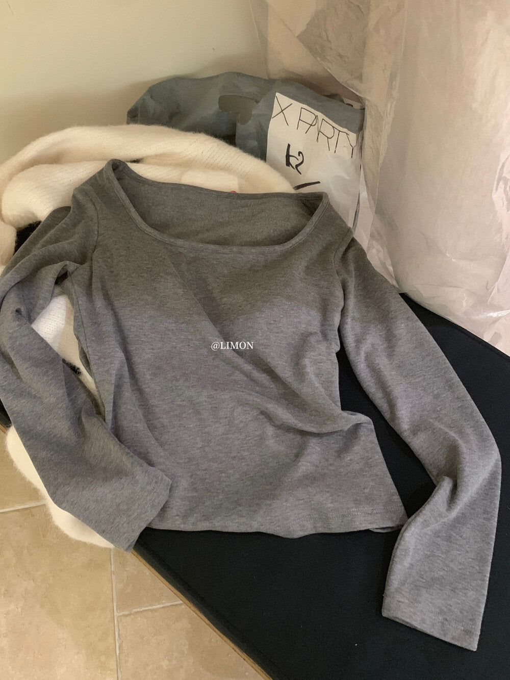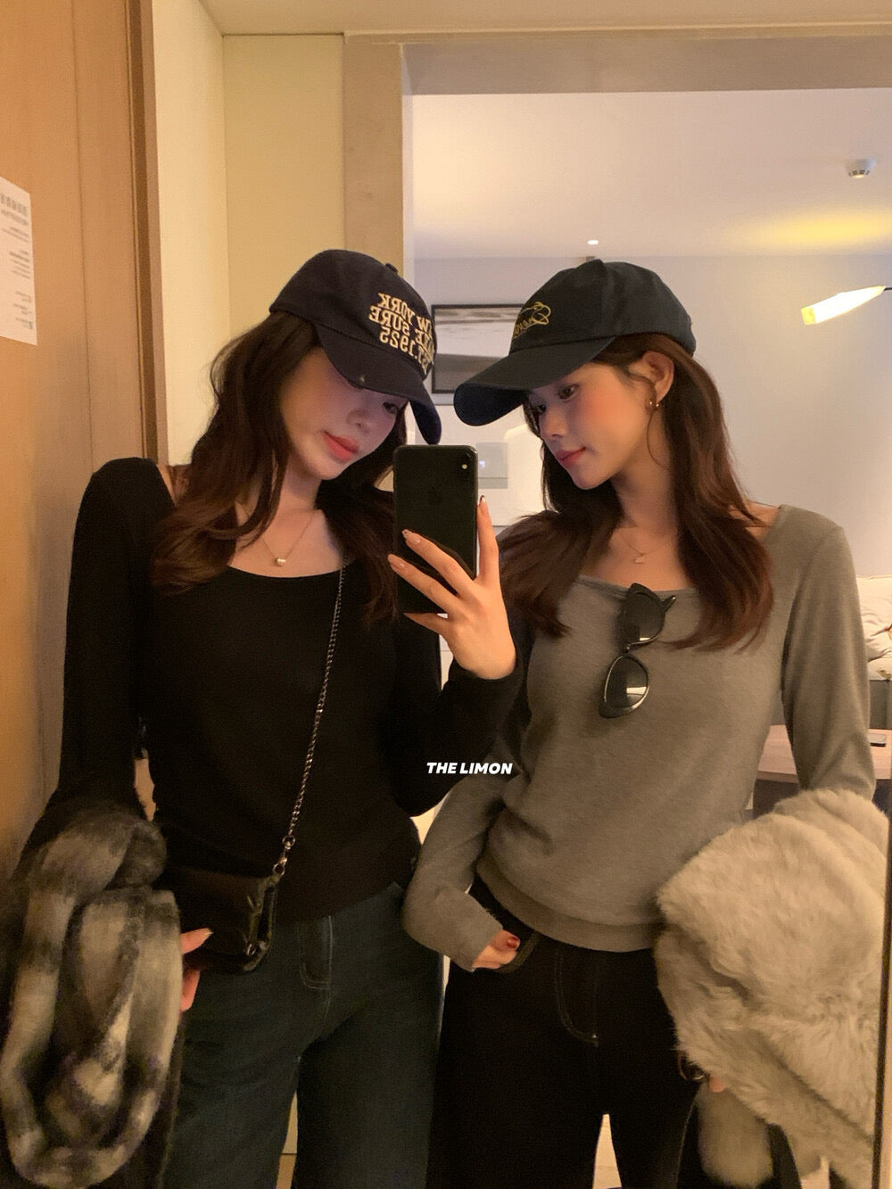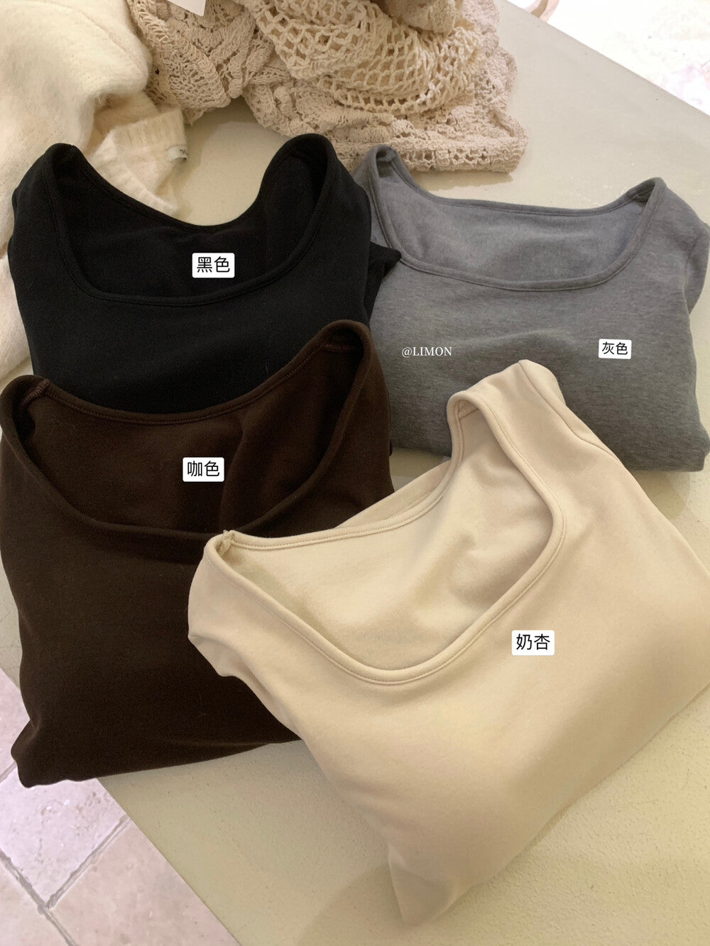 【C8049】U領磨毛德絨一體杯內搭長袖T恤