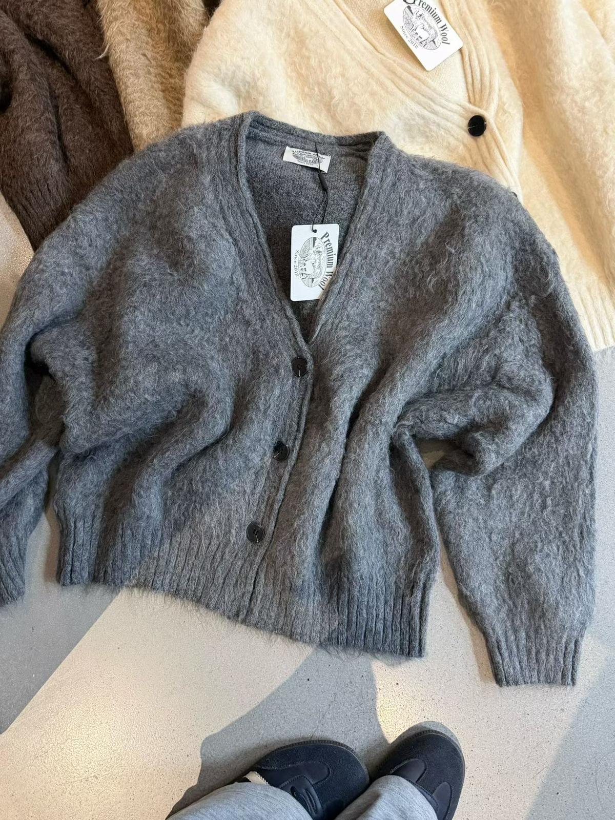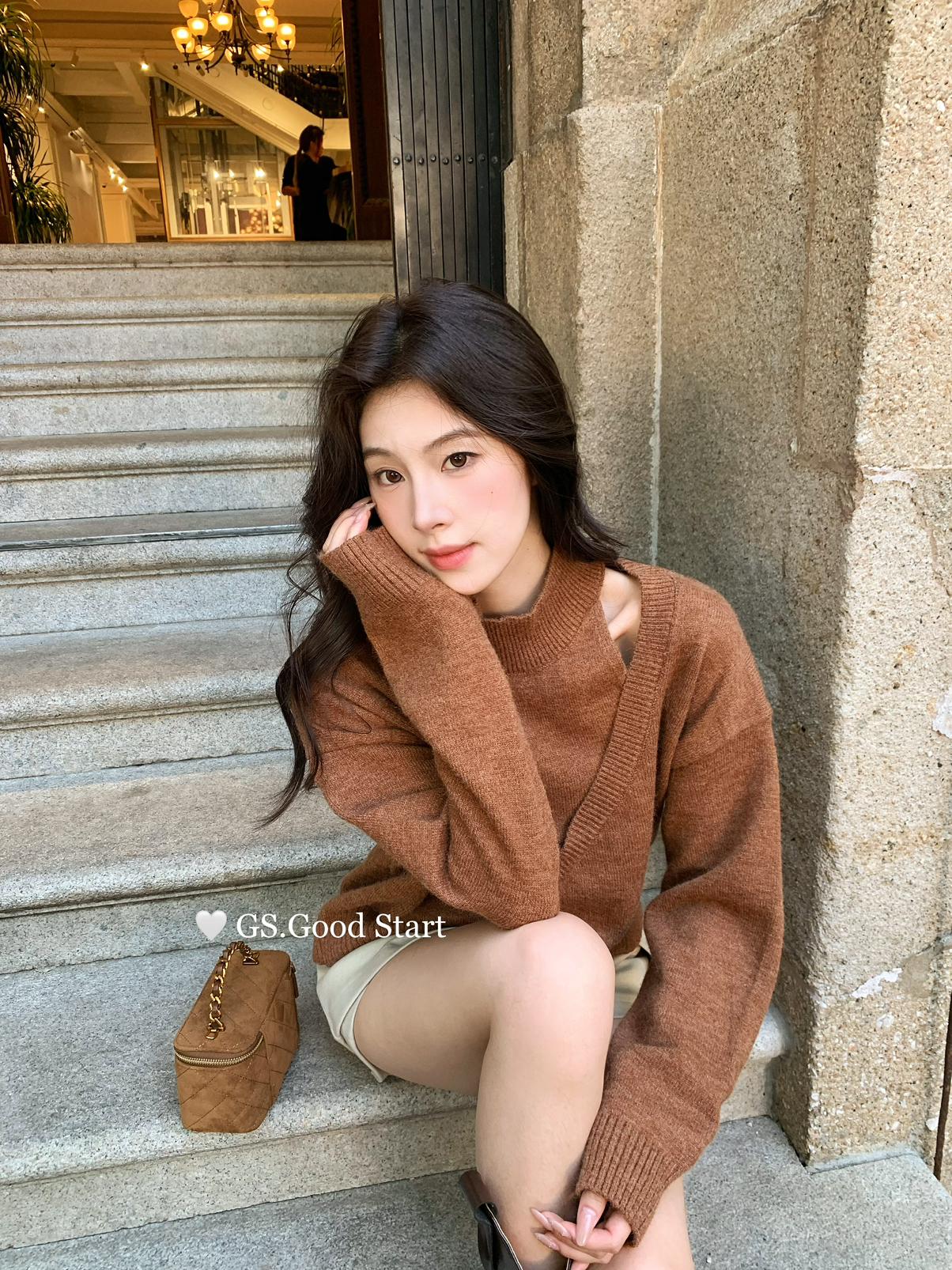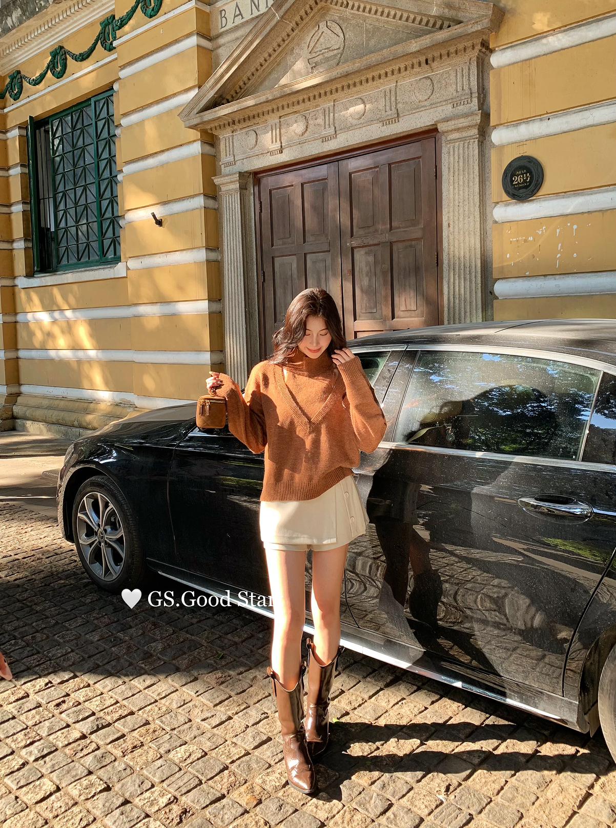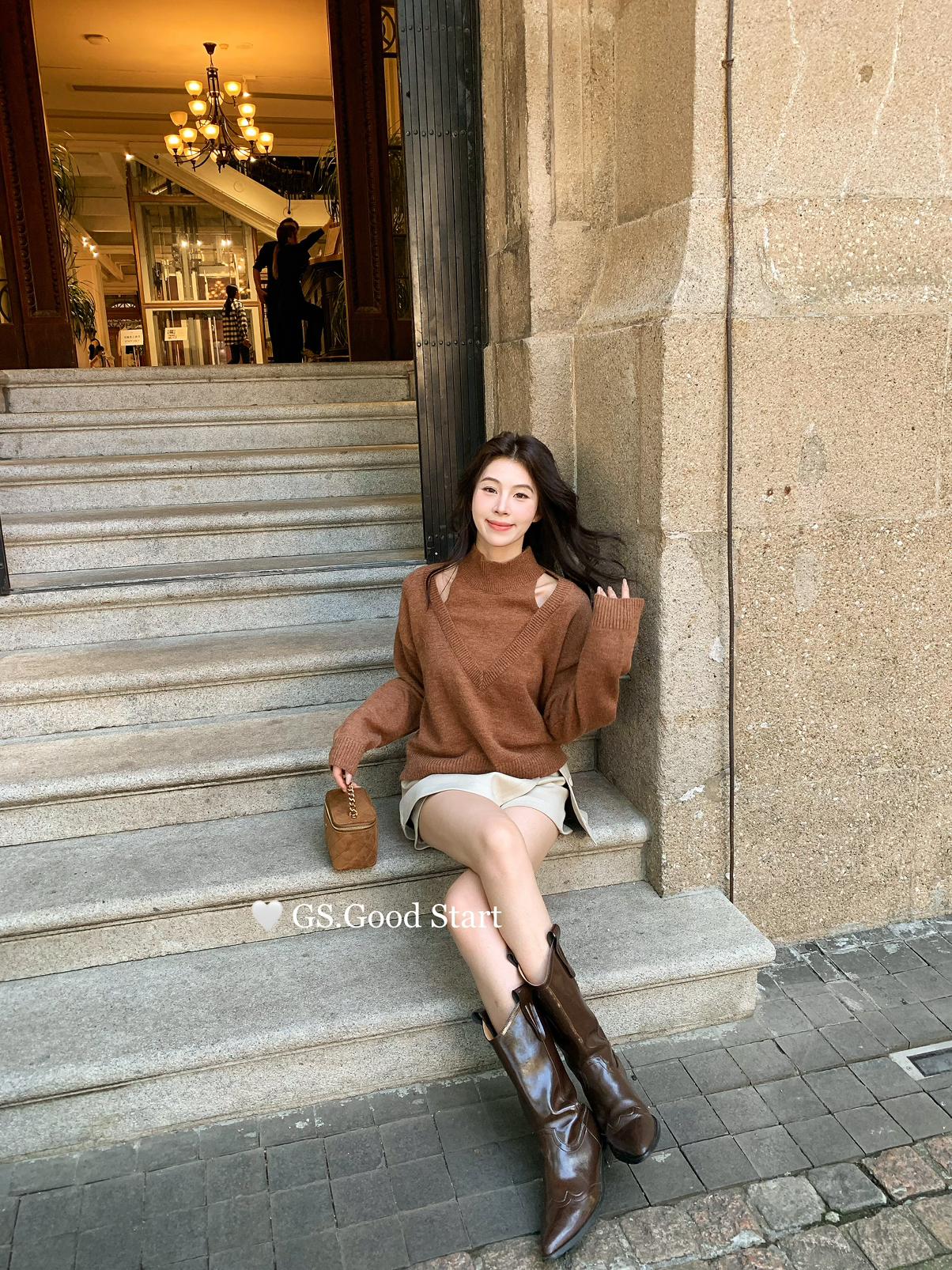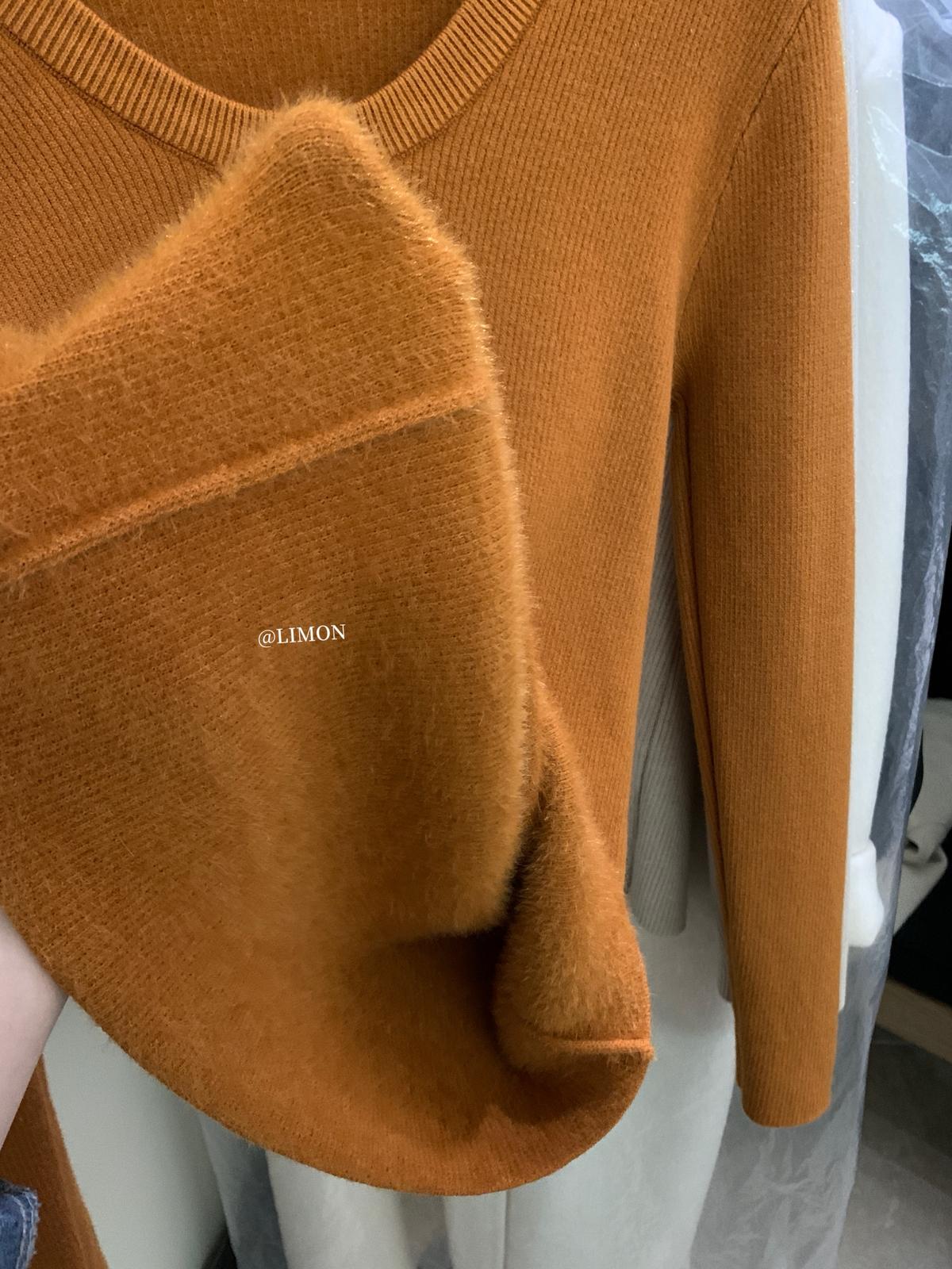 【C7935】慵懶風復古v領拉絨保暖毛衣
