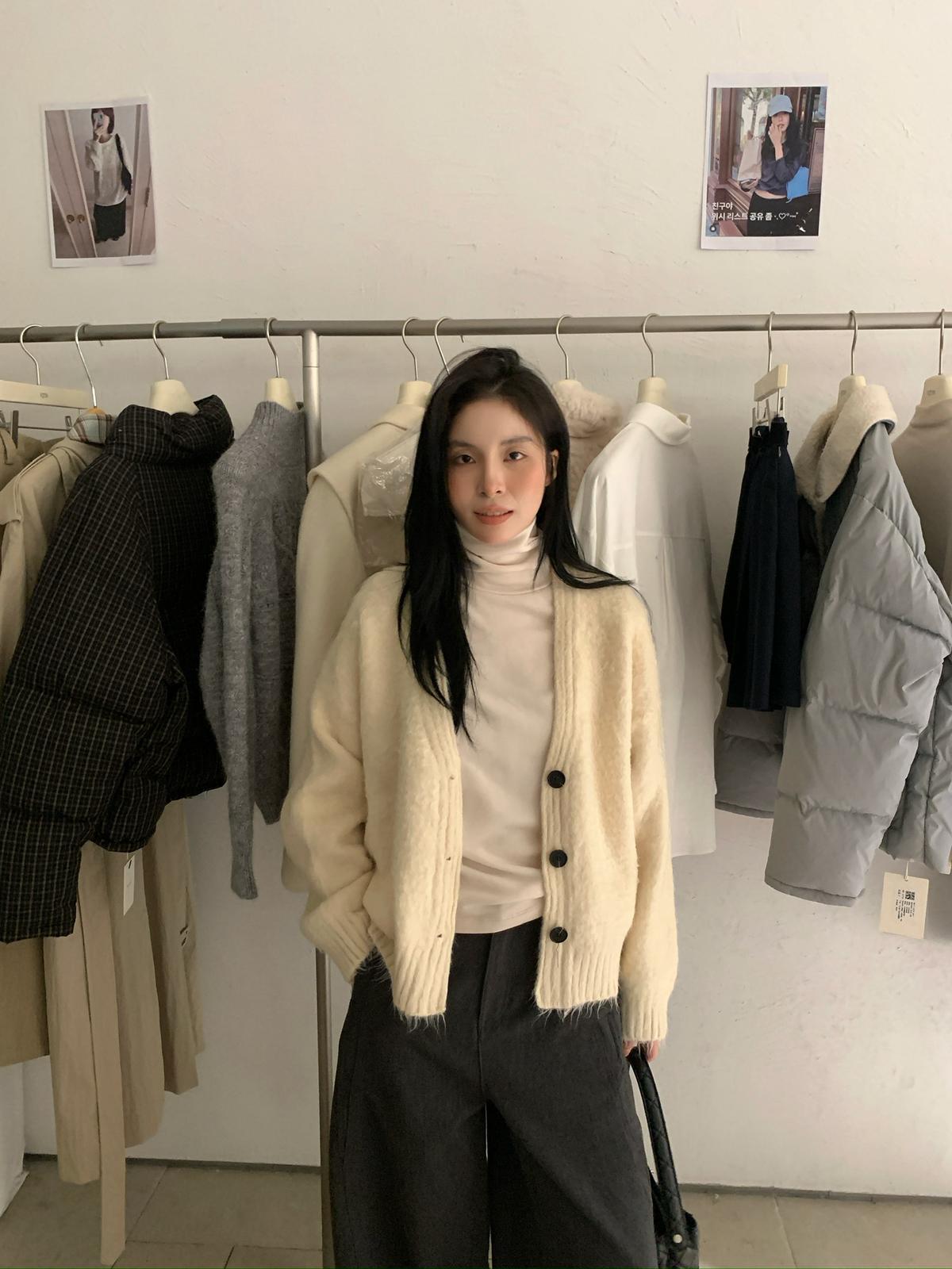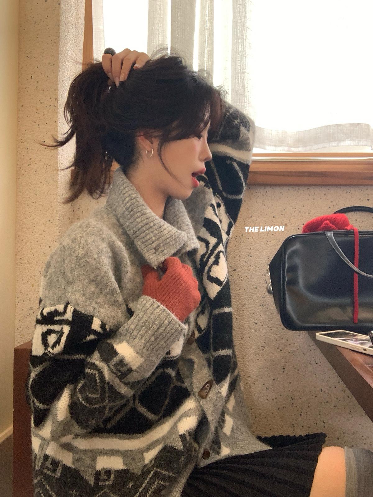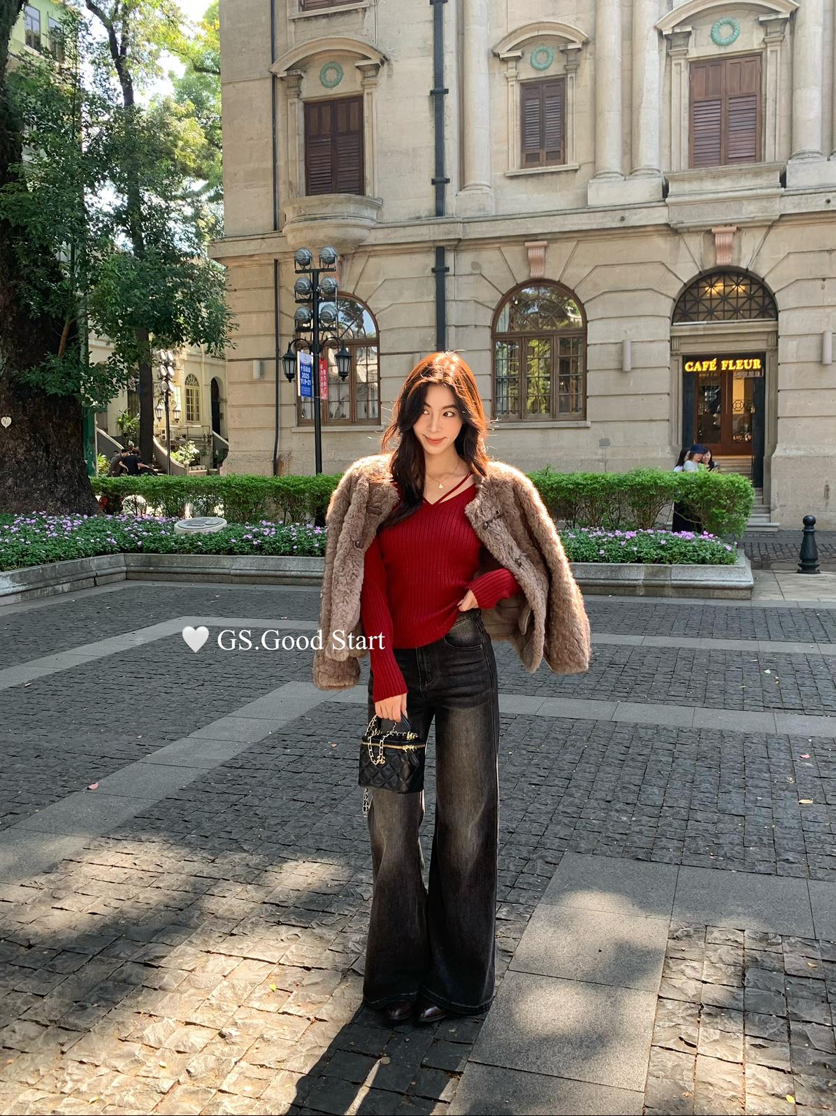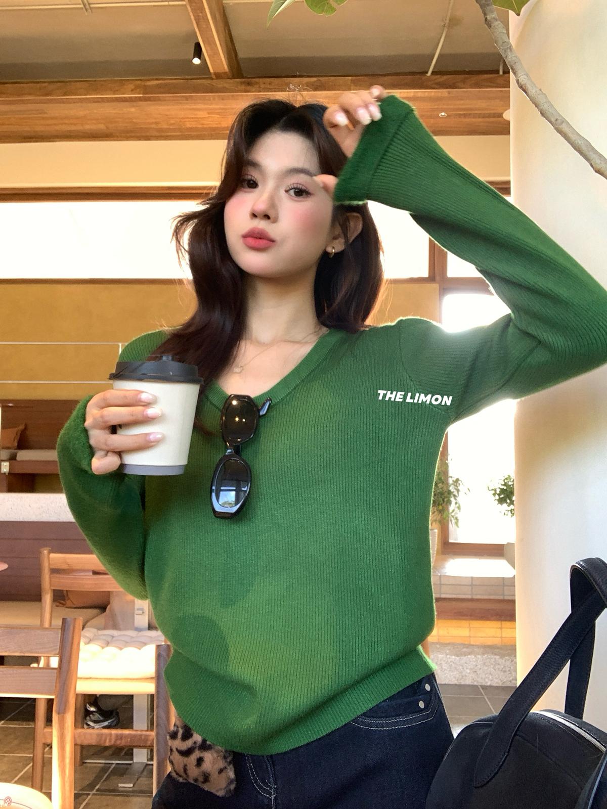 【C7935】慵懶風復古v領拉絨保暖毛衣