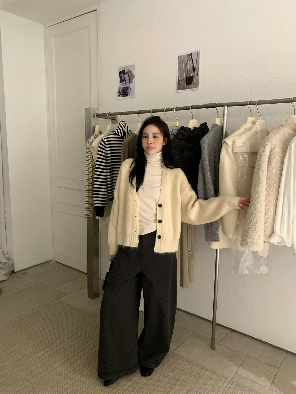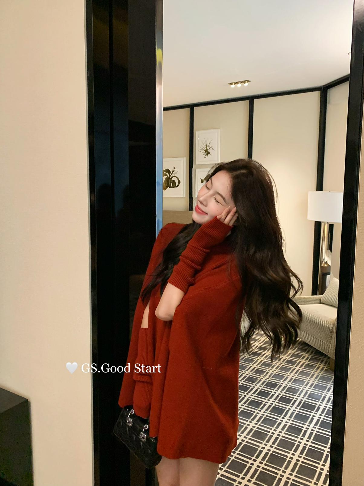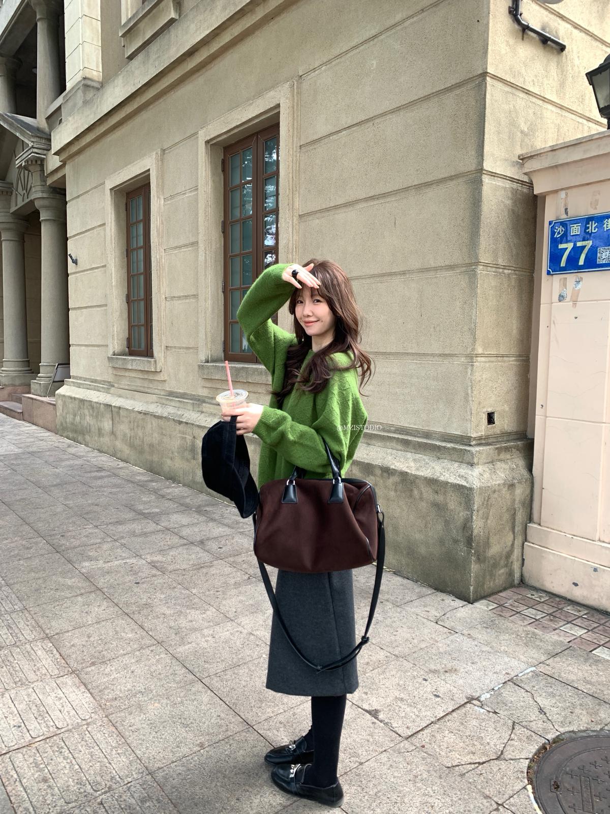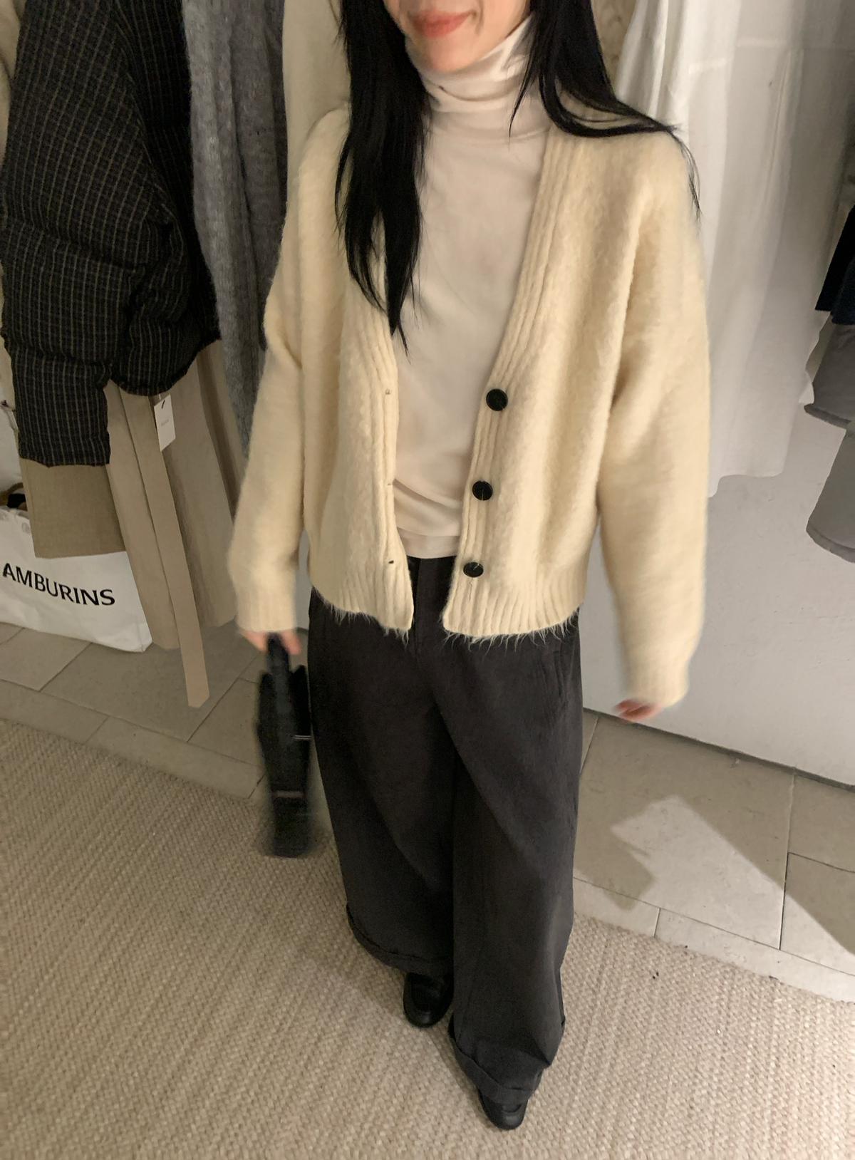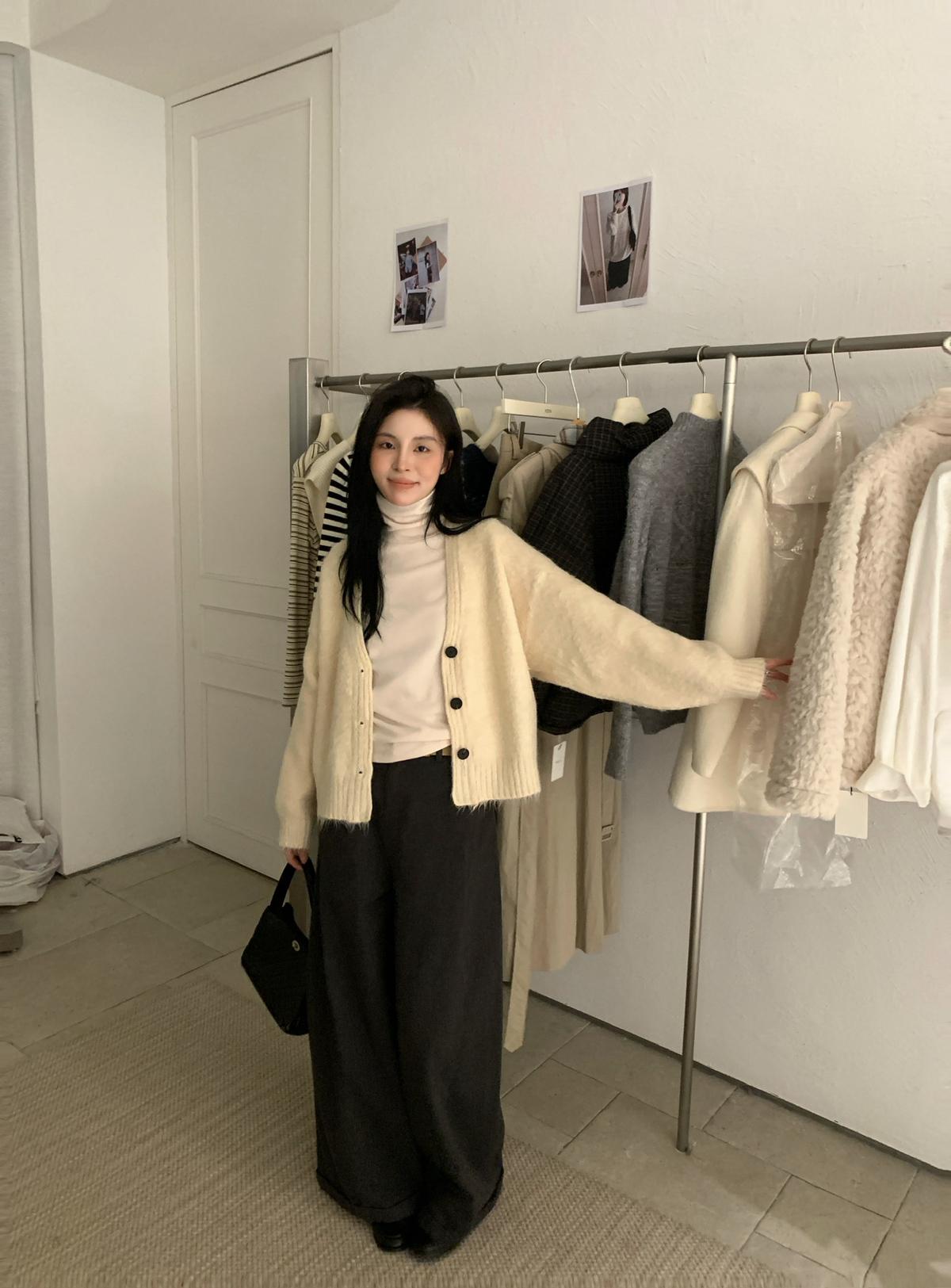 【C7935】慵懶風復古v領拉絨保暖毛衣