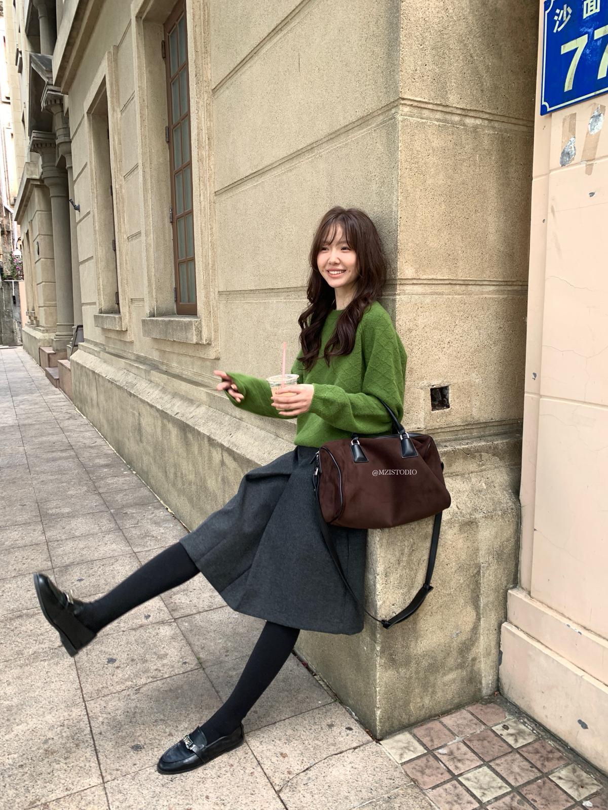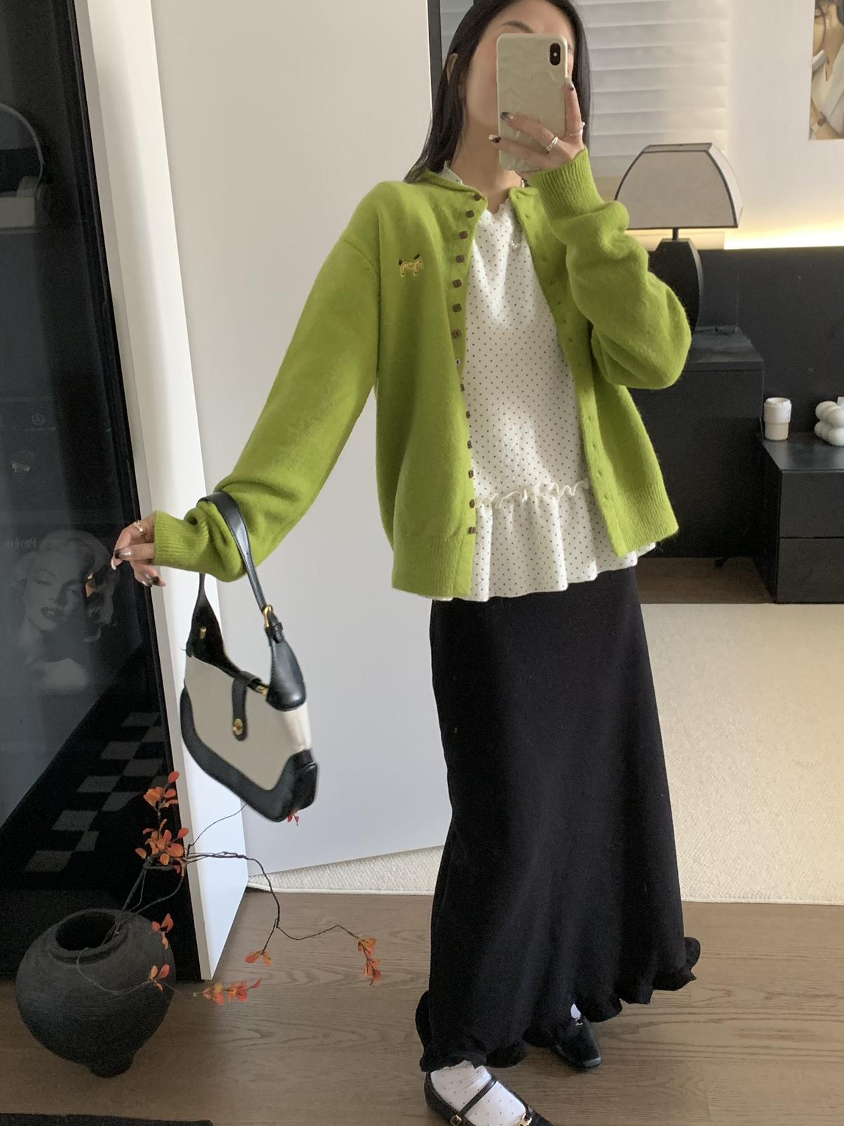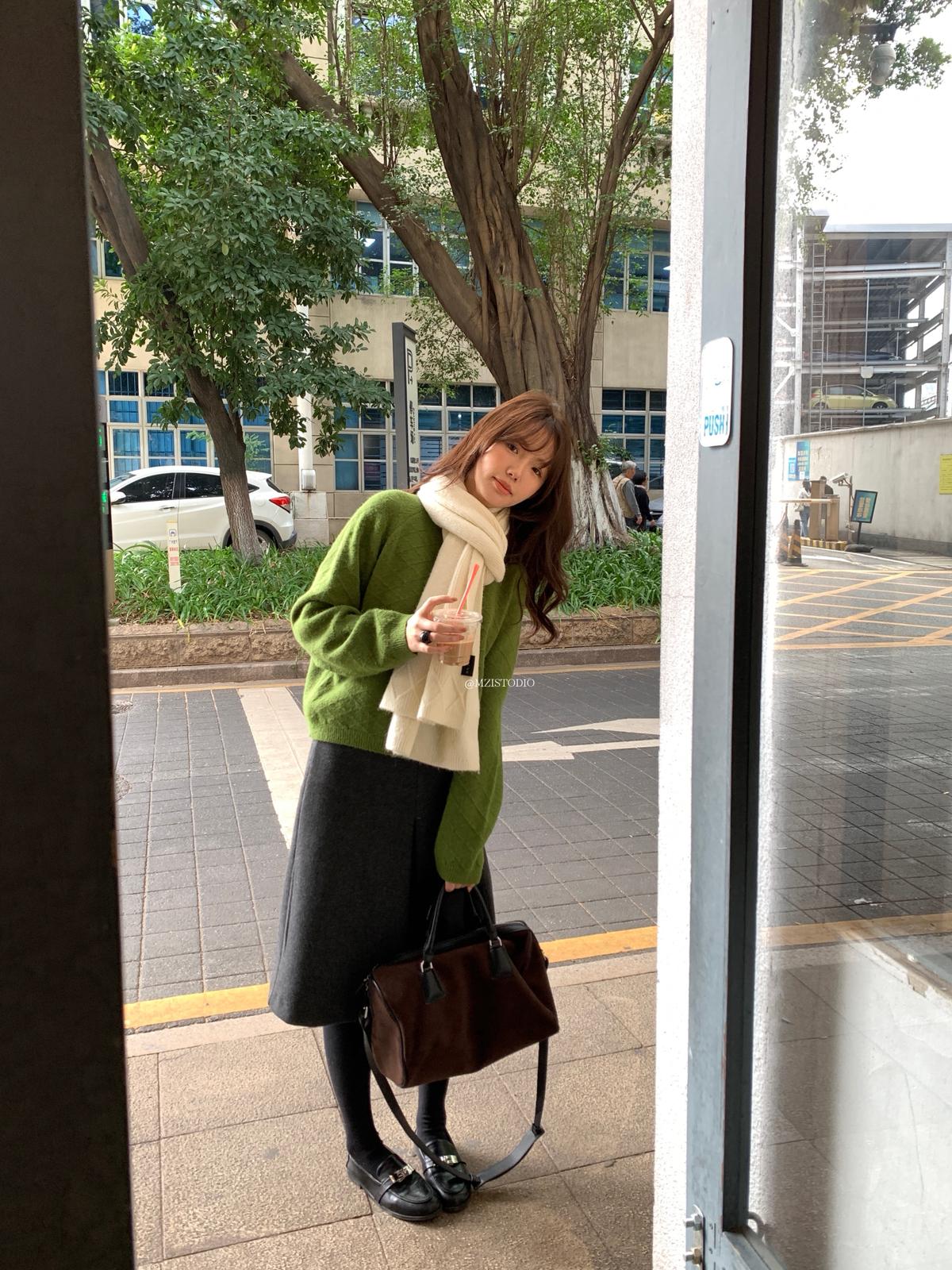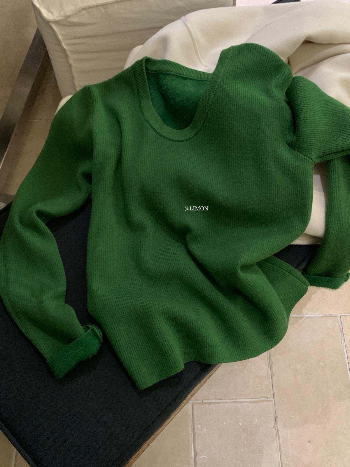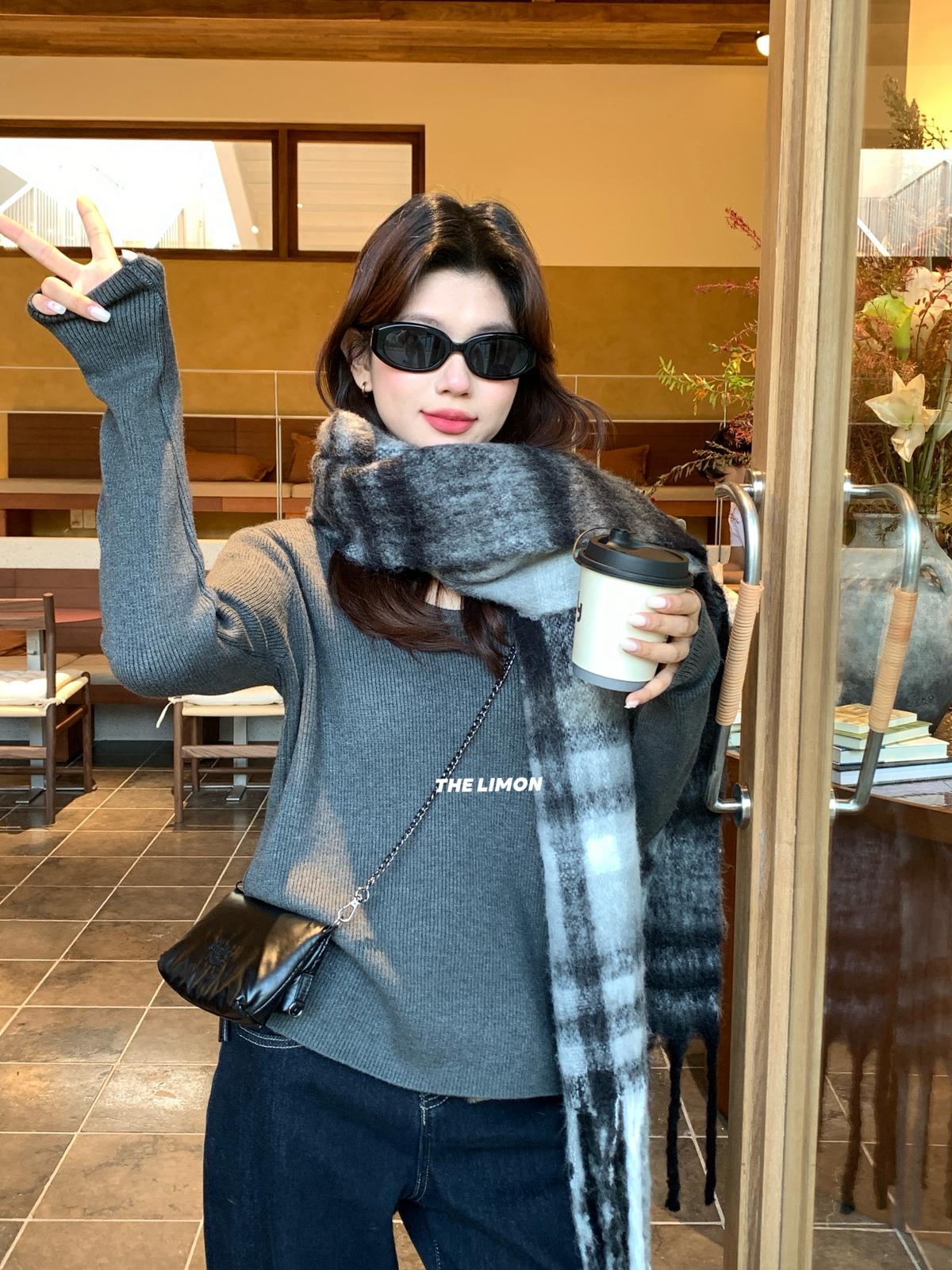 【C7935】慵懶風復古v領拉絨保暖毛衣