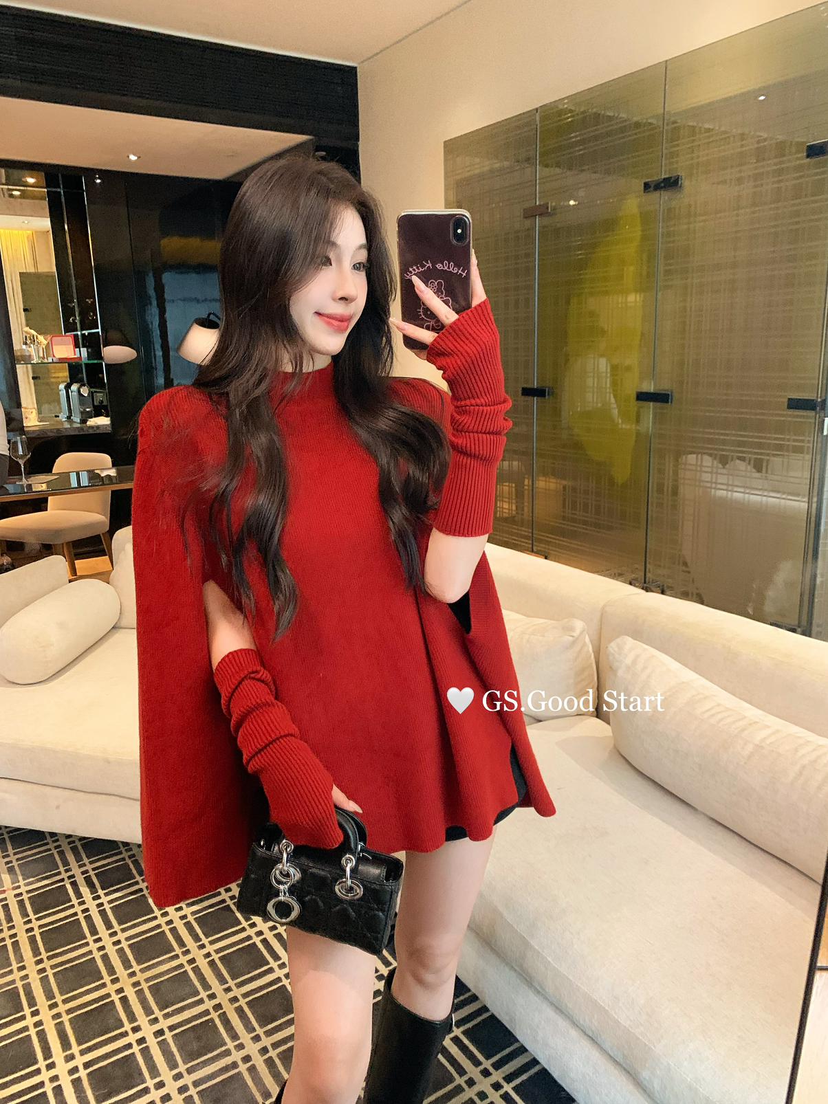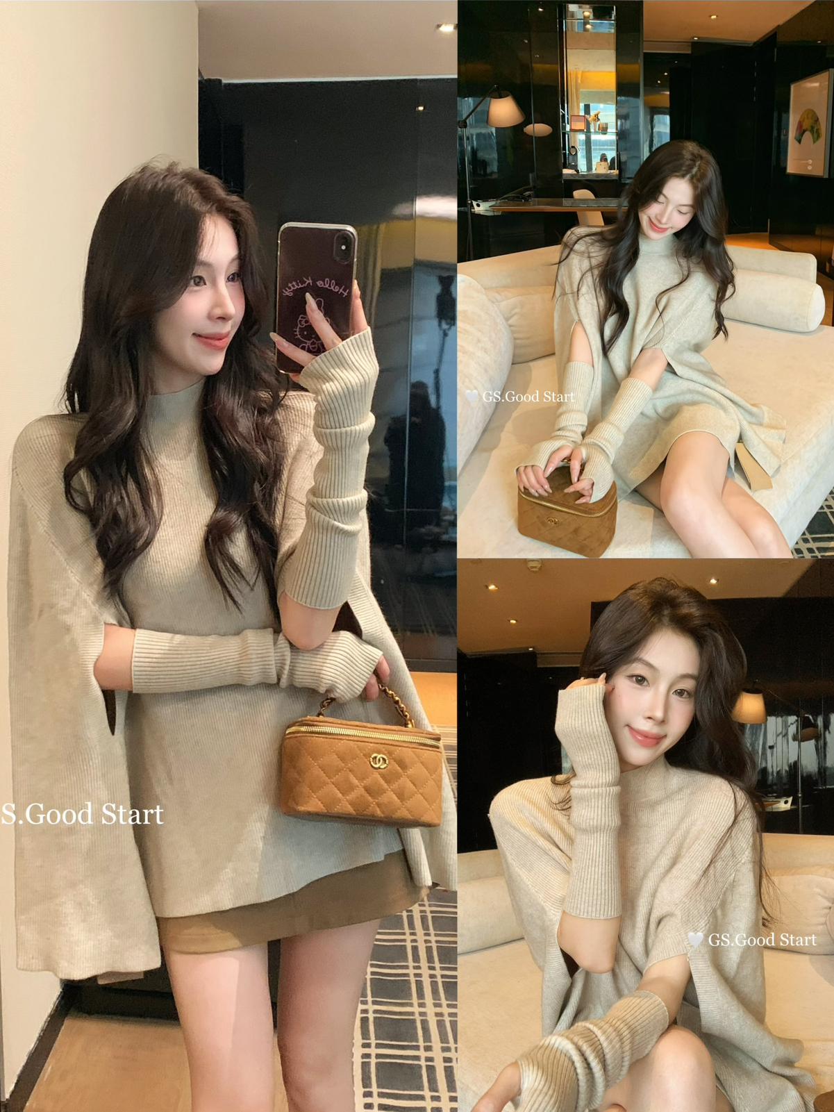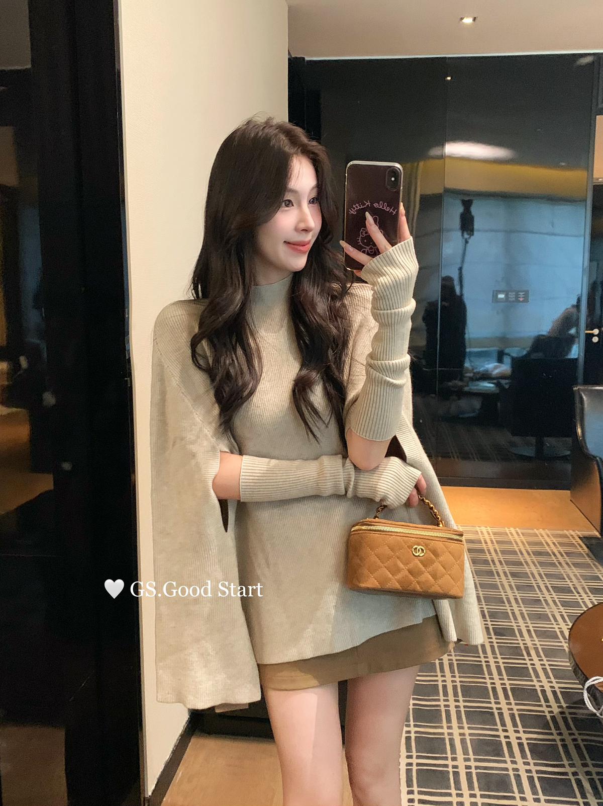 【C7939】氣質擔當*閉眼入系列!巨好賣!秋冬復古氣質小女人斗篷半高領保暖毛衣(配可拆卸袖套)
