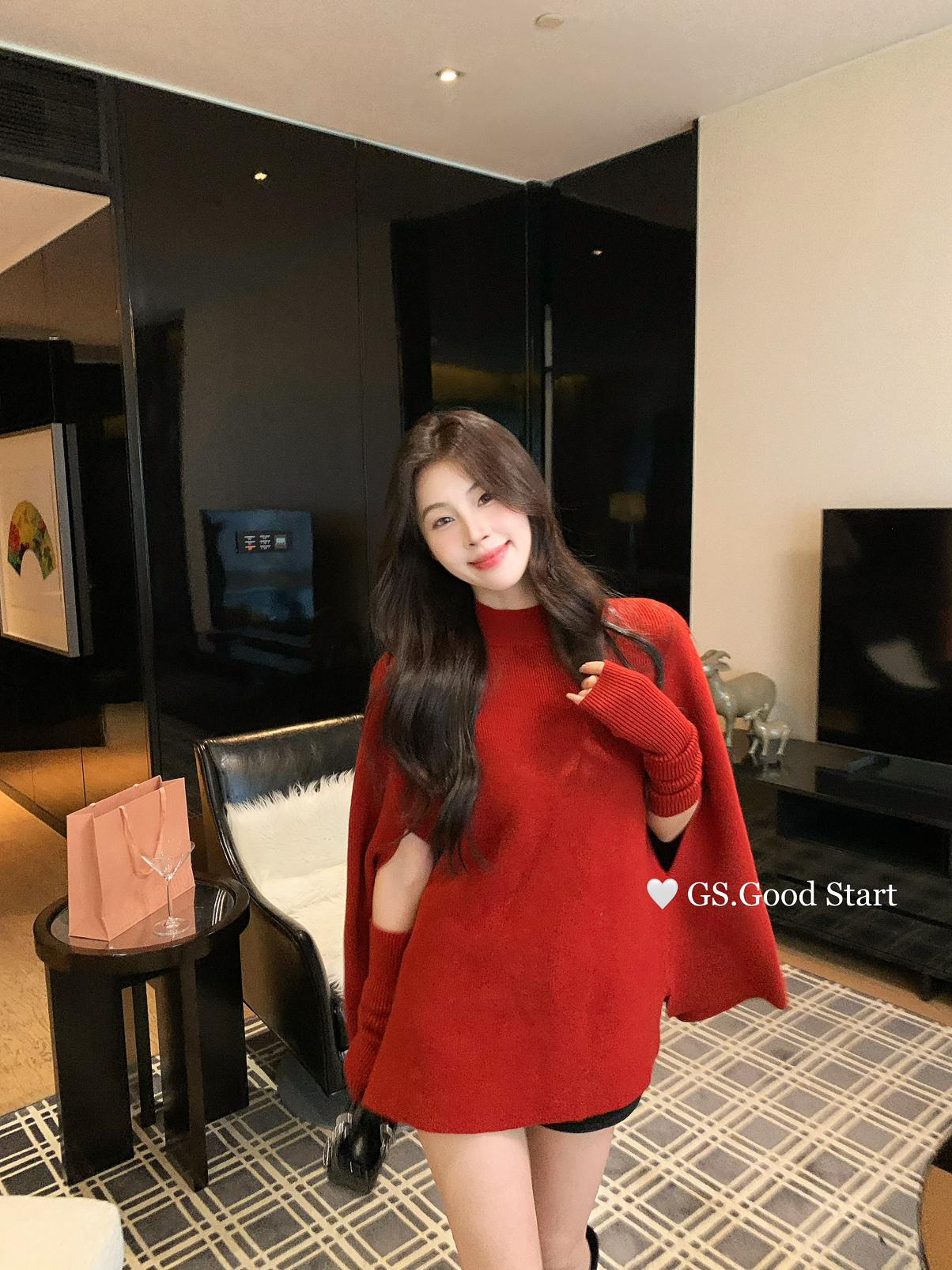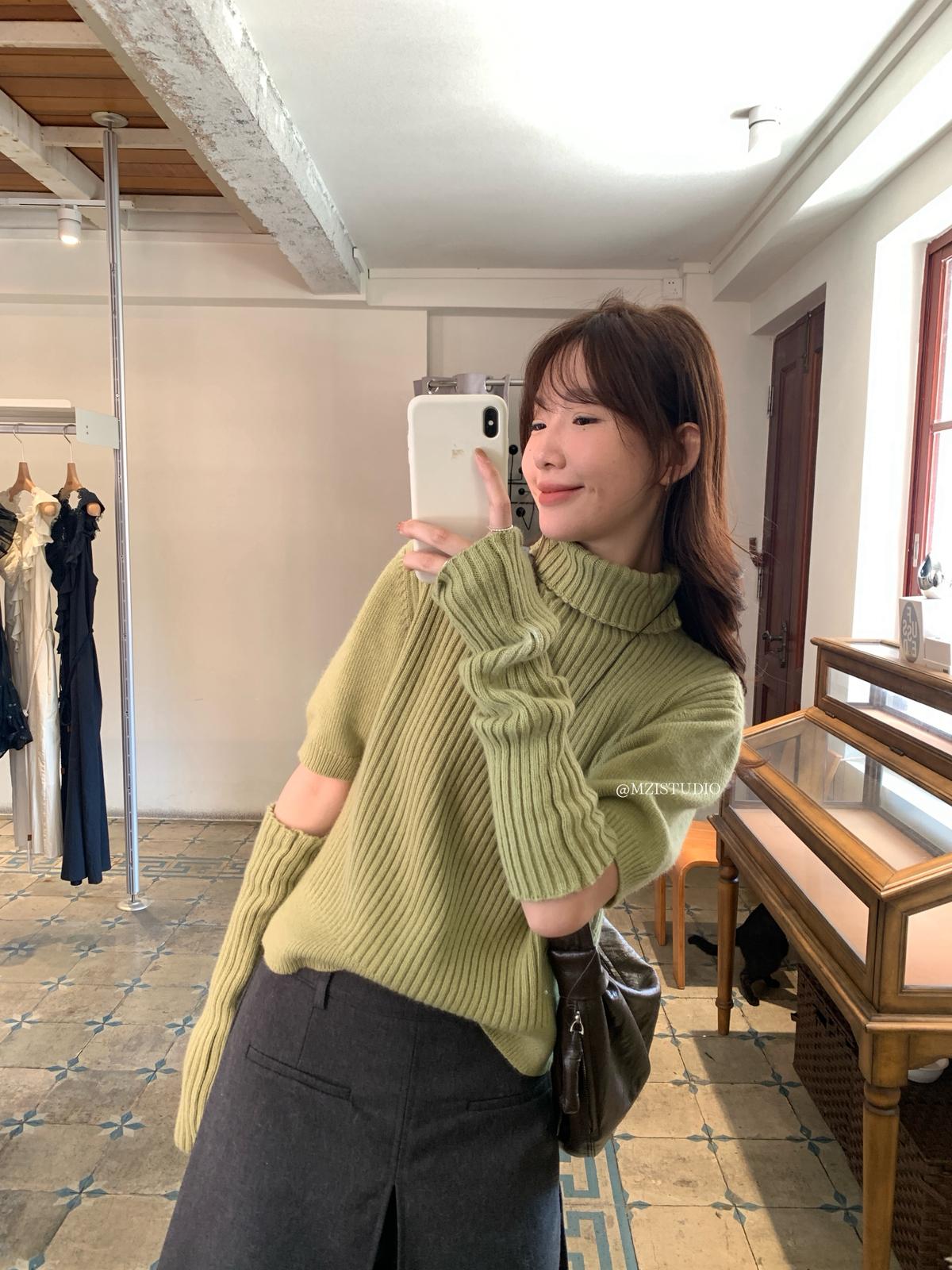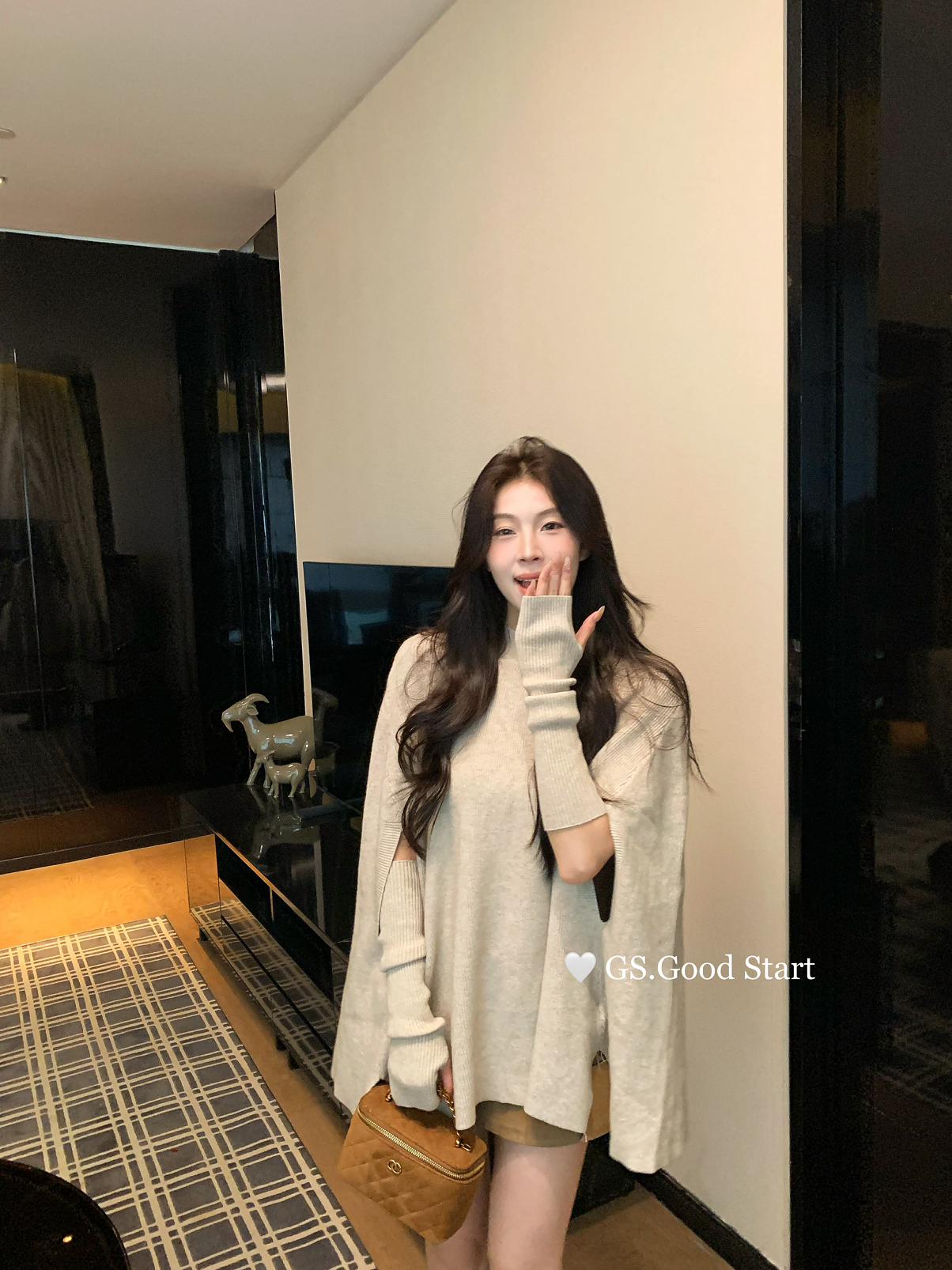 【C7939】氣質擔當*閉眼入系列!巨好賣!秋冬復古氣質小女人斗篷半高領保暖毛衣(配可拆卸袖套)
