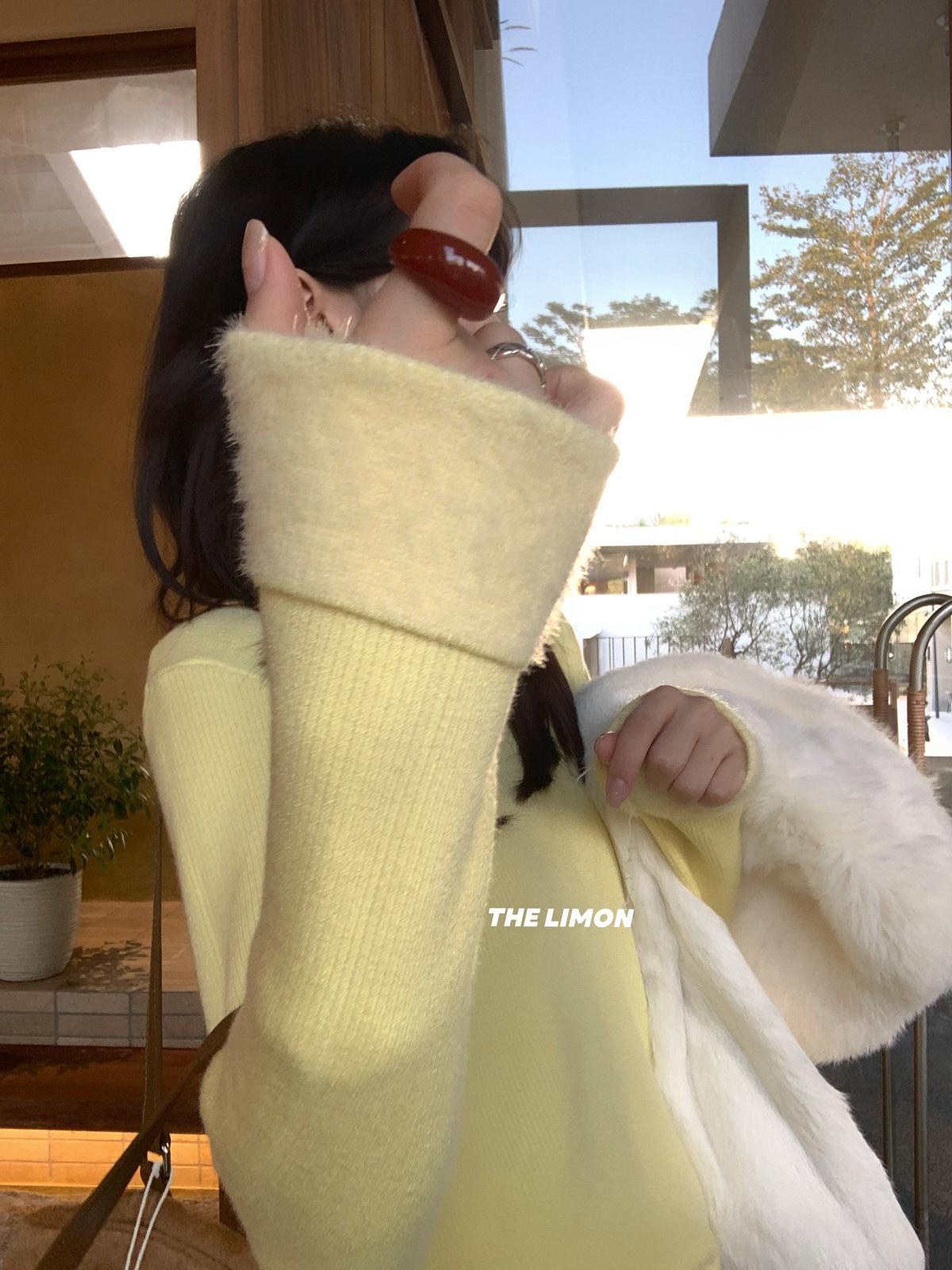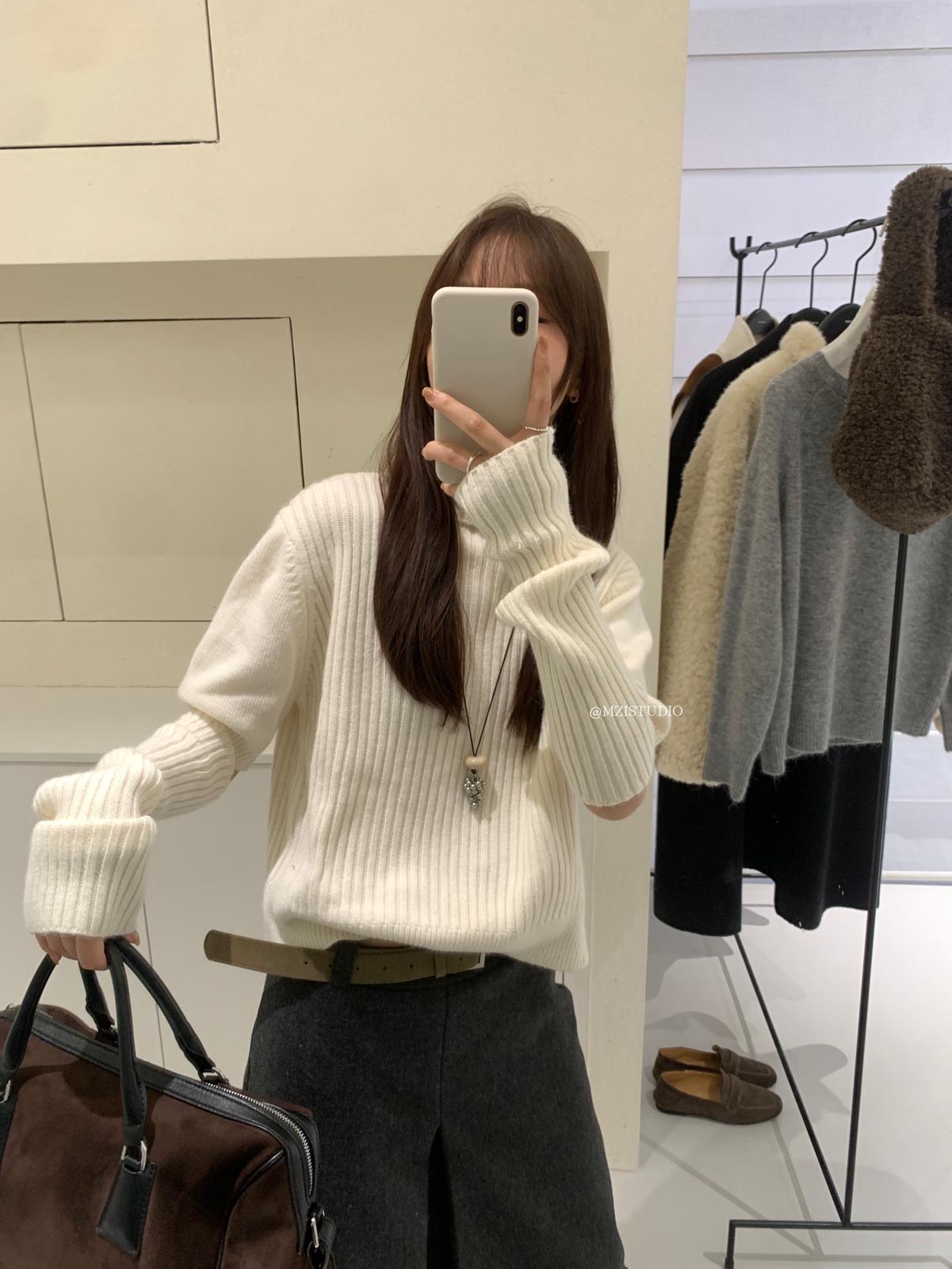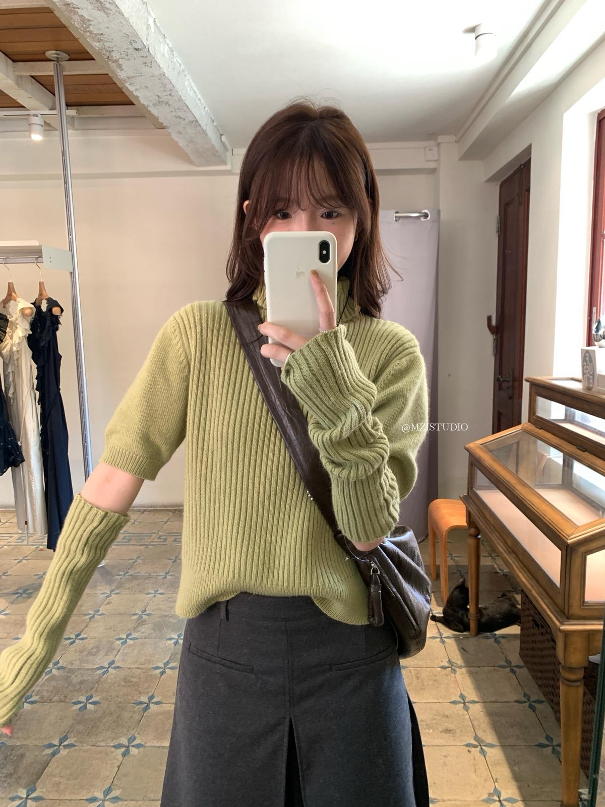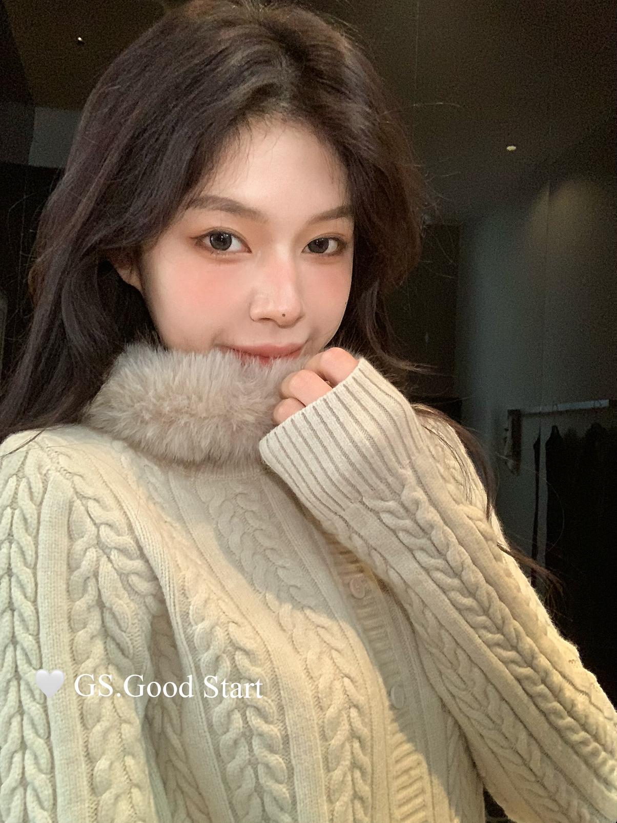 【C8002】保持自信姿態韓系冬季氣質優雅少女感減齡高領套頭保暖毛衣(配袖套)(含10%浣熊毛)