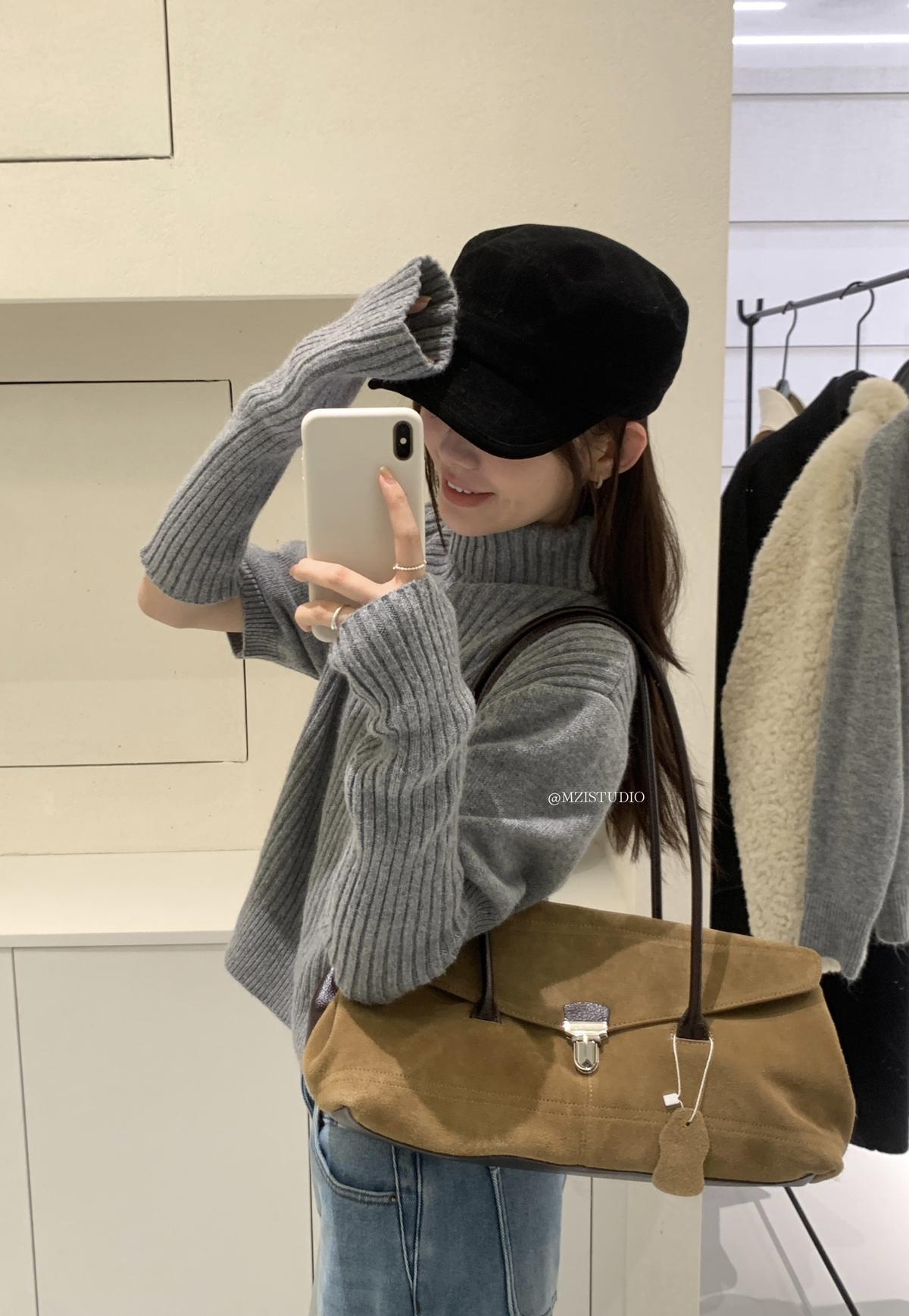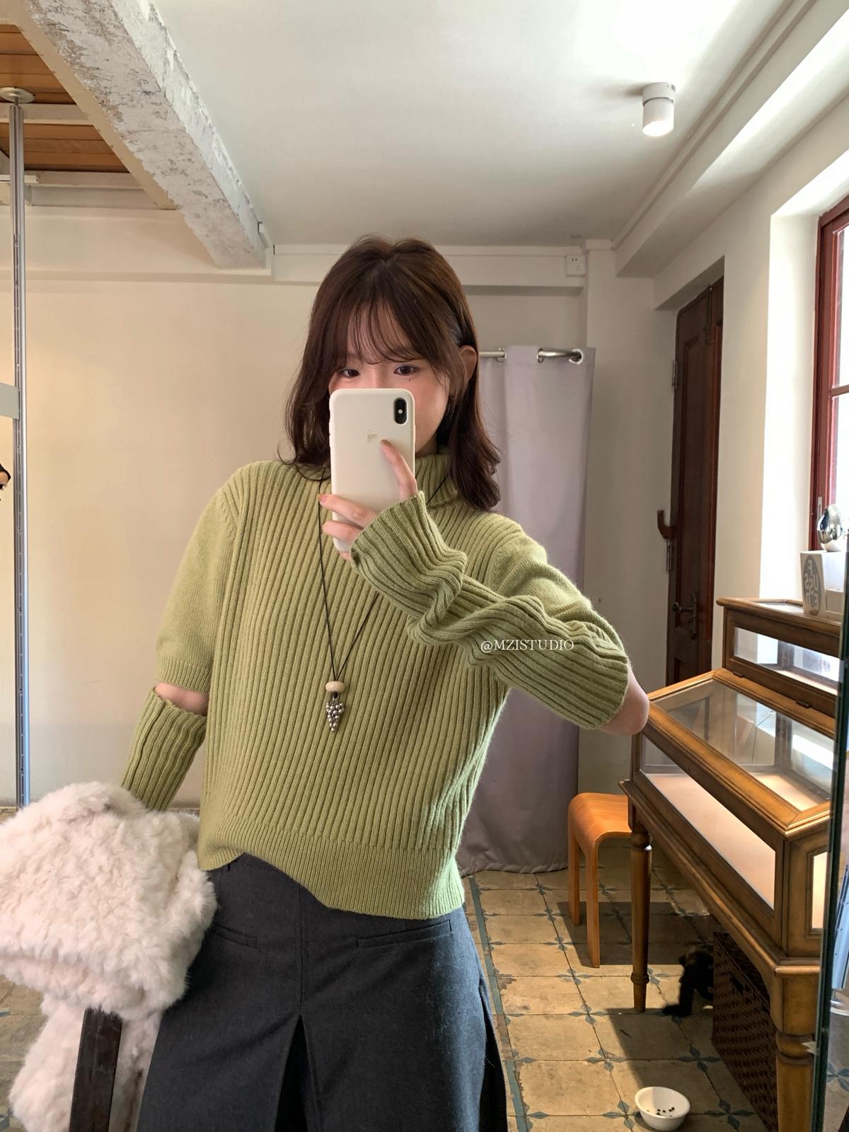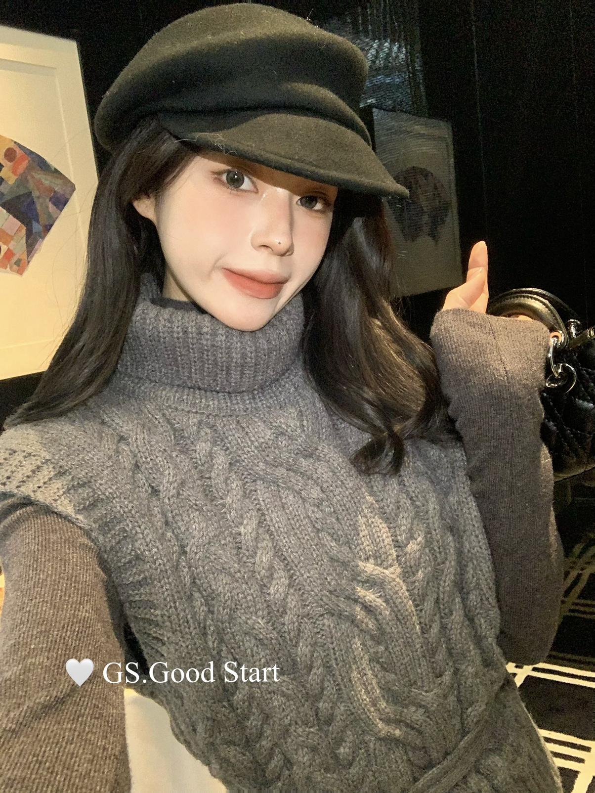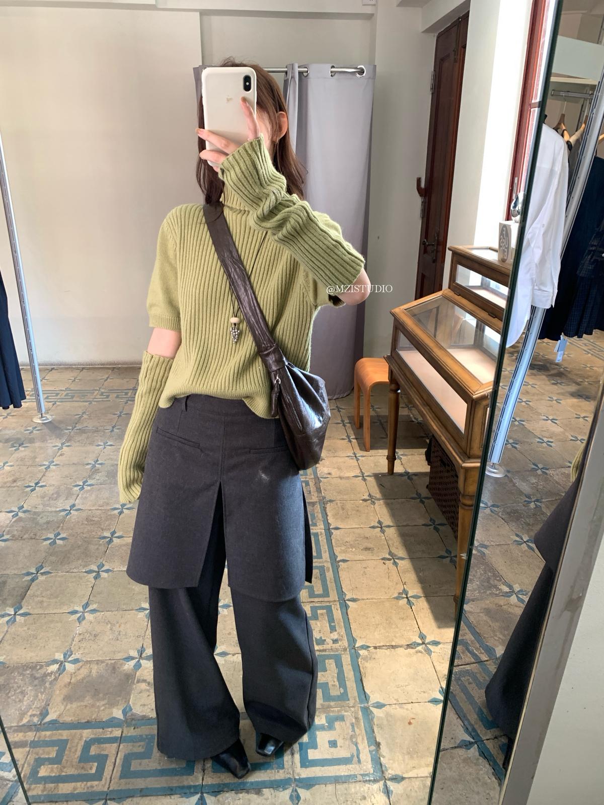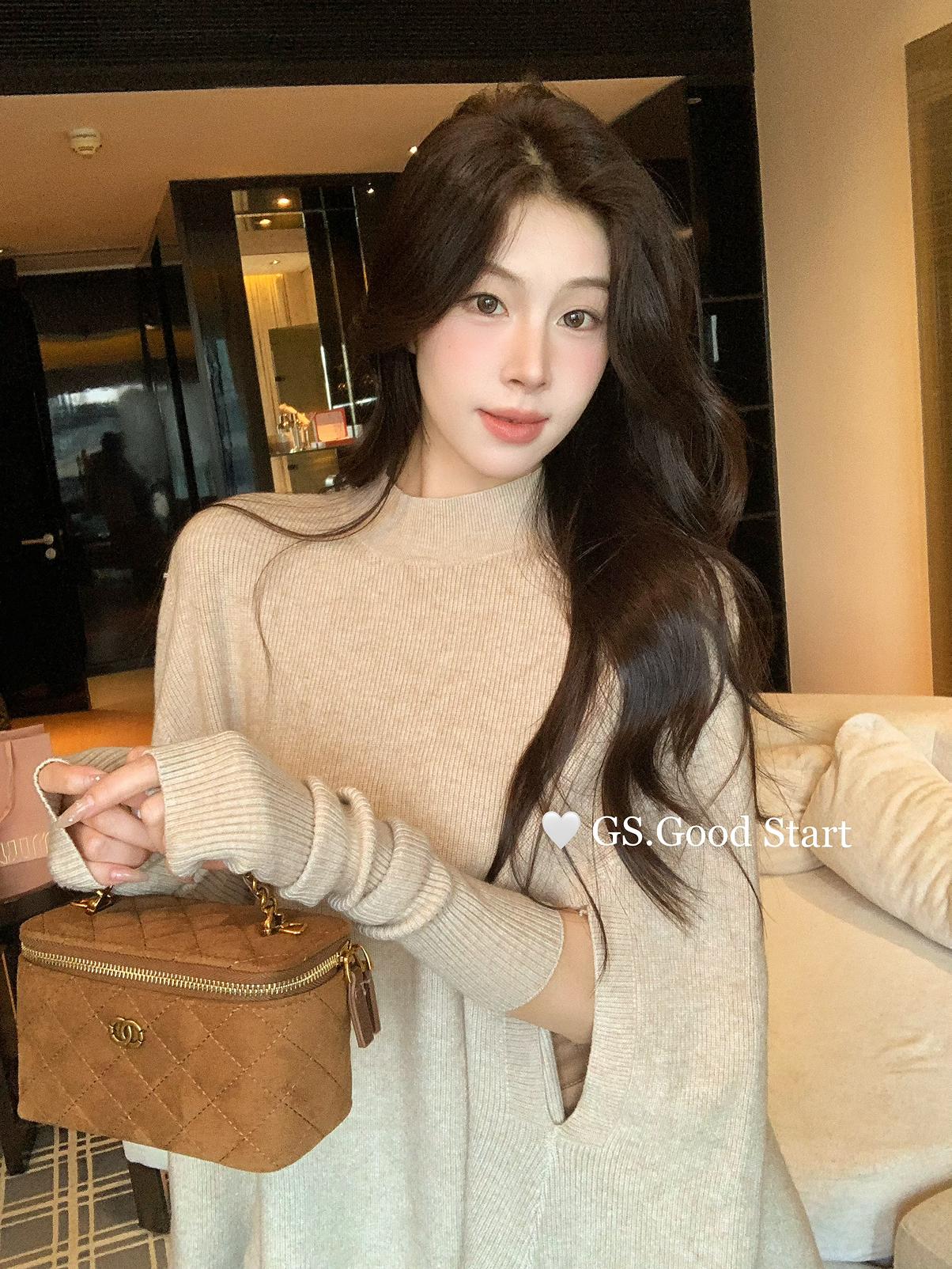 【C8002】保持自信姿態韓系冬季氣質優雅少女感減齡高領套頭保暖毛衣(配袖套)(含10%浣熊毛)