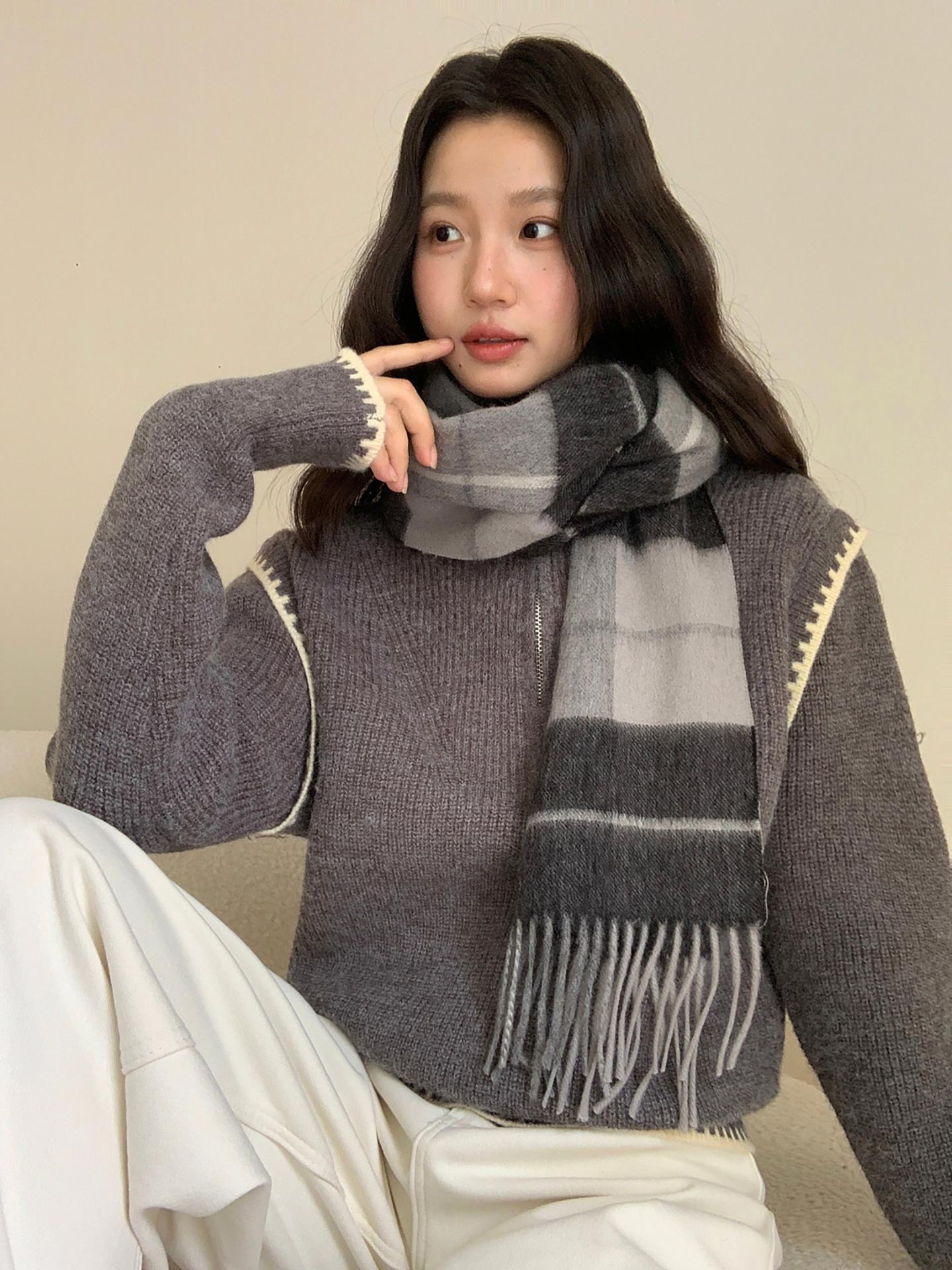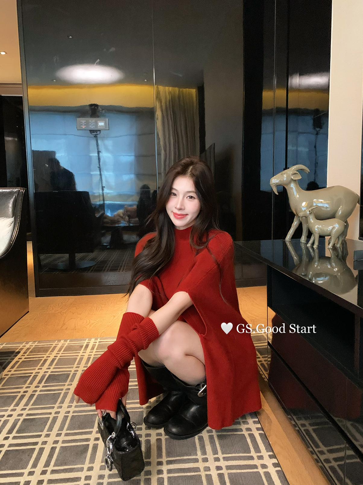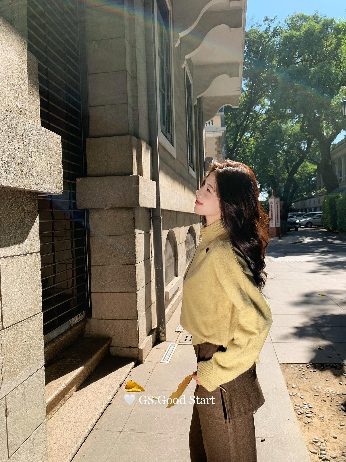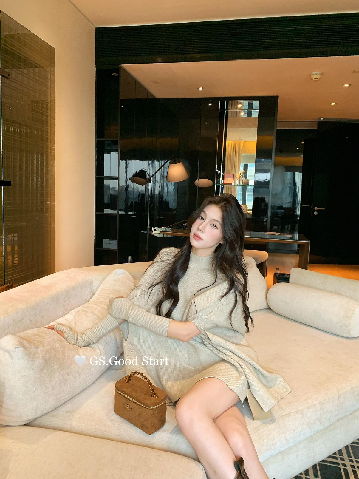 【C8002】保持自信姿態韓系冬季氣質優雅少女感減齡高領套頭保暖毛衣(配袖套)(含10%浣熊毛)