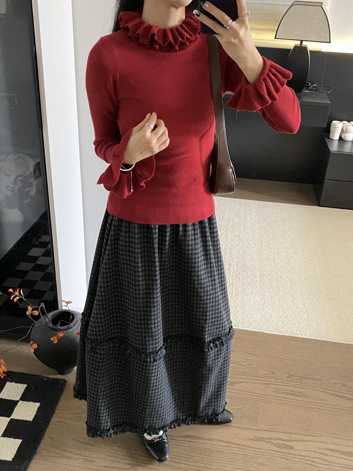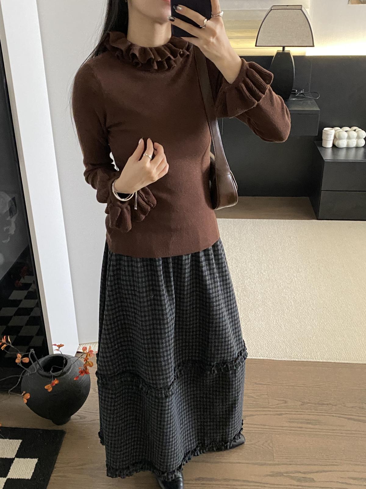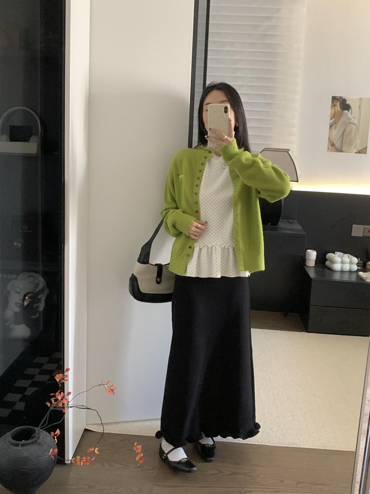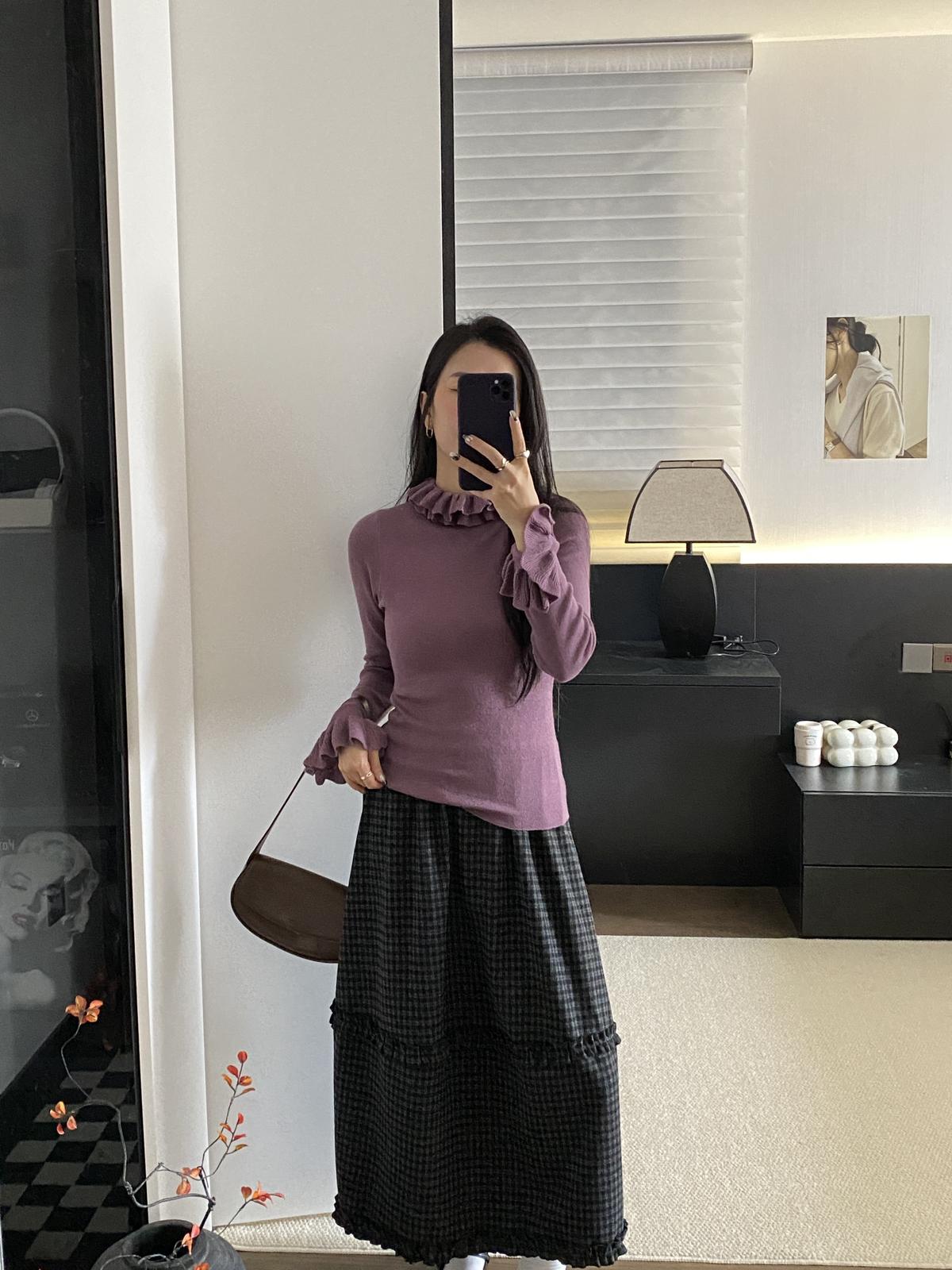 【C7946】慵懶風,高級泡泡袖魚尾擺針織衫+高腰顯瘦針織半身裙套裝(配腰帶)