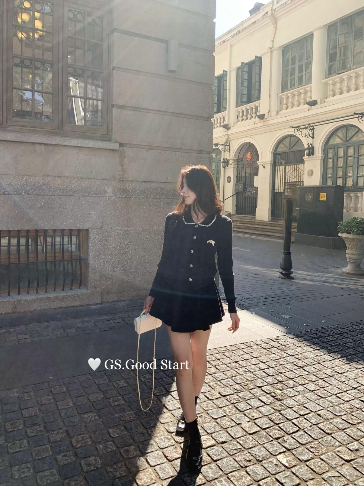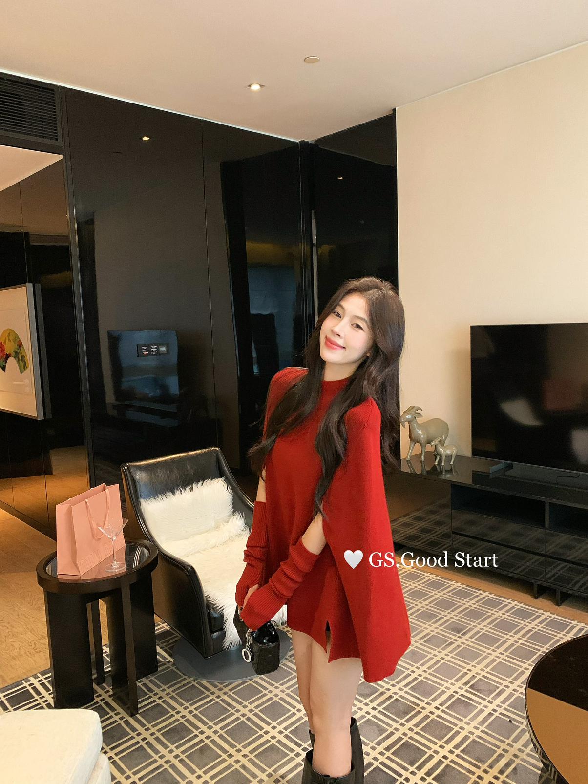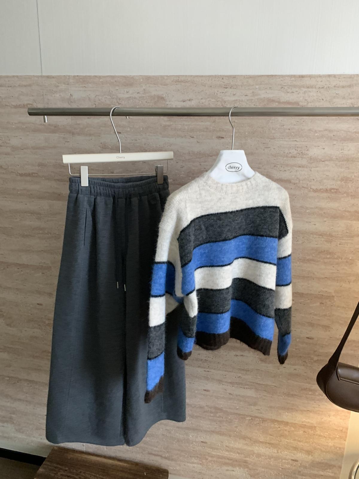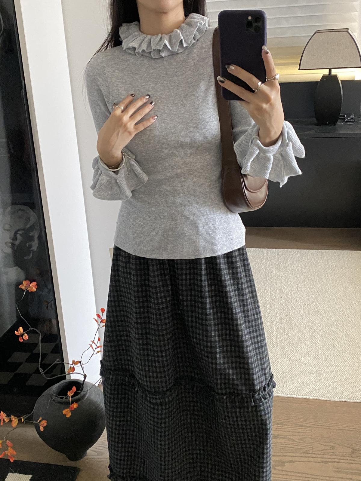 【C7946】慵懶風,高級泡泡袖魚尾擺針織衫+高腰顯瘦針織半身裙套裝(配腰帶)