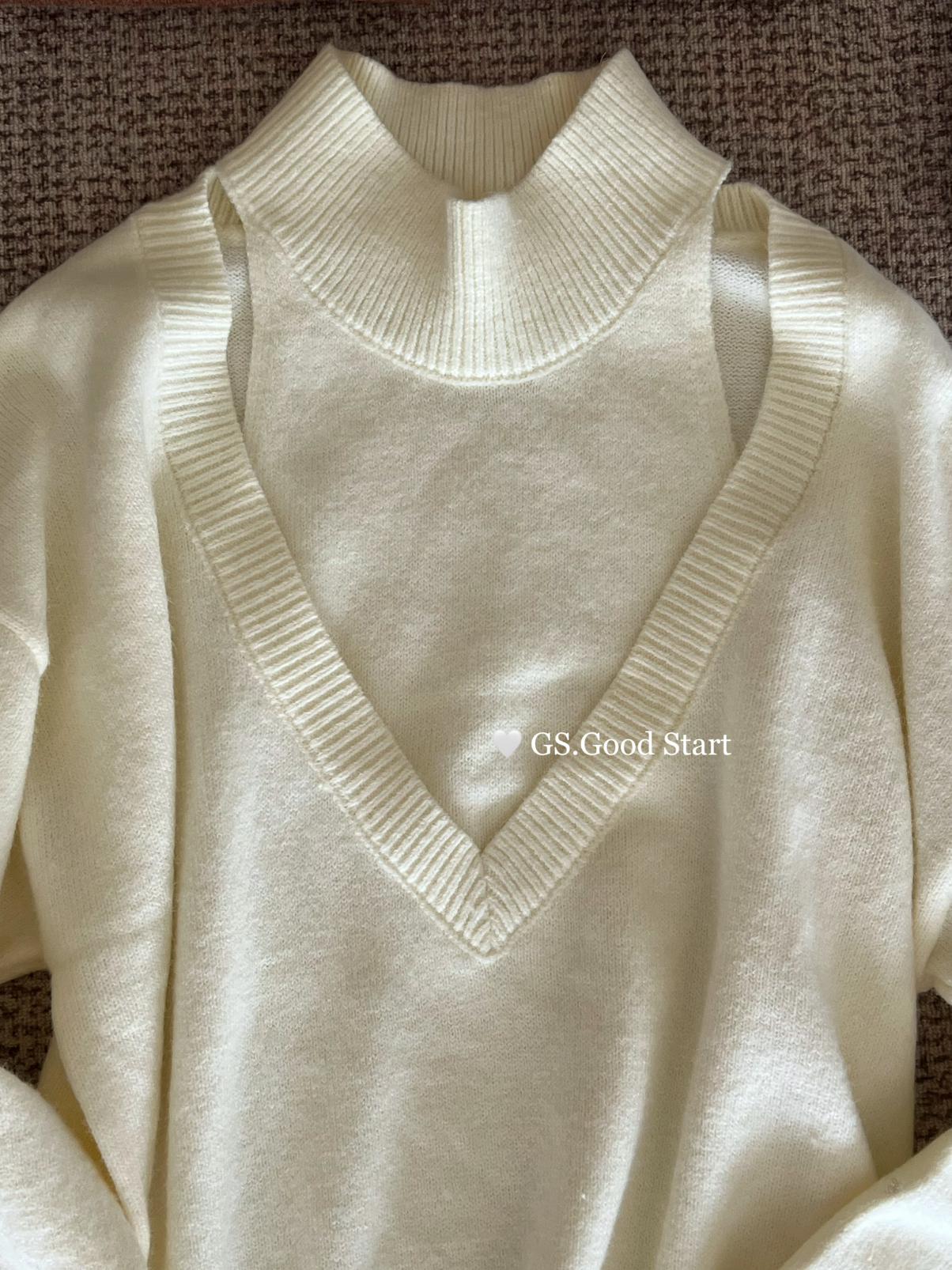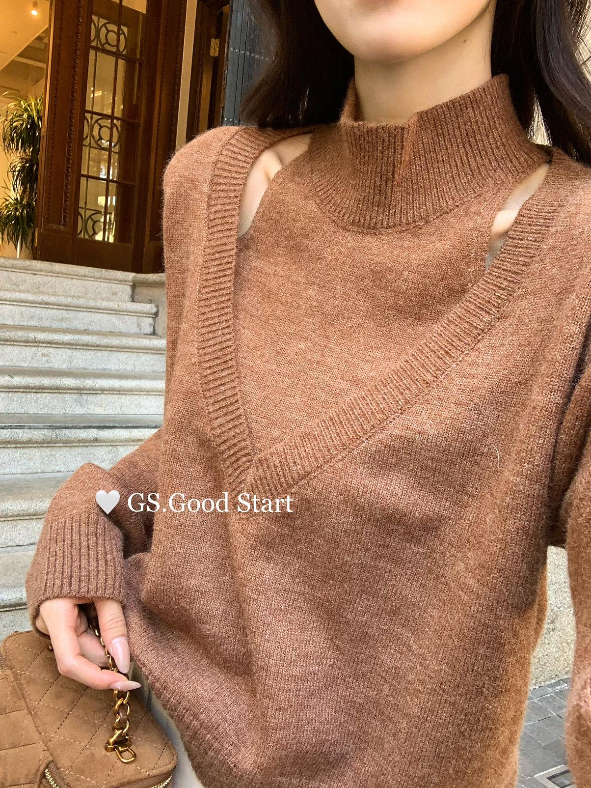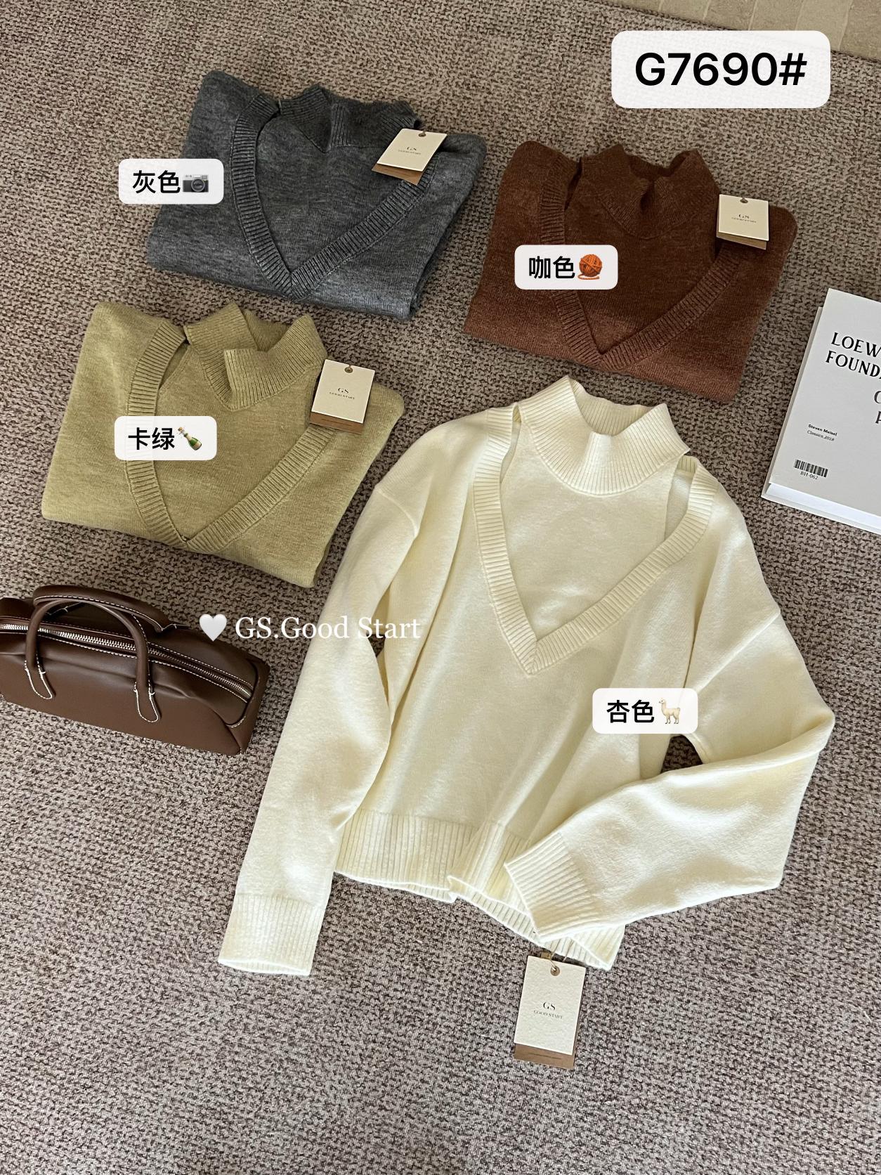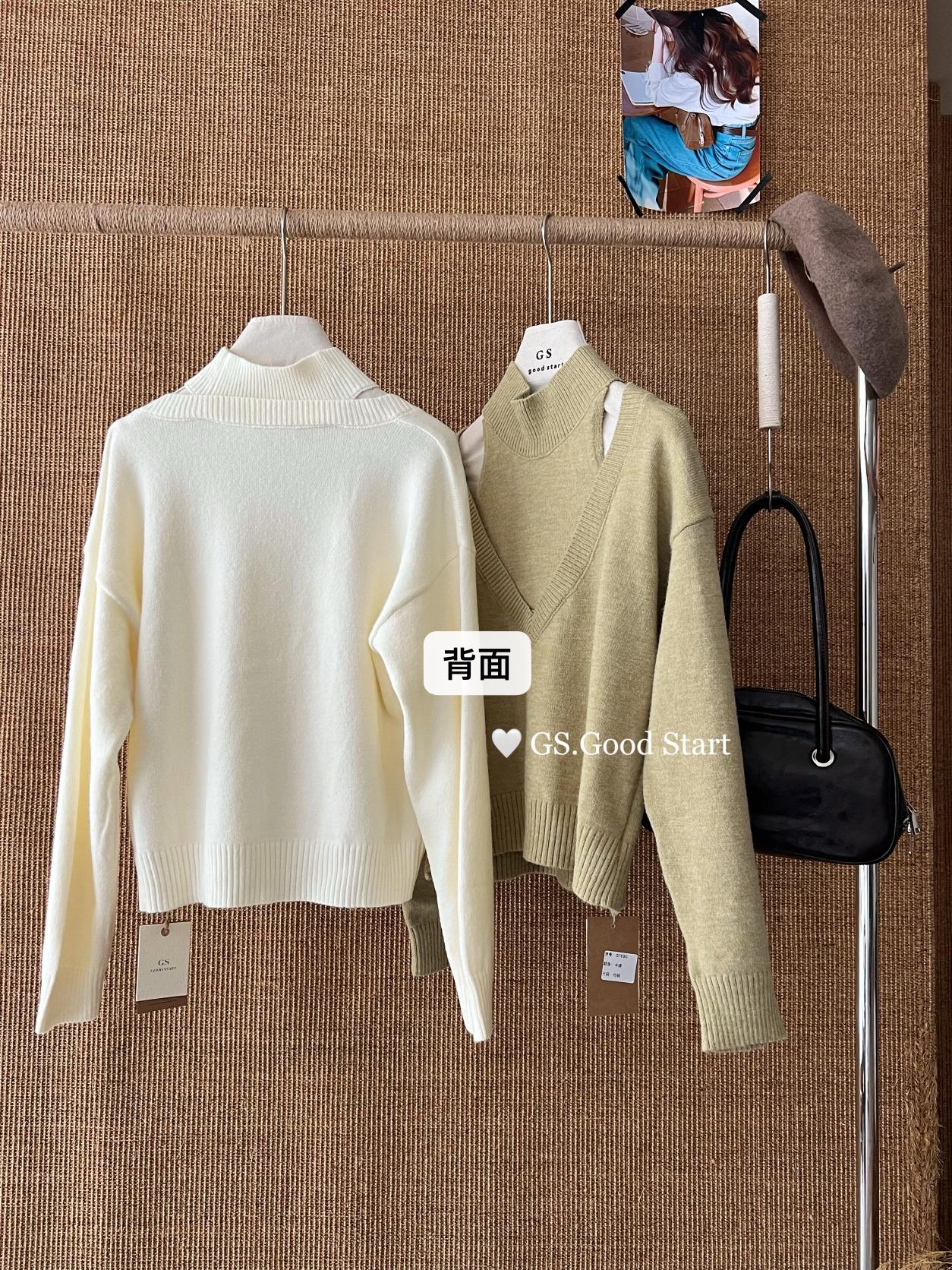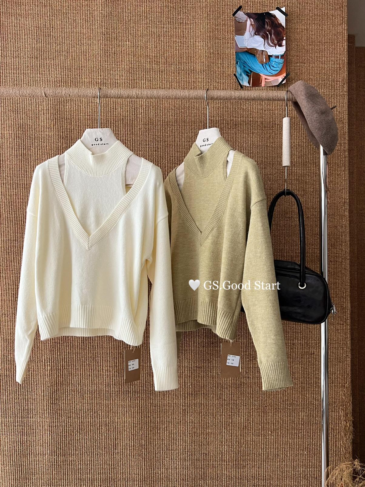 【C7940】小心機設計~不挑身形*誰穿都好看!秋冬氣質慵懶假兩件疊穿針織衫