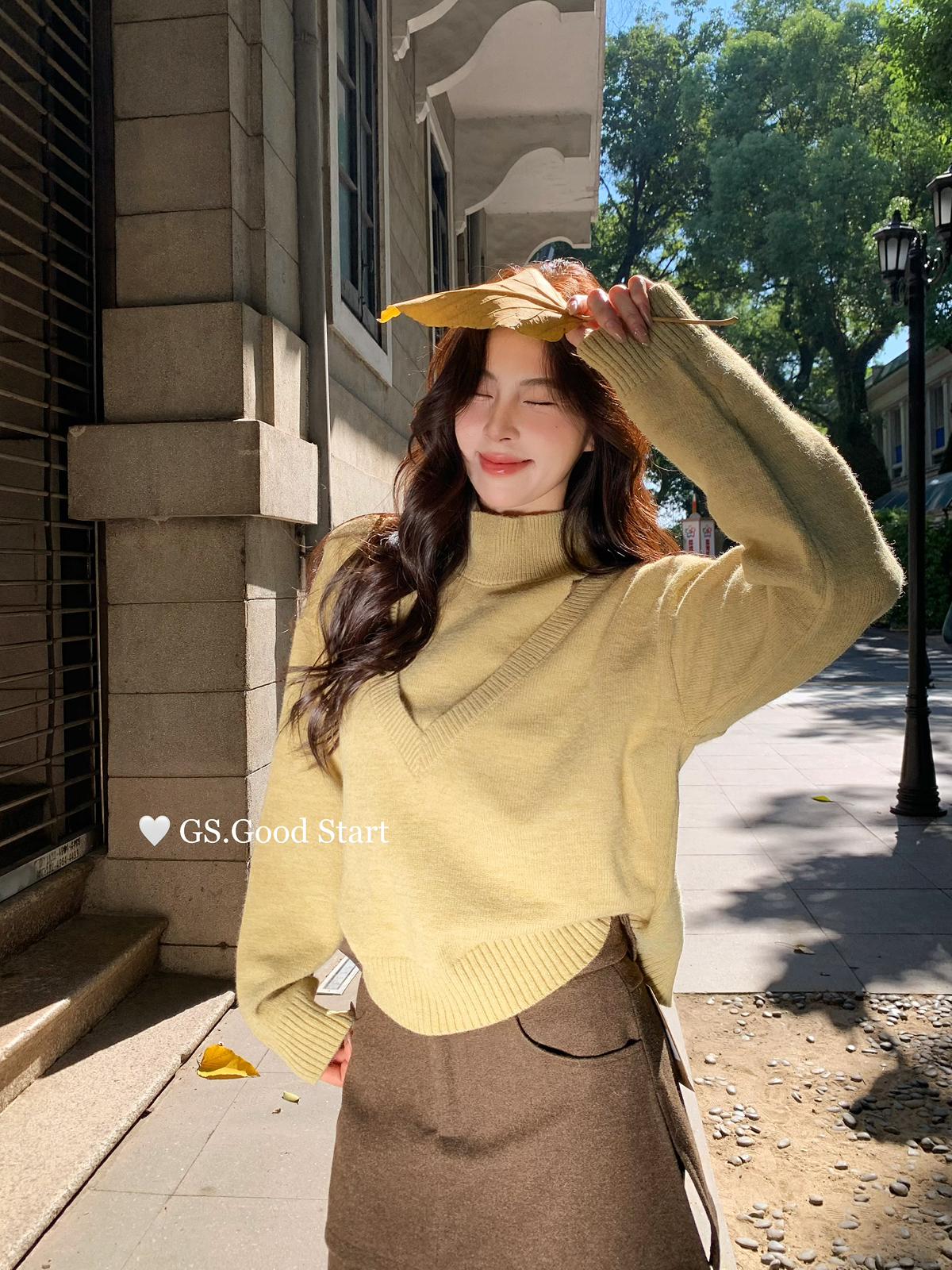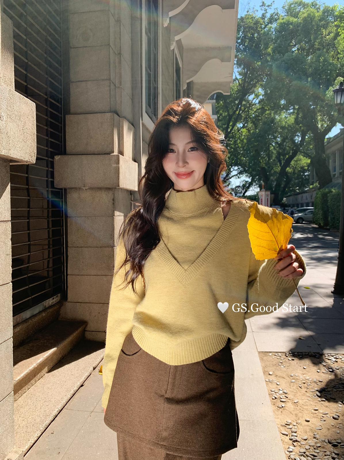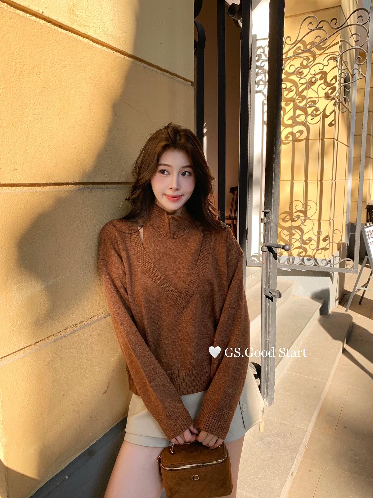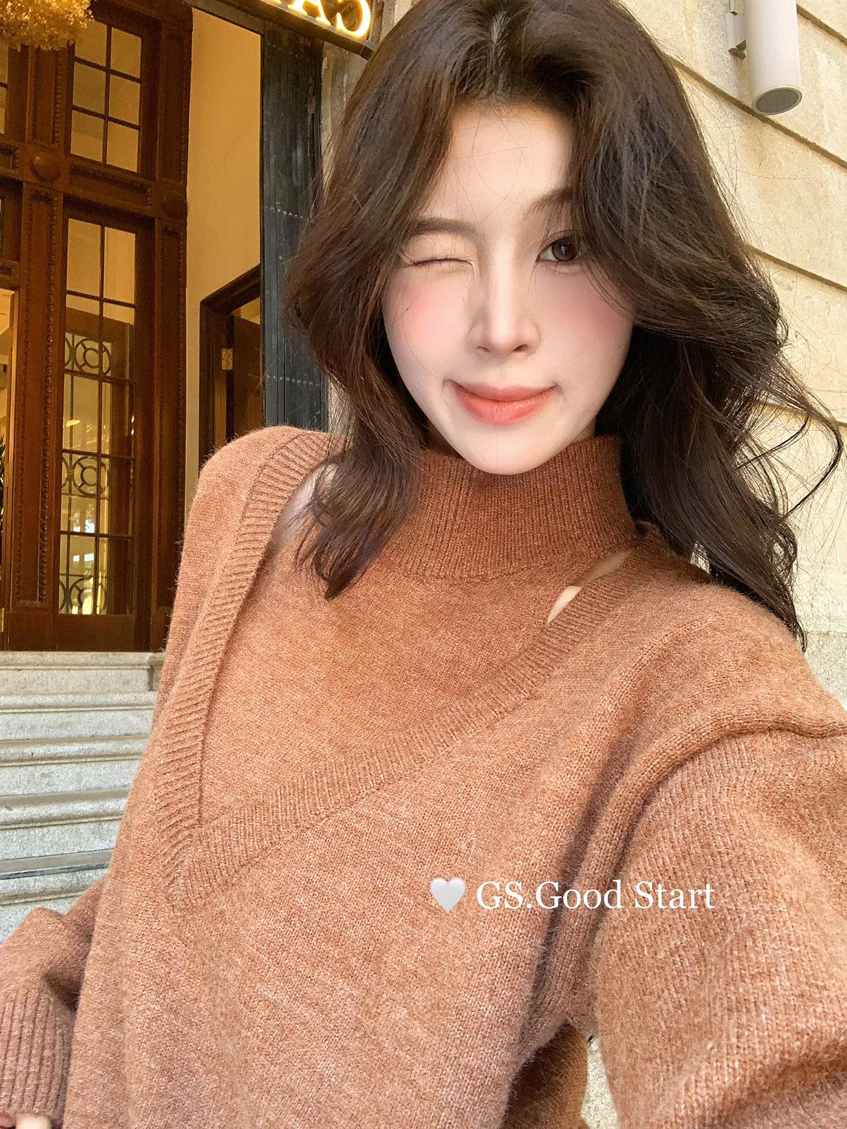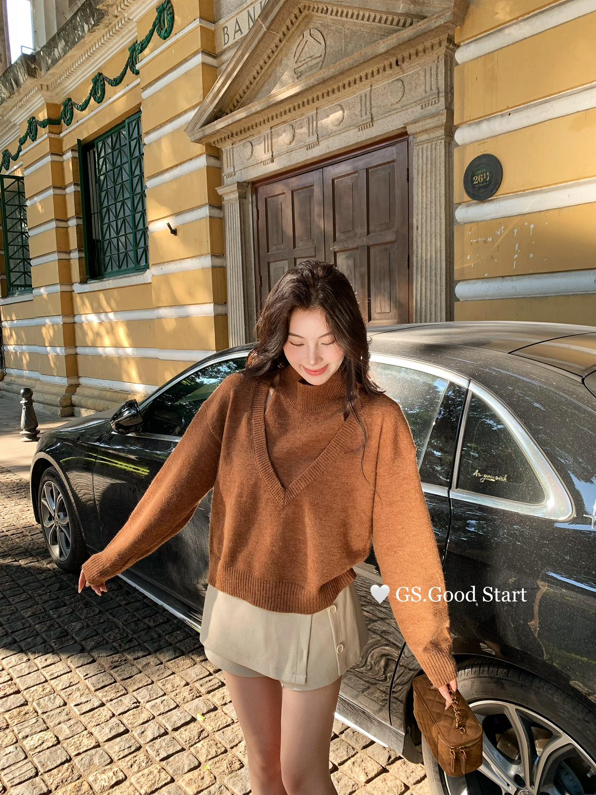 【C7940】小心機設計~不挑身形*誰穿都好看!秋冬氣質慵懶假兩件疊穿針織衫