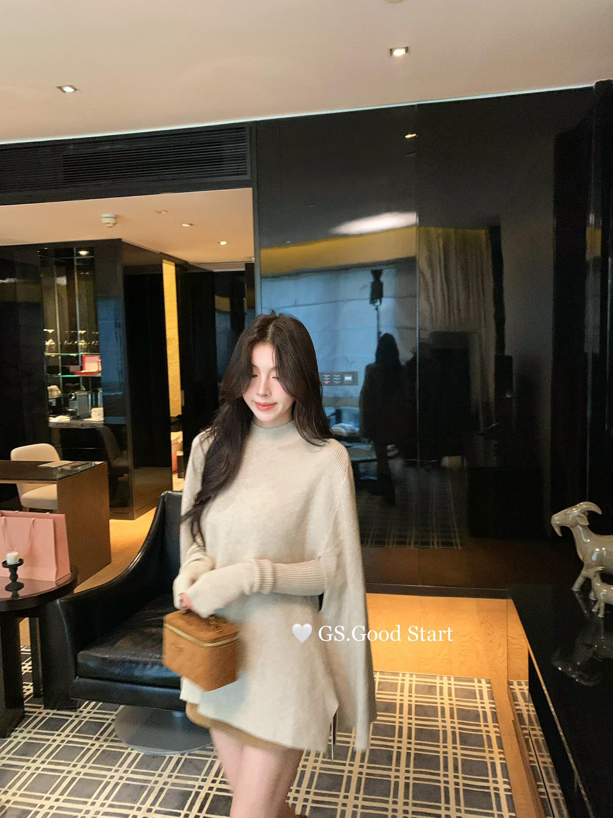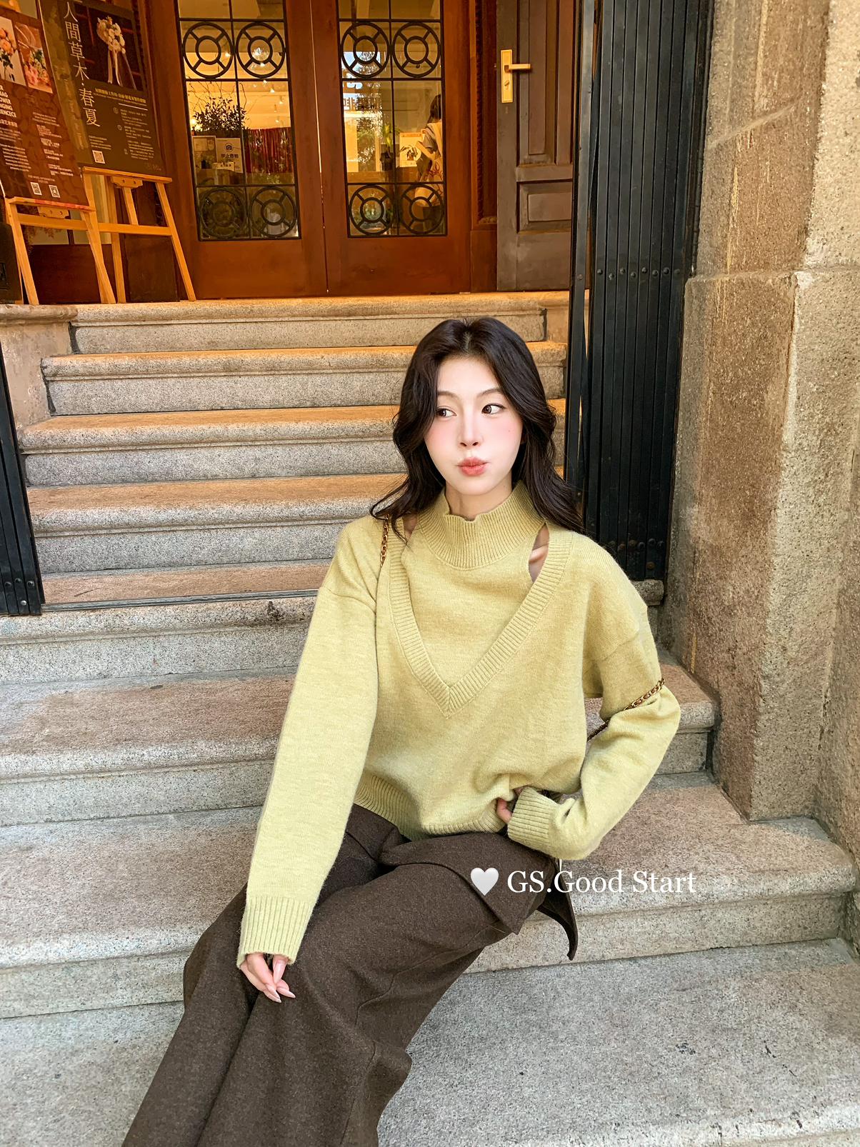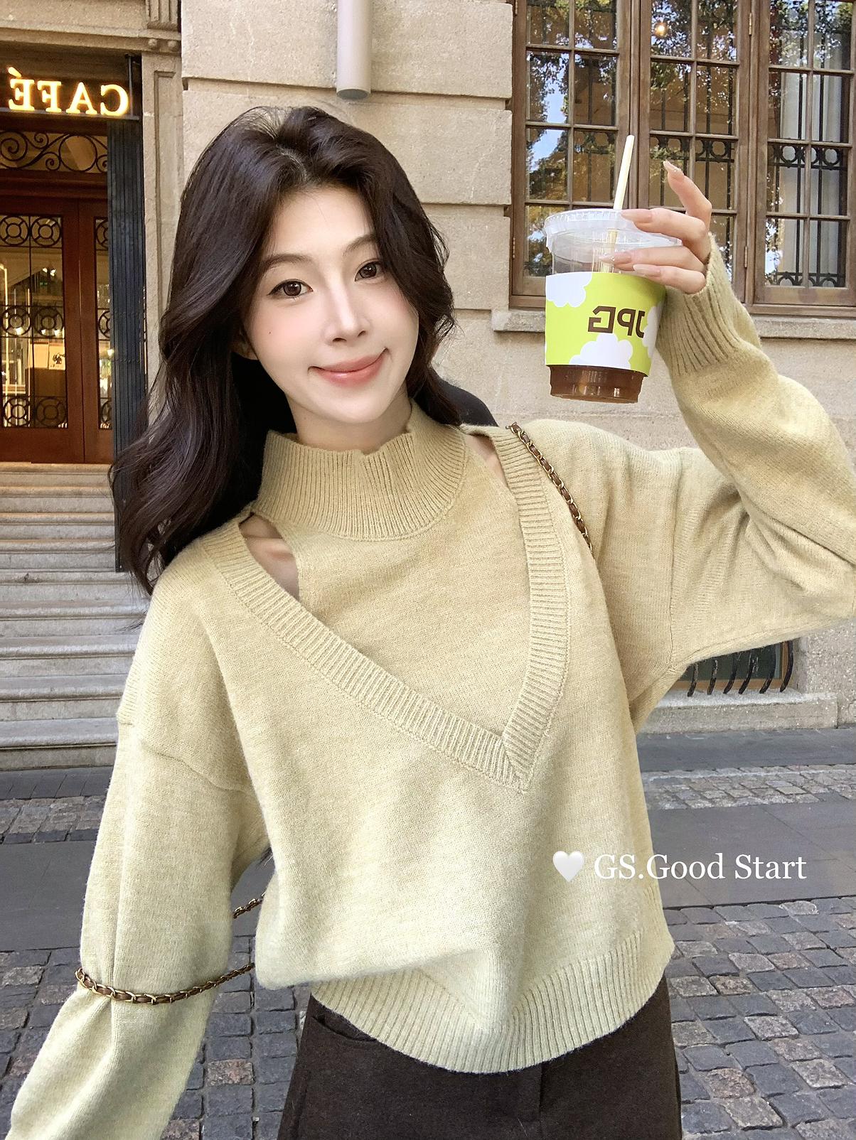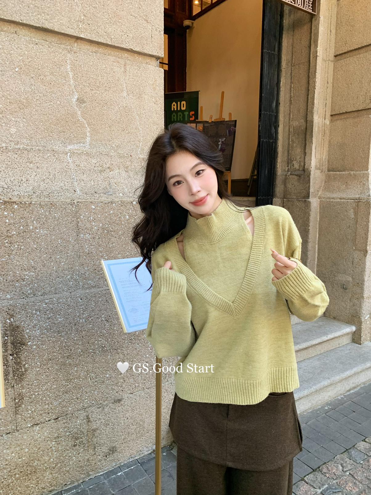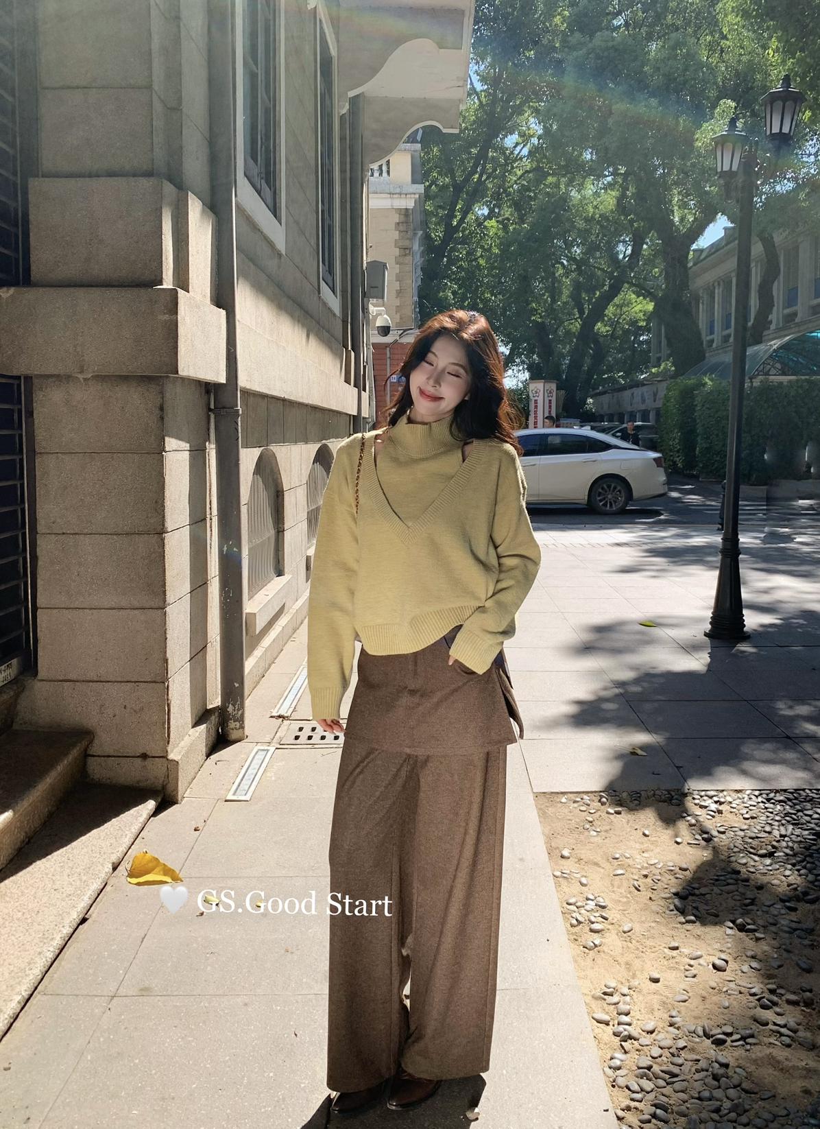 【C7940】小心機設計~不挑身形*誰穿都好看!秋冬氣質慵懶假兩件疊穿針織衫