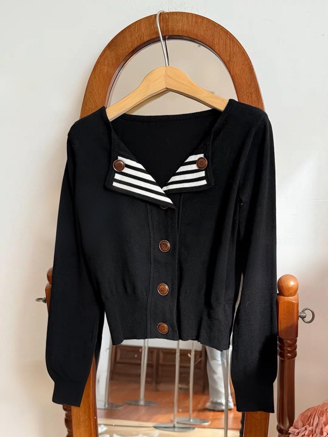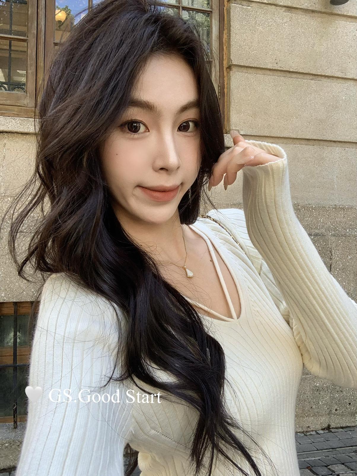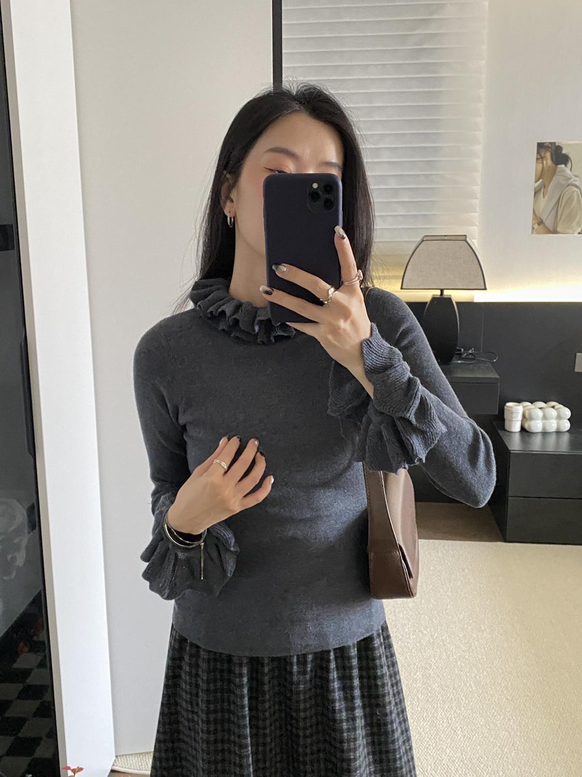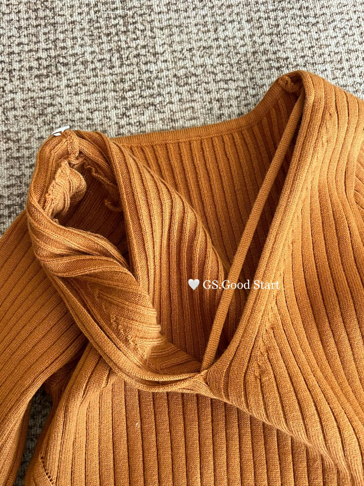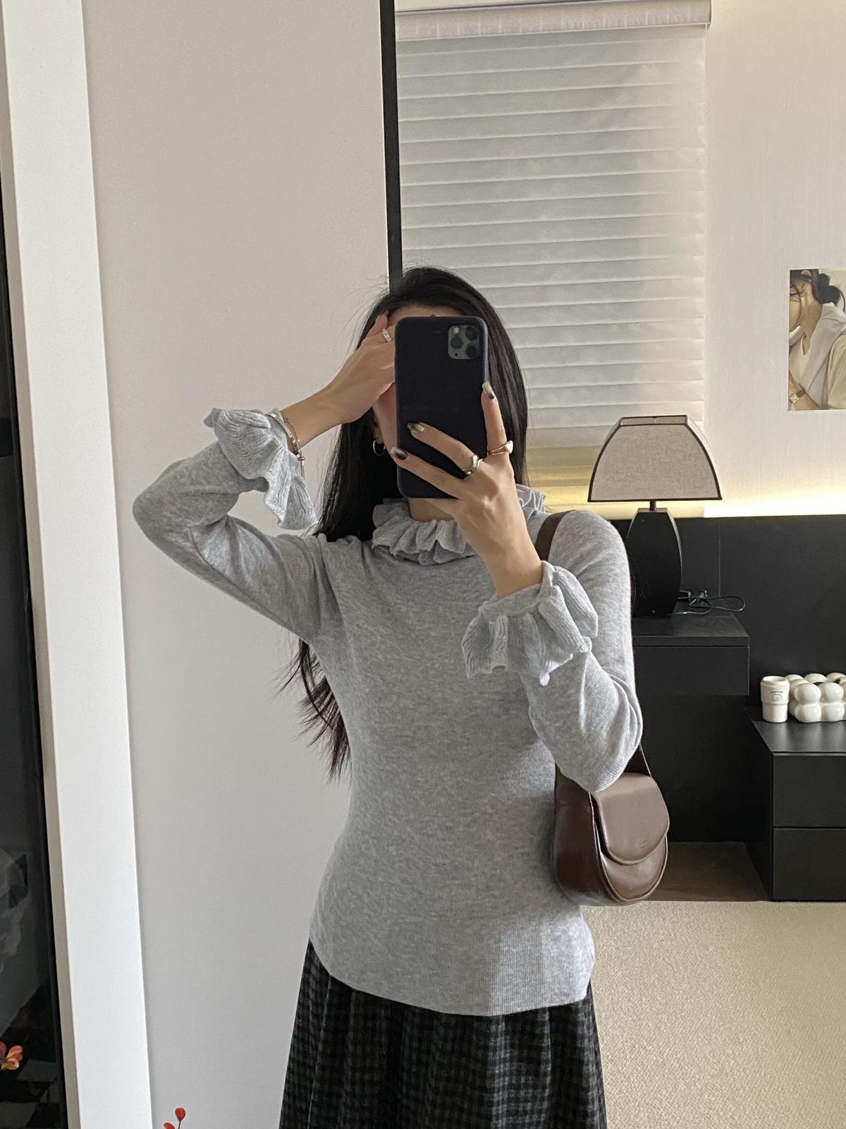 【C7993】韓系小衆設計感鏤空扭結解構設計加絨修身顯瘦長袖小衫