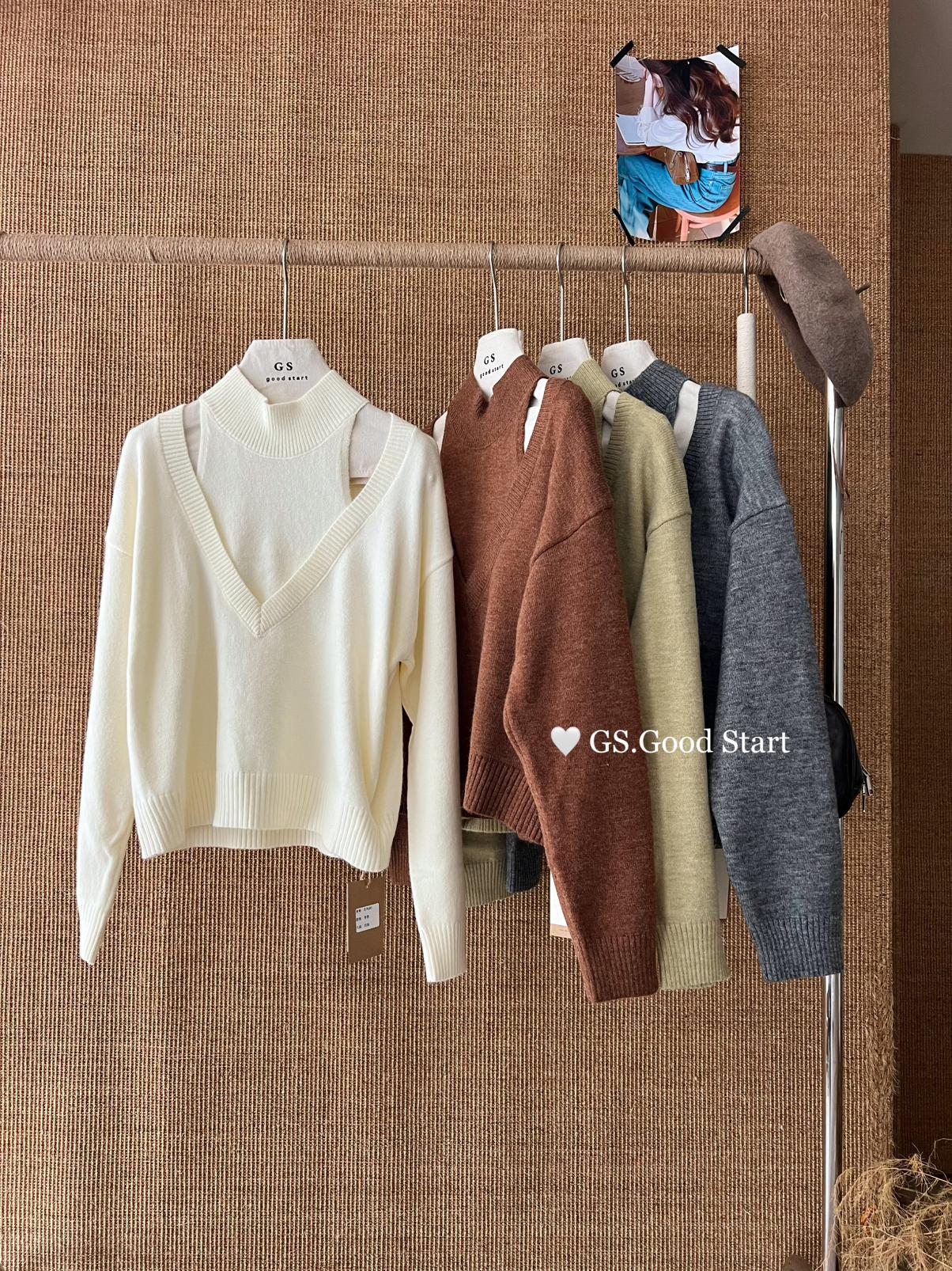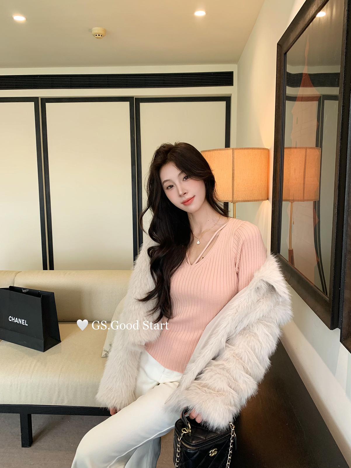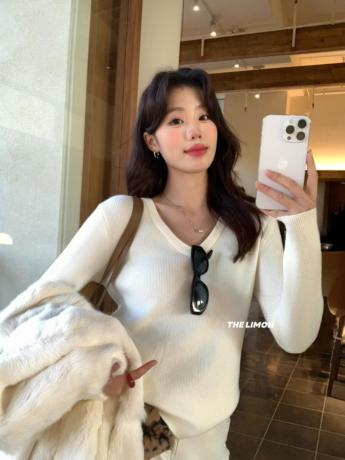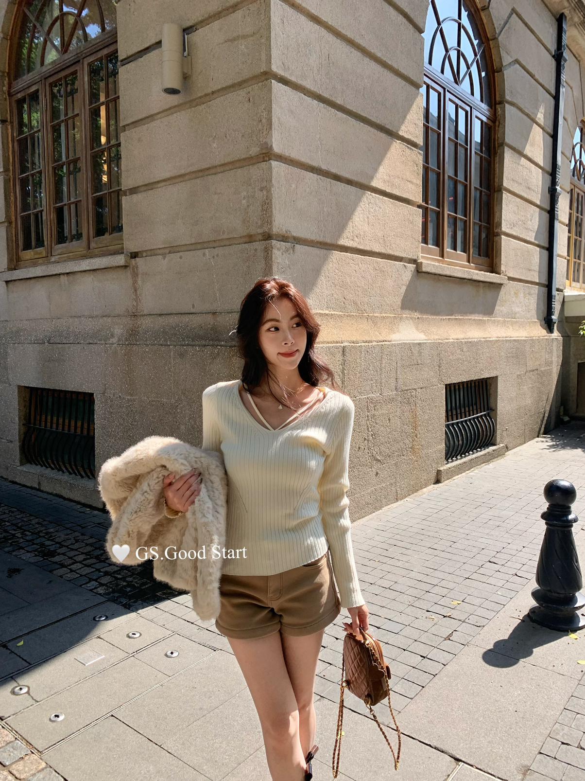 【C8014】誇爆這個版型!人手一件*閉眼衝!秋冬純欲感簡約v領修身針織小衫