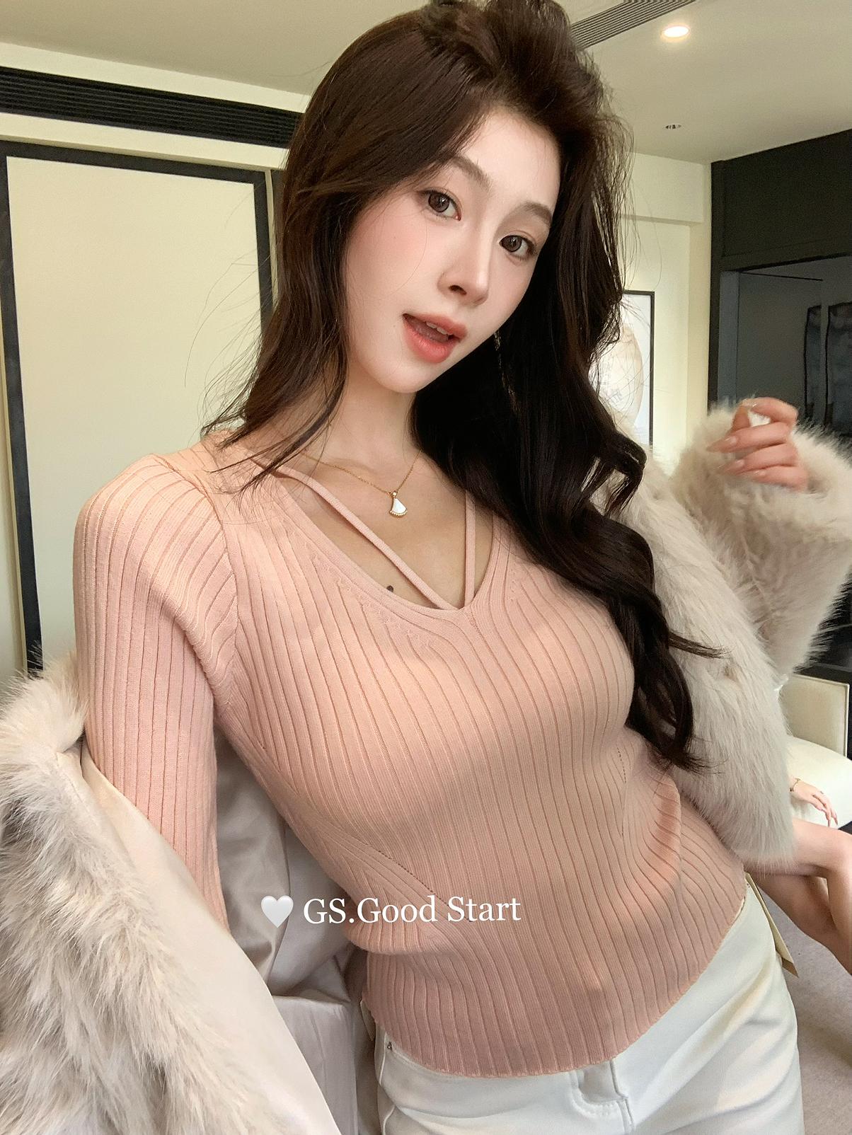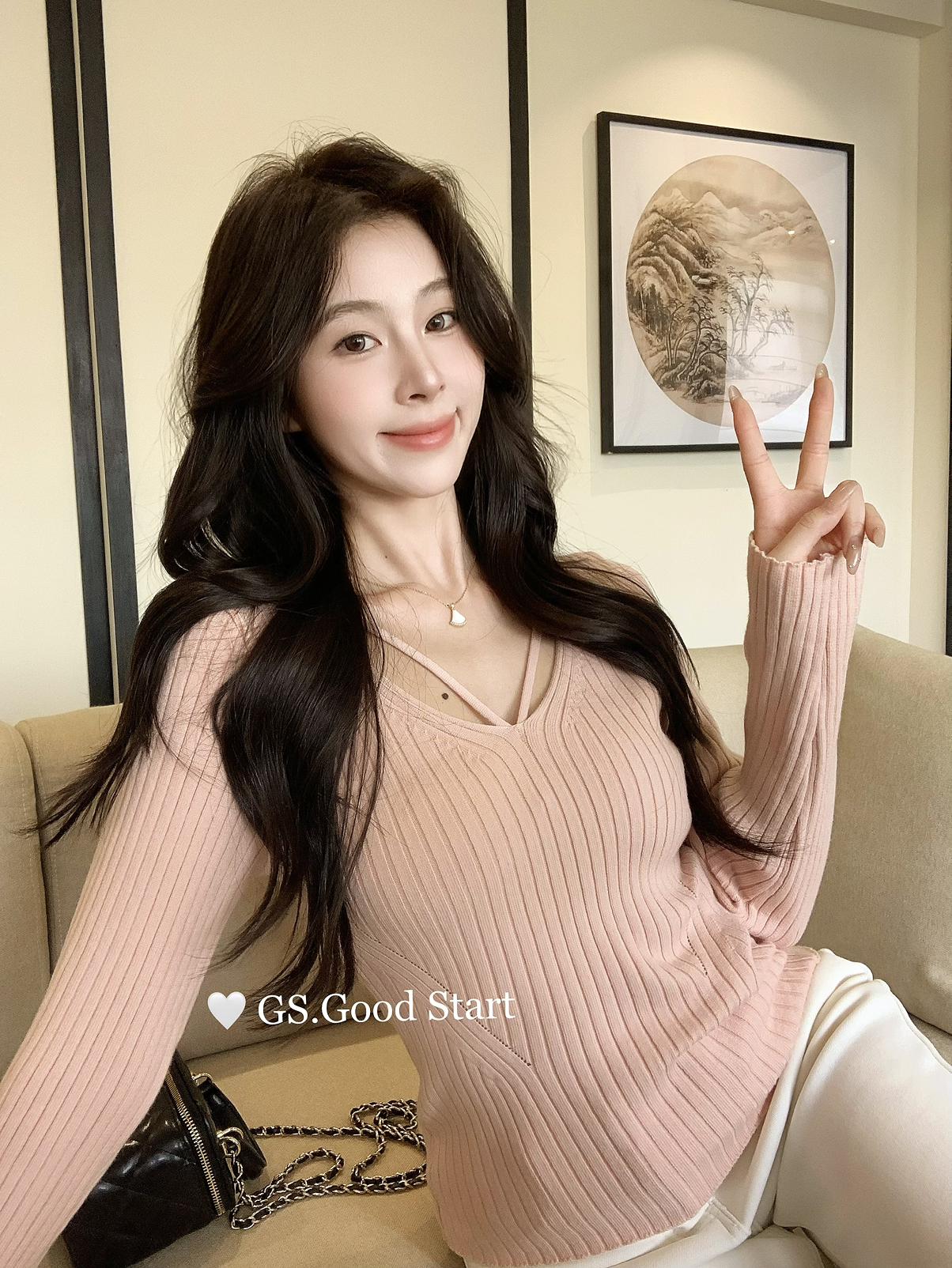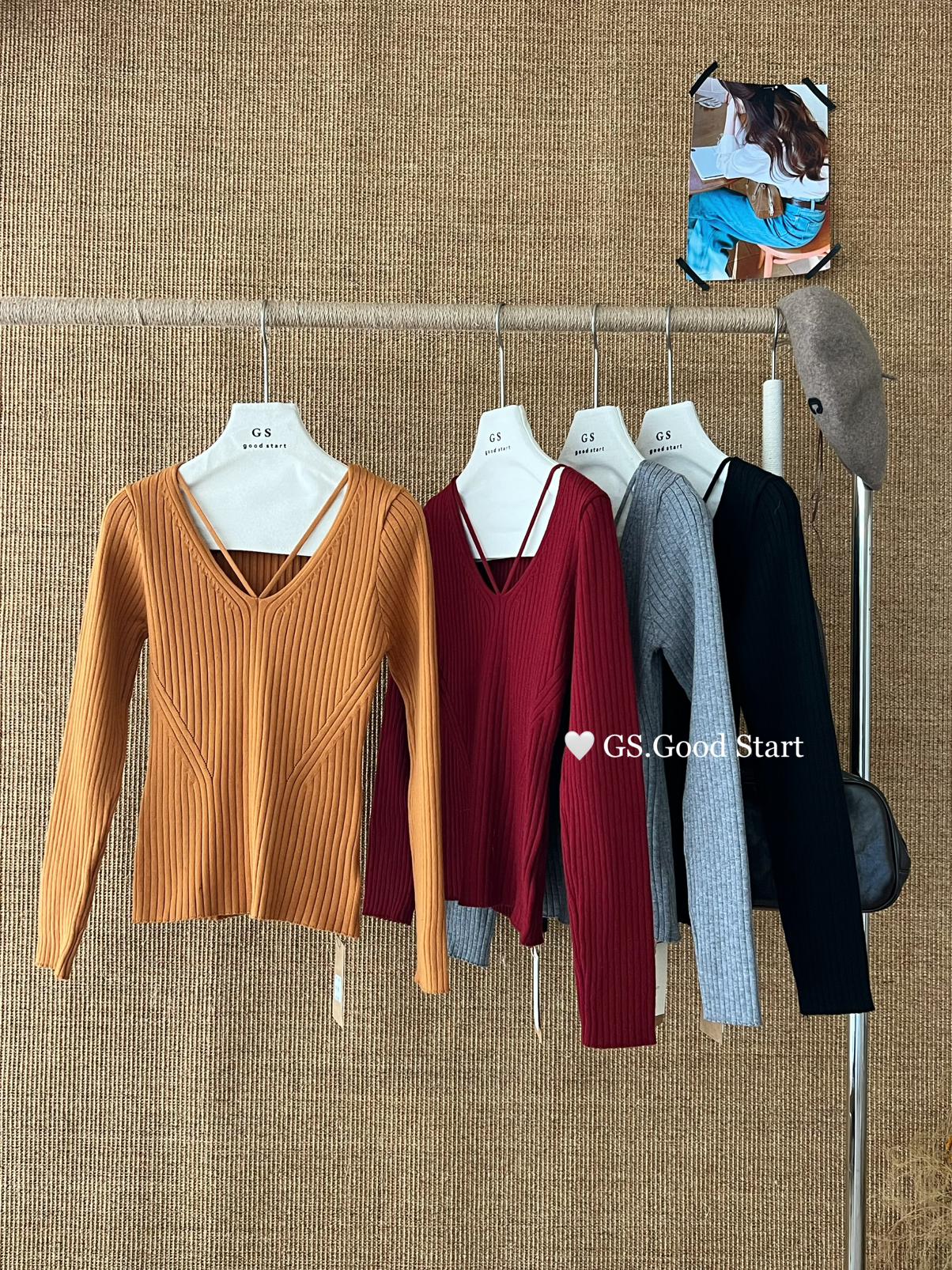 【C8014】誇爆這個版型!人手一件*閉眼衝!秋冬純欲感簡約v領修身針織小衫