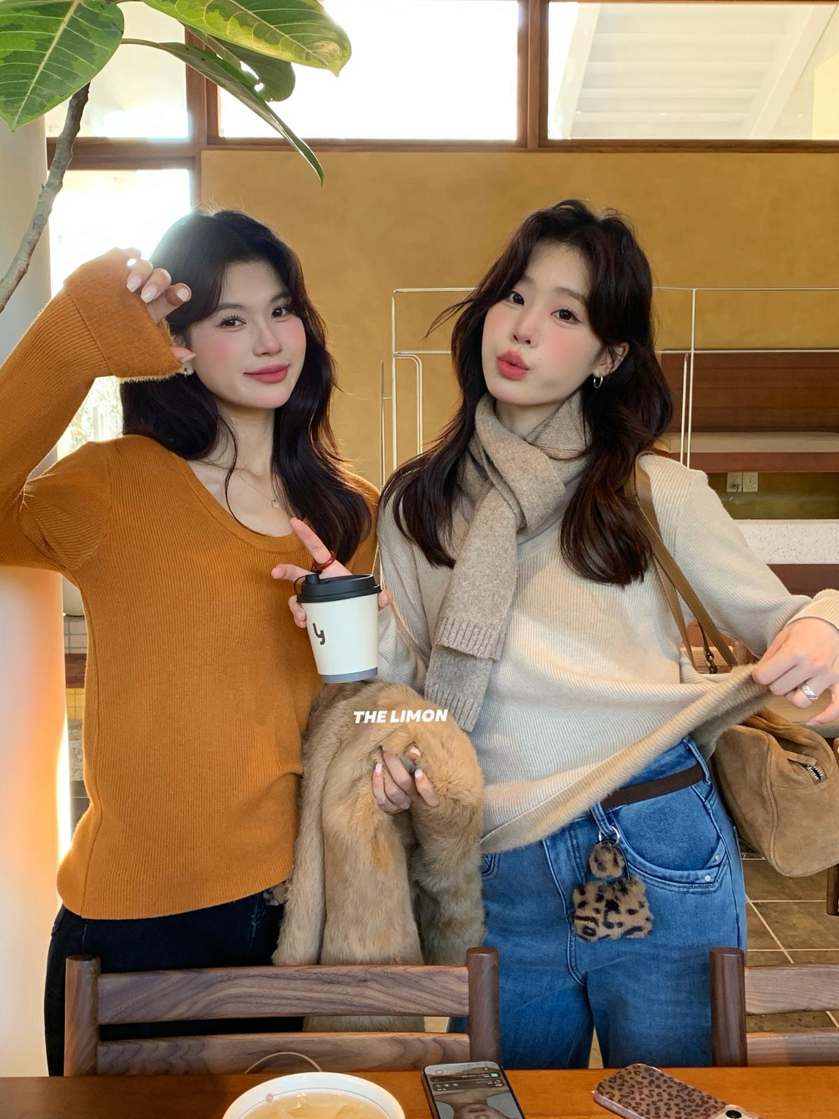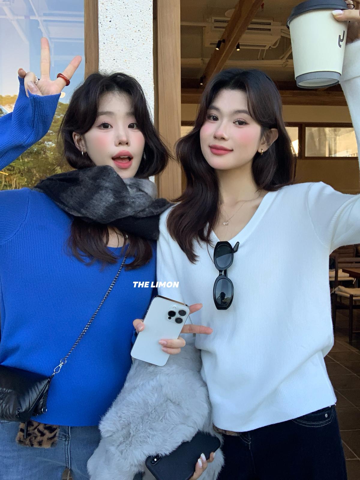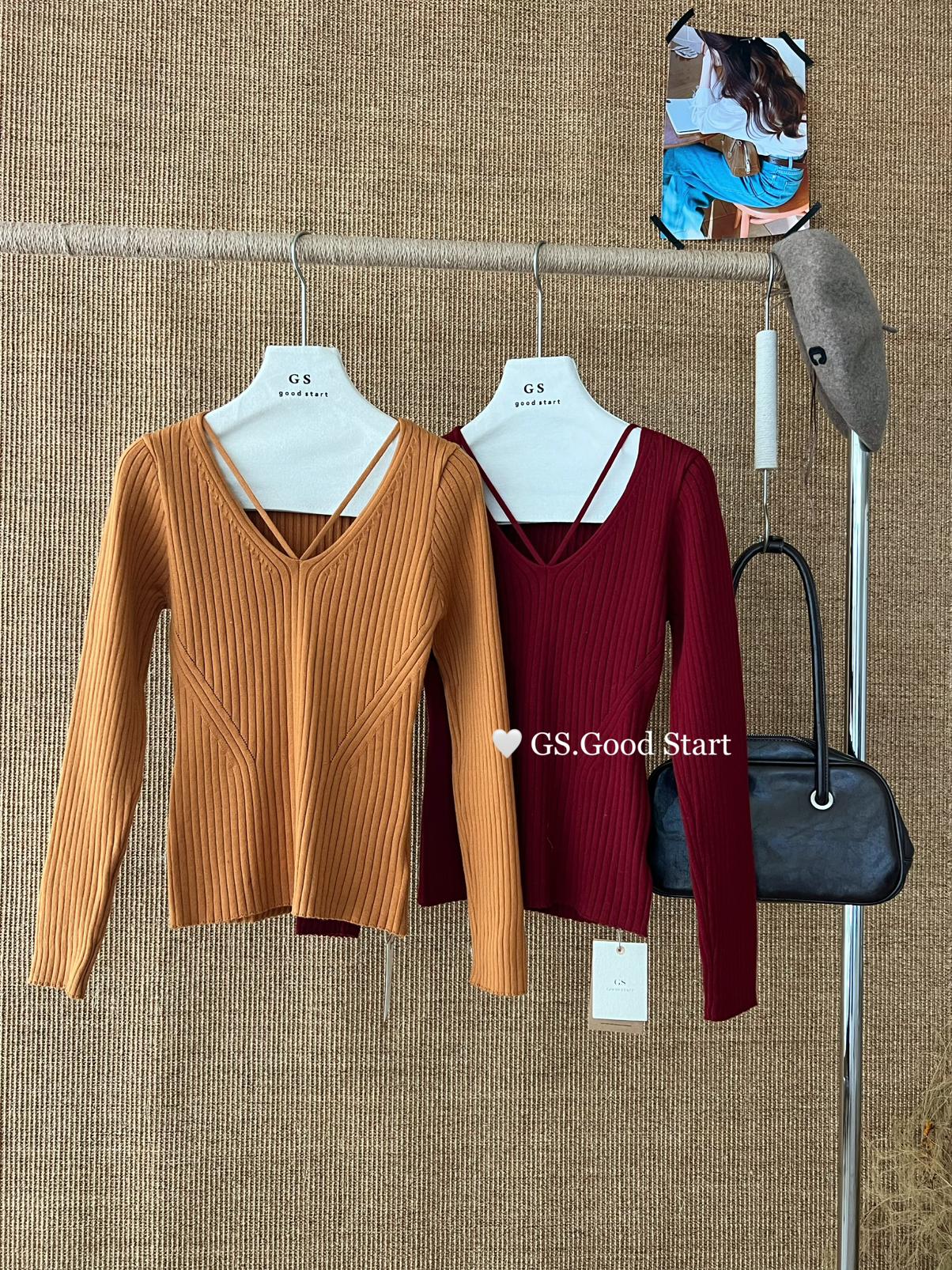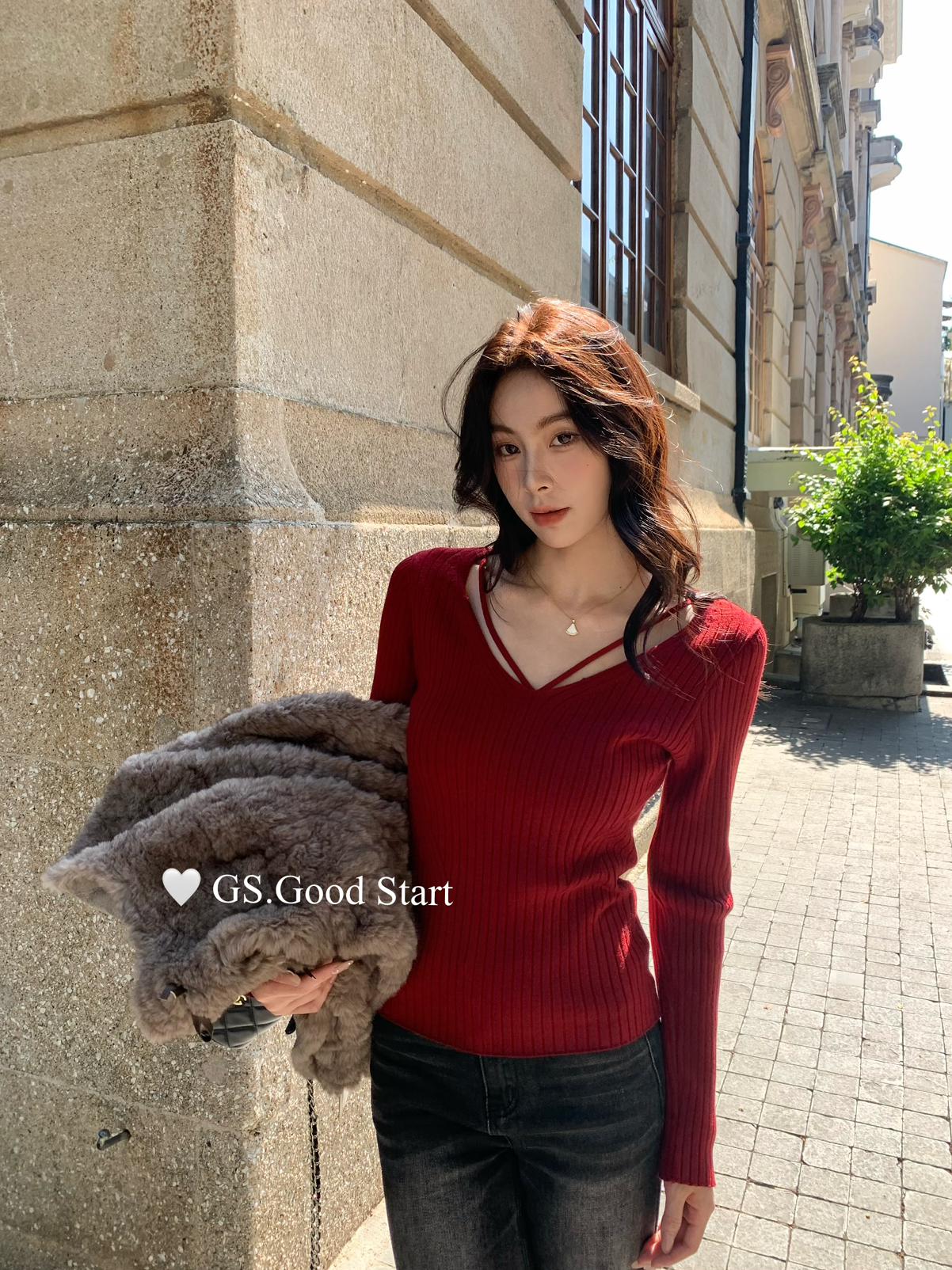 【C8014】誇爆這個版型!人手一件*閉眼衝!秋冬純欲感簡約v領修身針織小衫