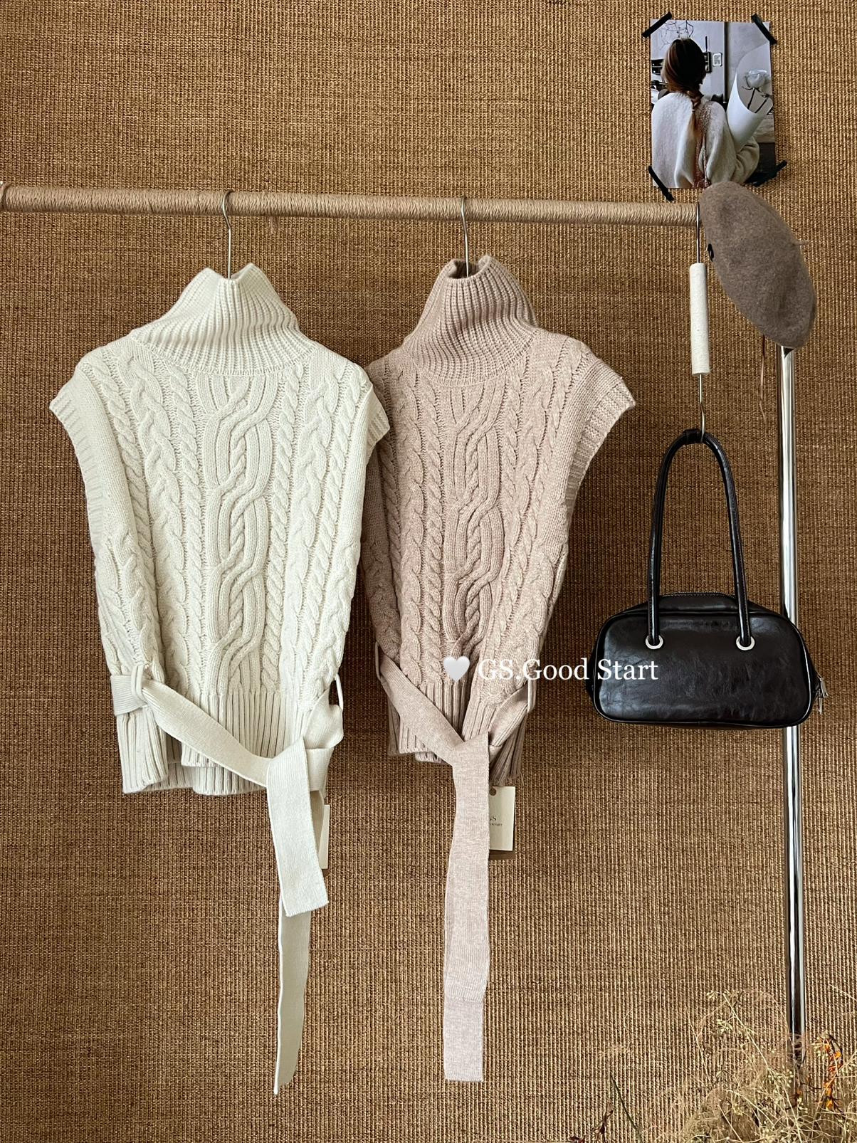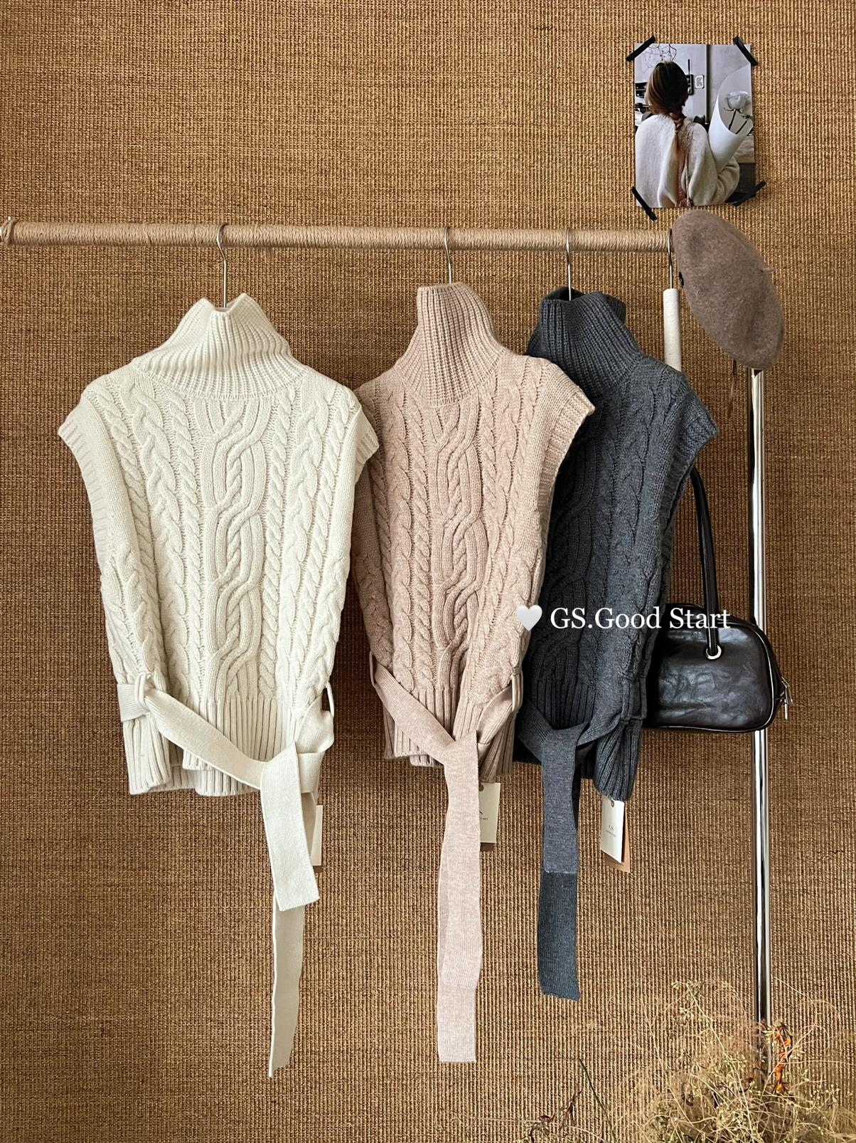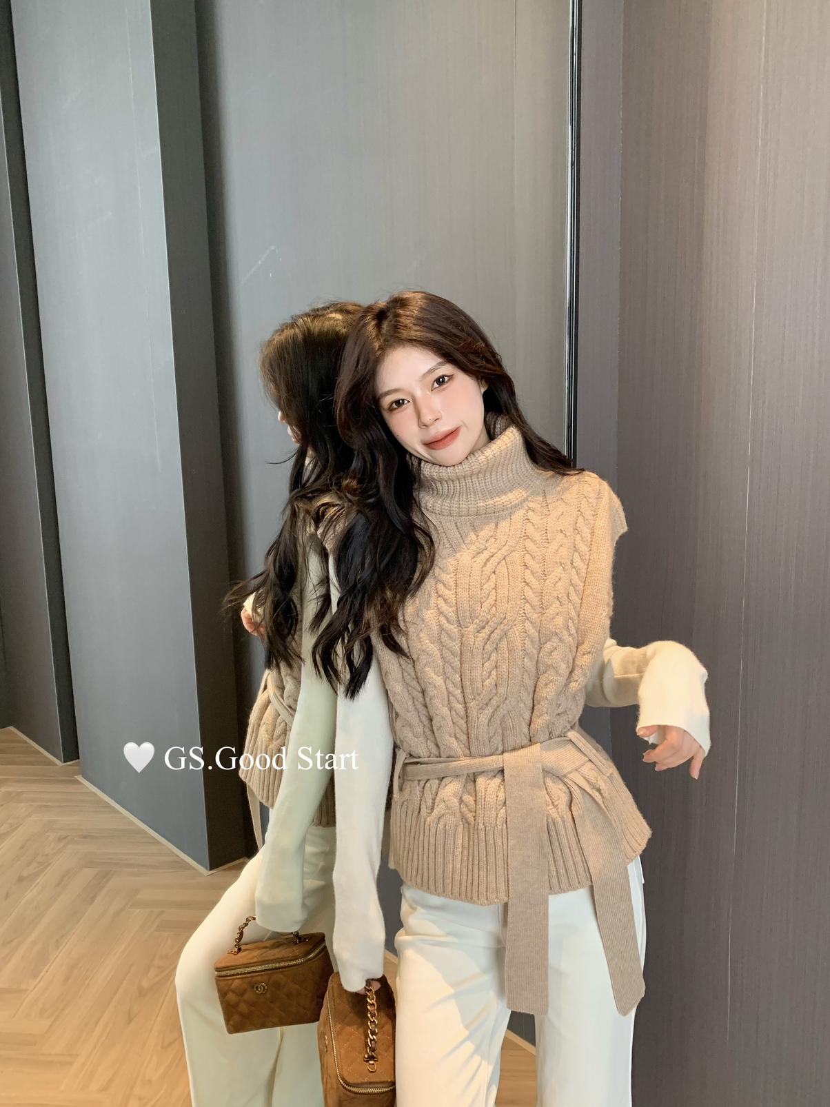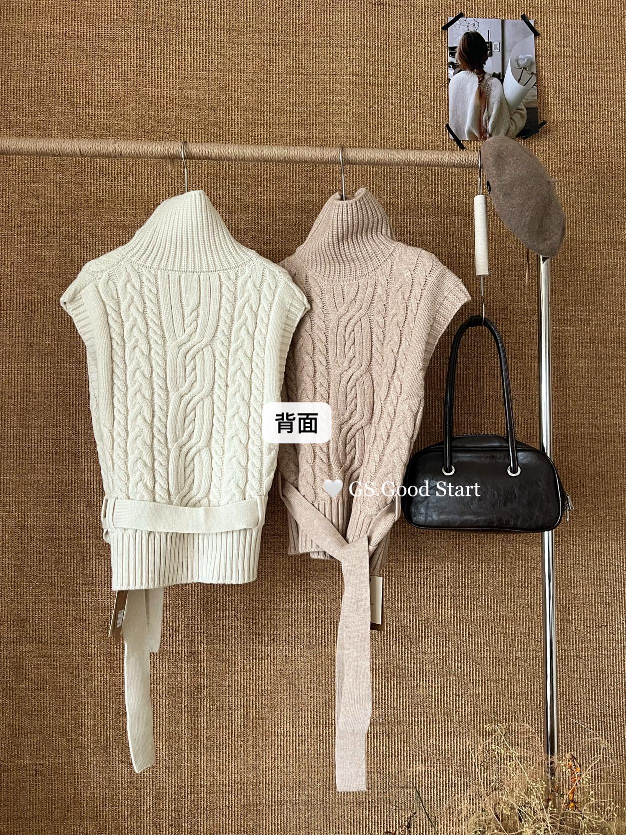 【C7941】自帶復古慵懶感~很藏肉*自留強推!秋冬氣質高智感高領麻花針織背心(配可拆卸綁帶)