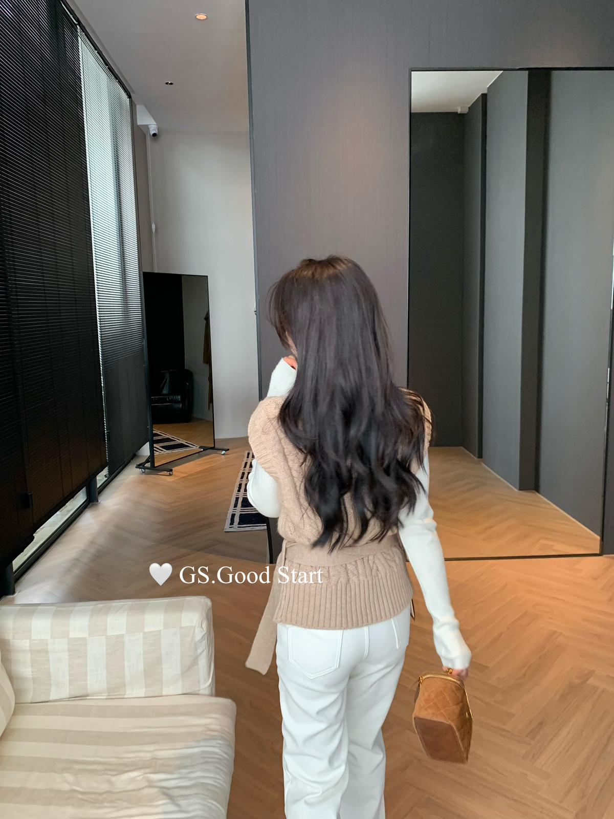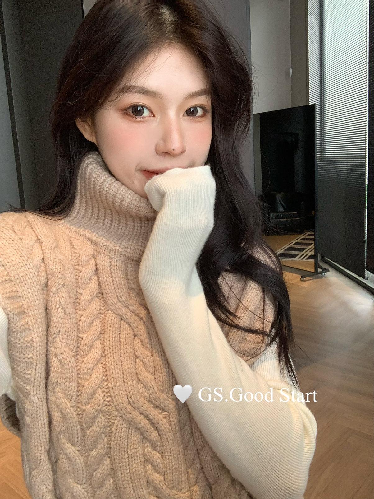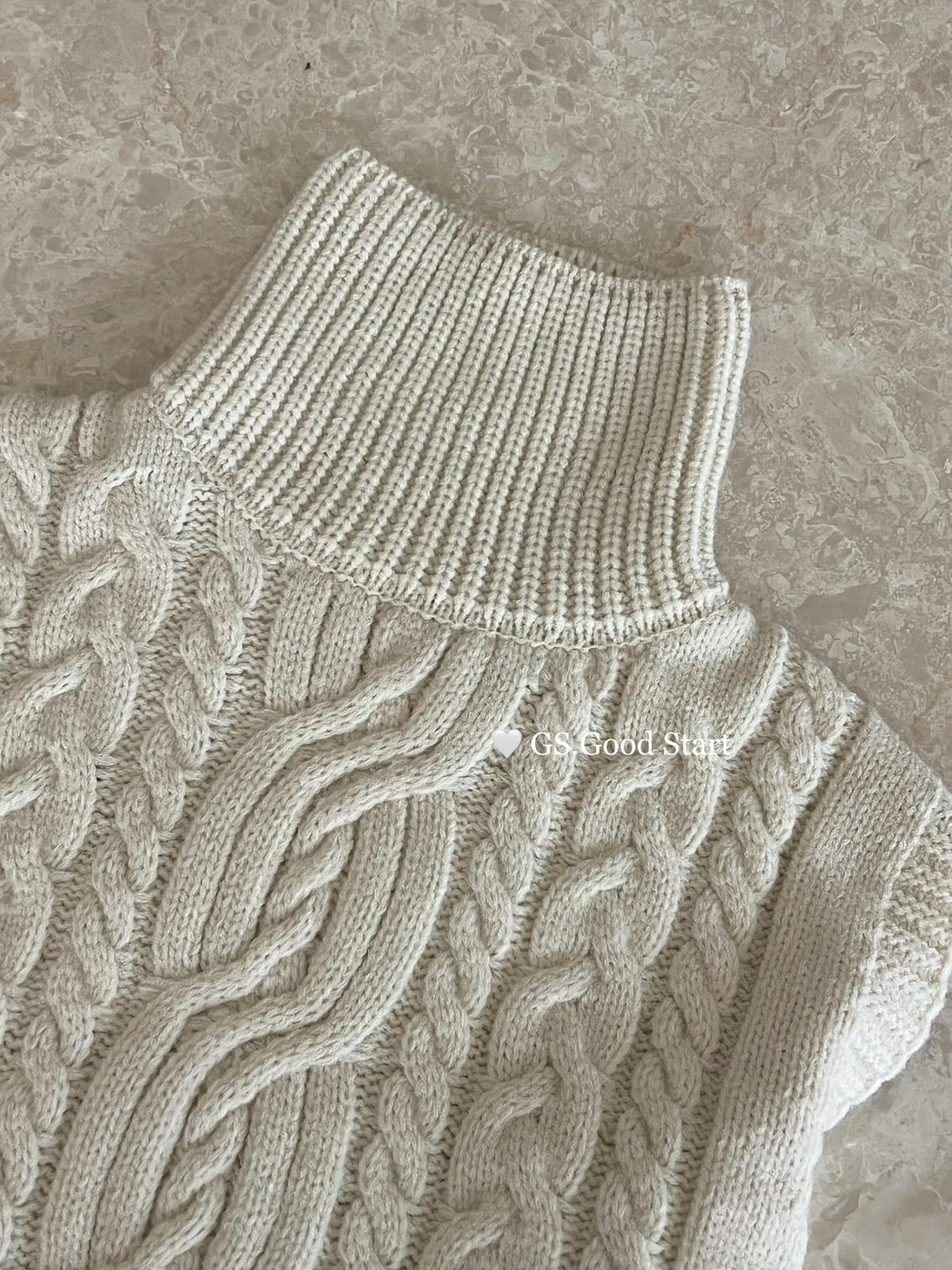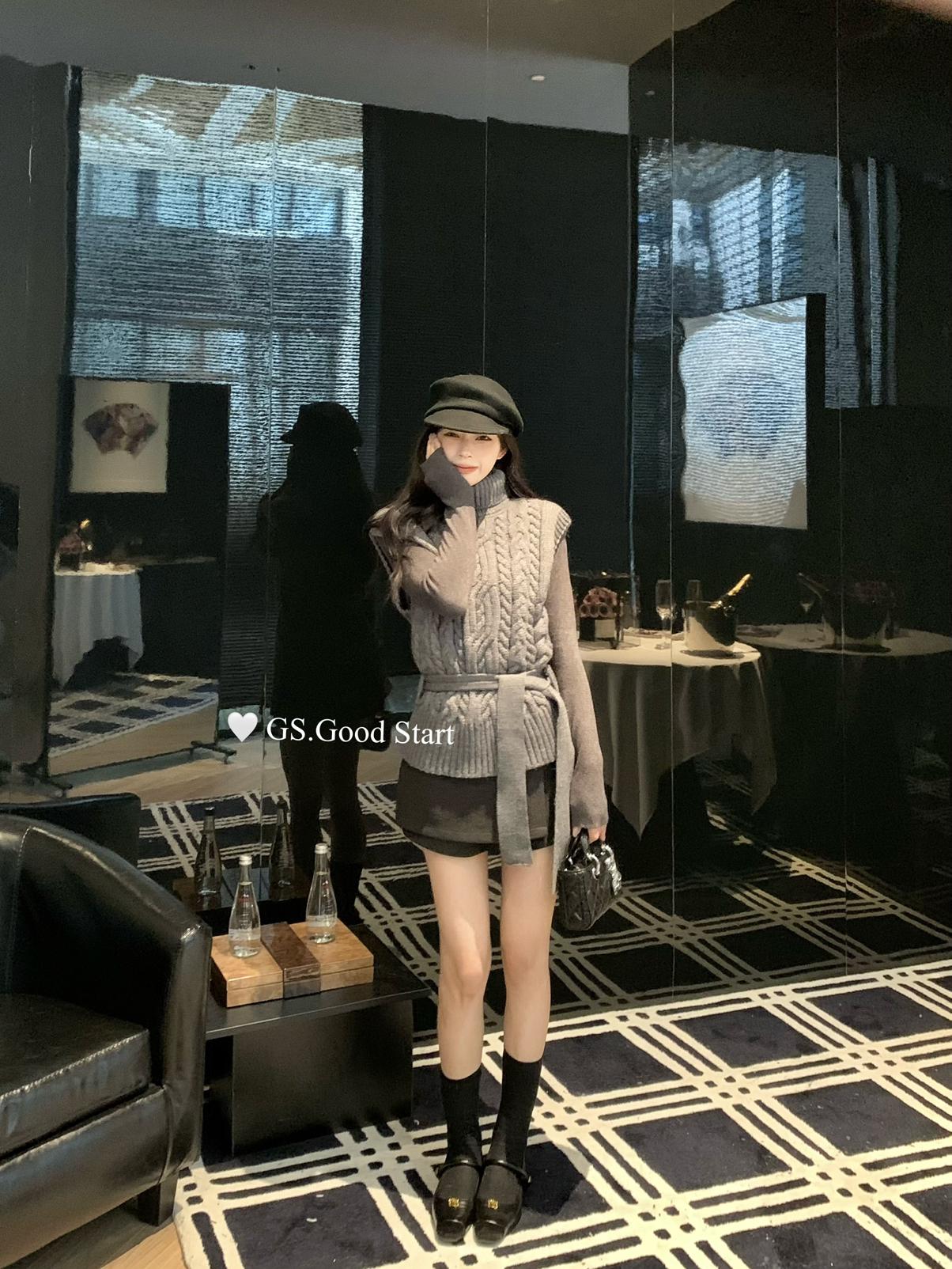 【C7941】自帶復古慵懶感~很藏肉*自留強推!秋冬氣質高智感高領麻花針織背心(配可拆卸綁帶)