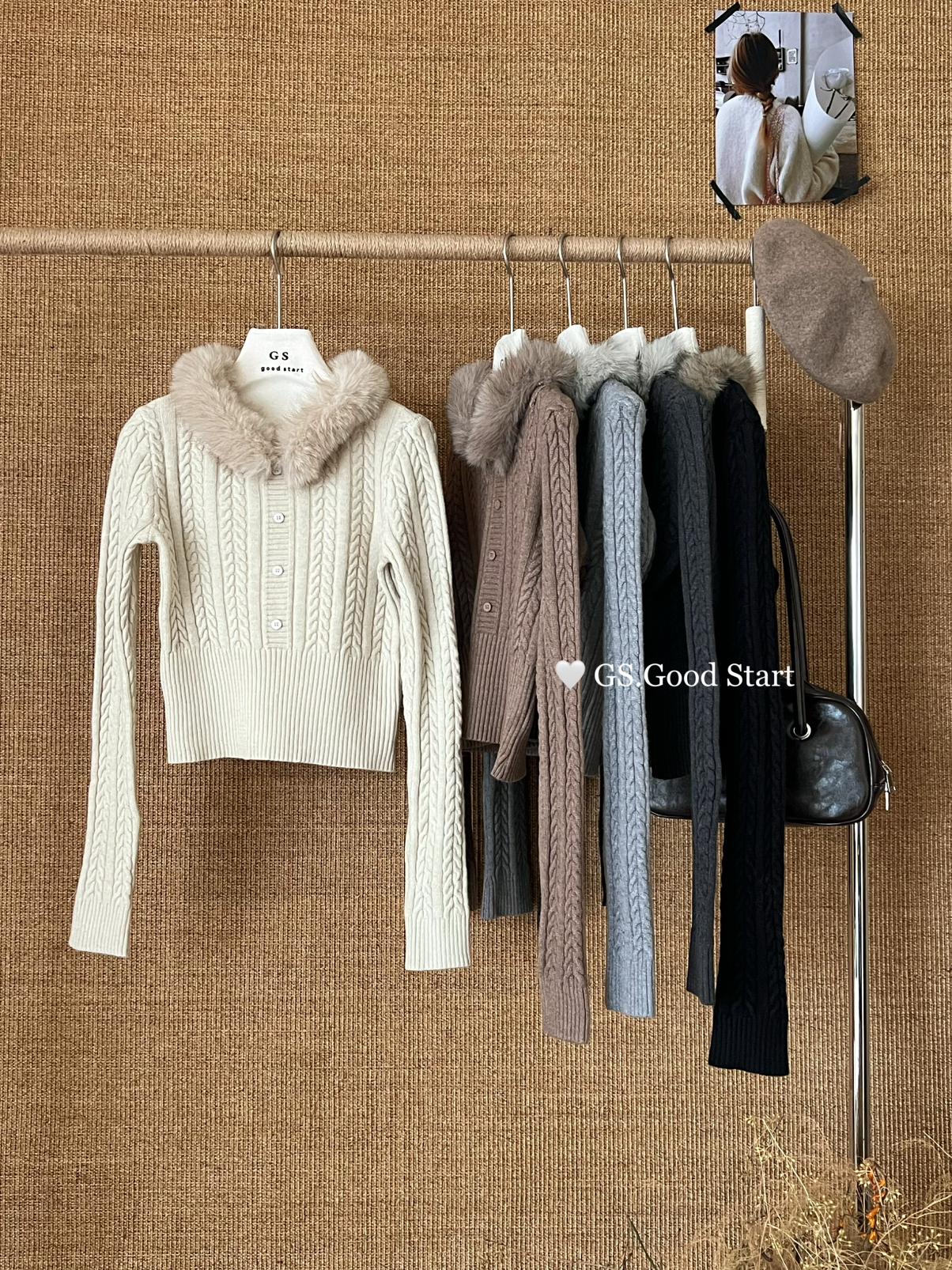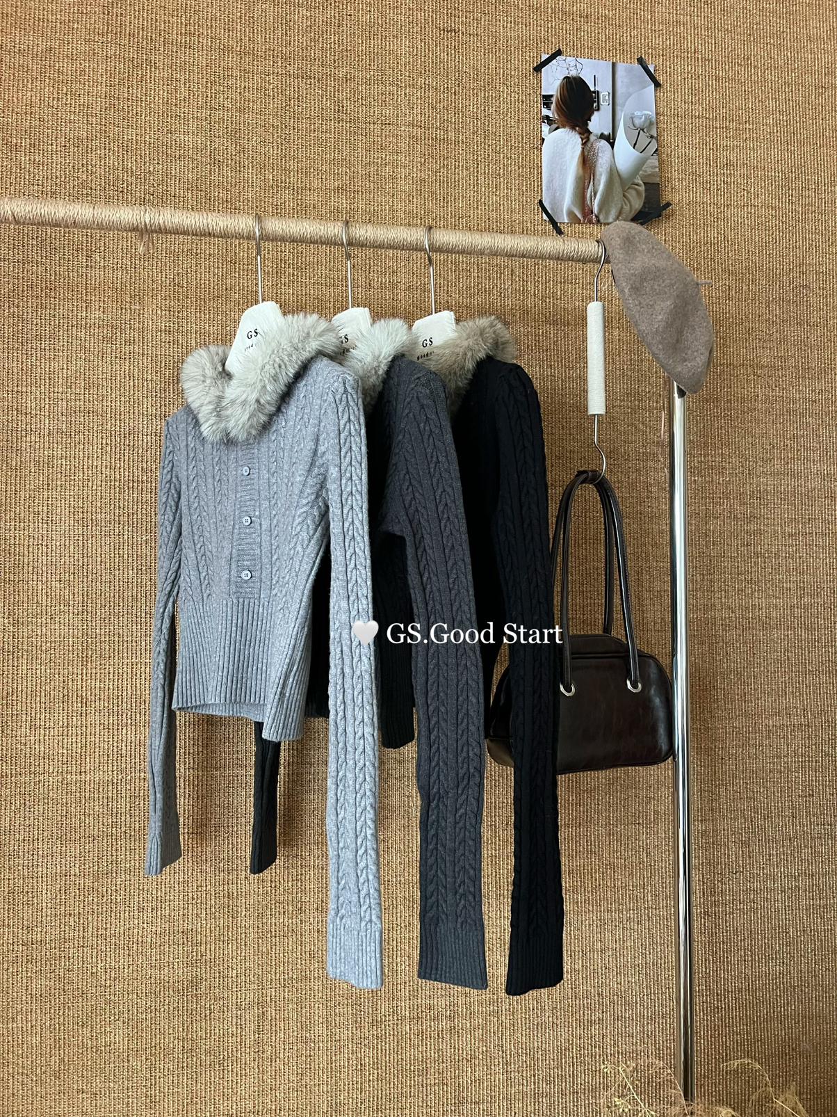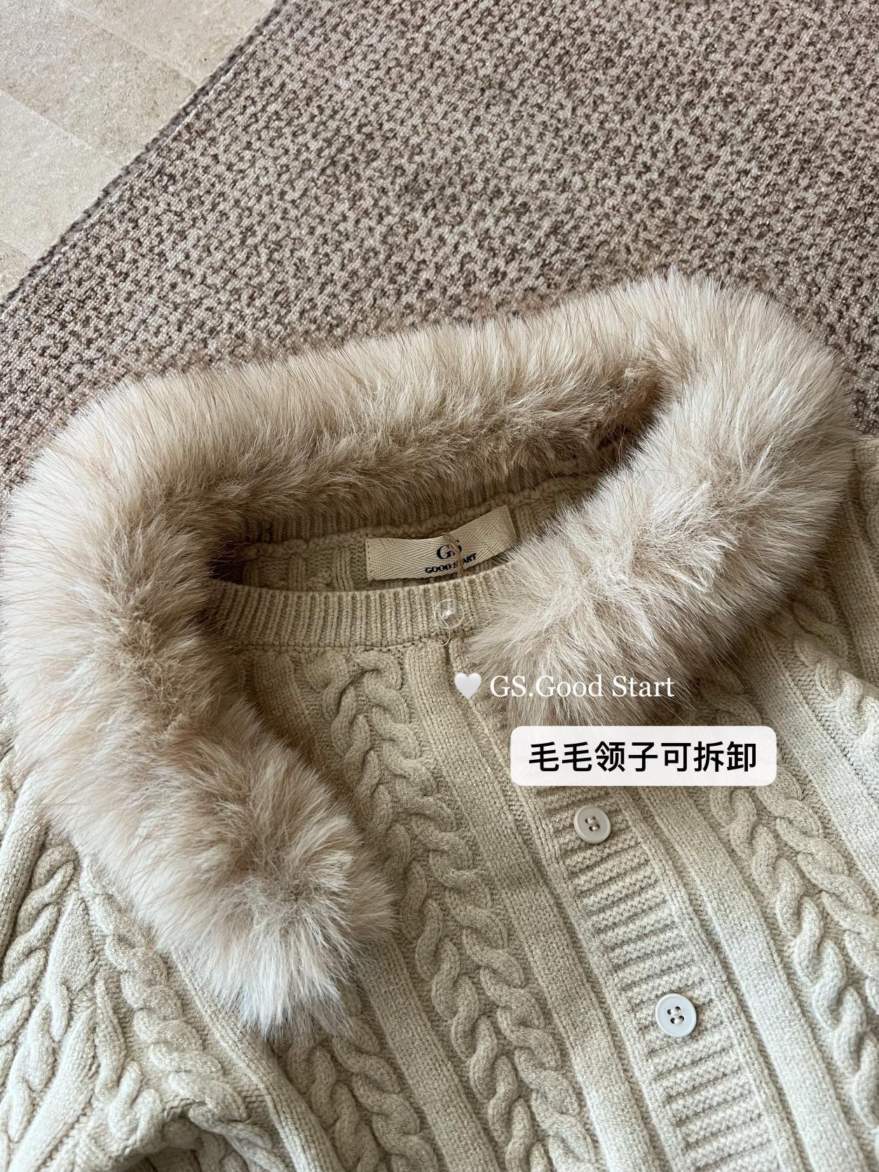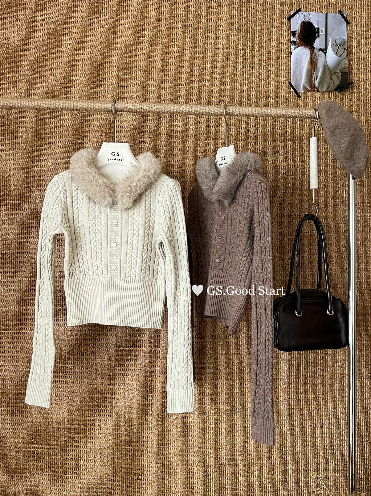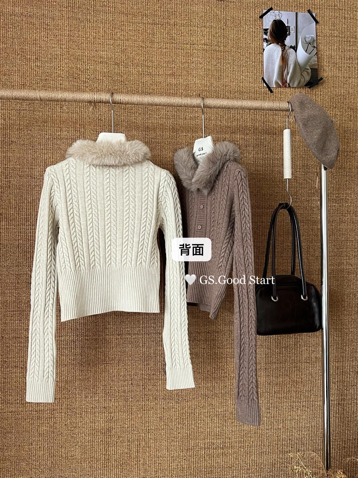 【C7942】被問爆啦~高顏時髦選手*全店自留!秋冬復古純欲毛毛領麻花針織小衫(配可拆卸毛領)