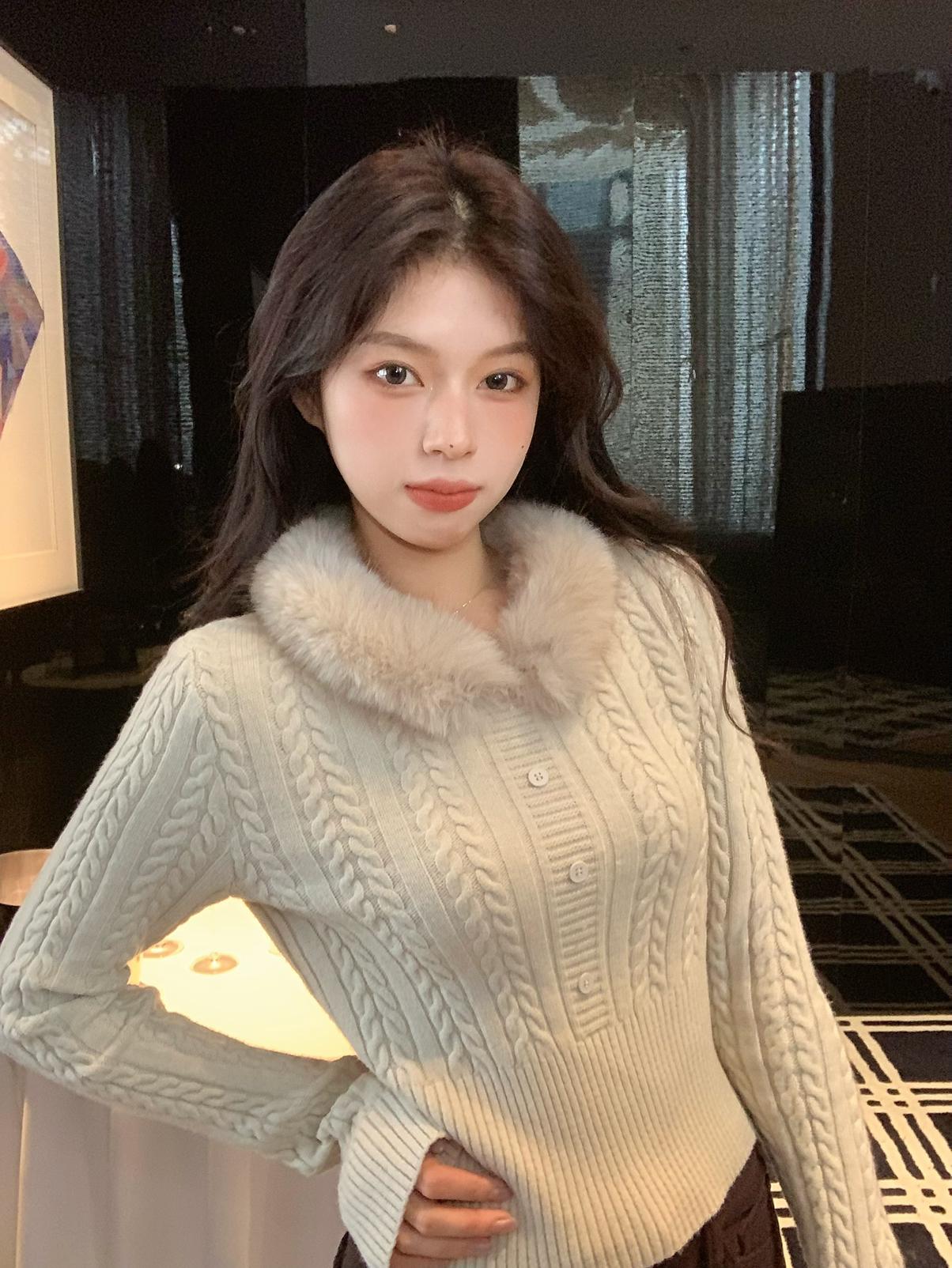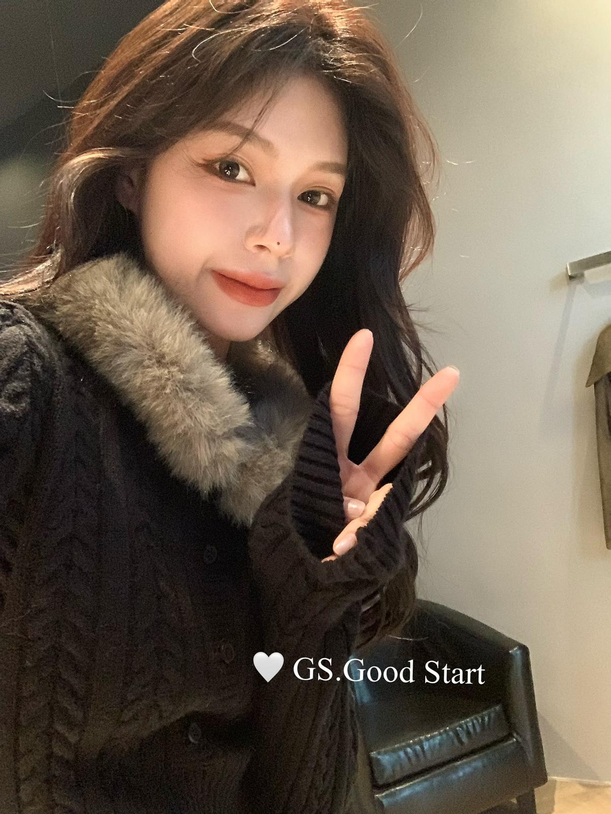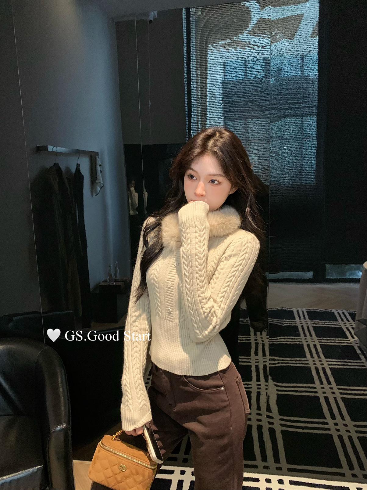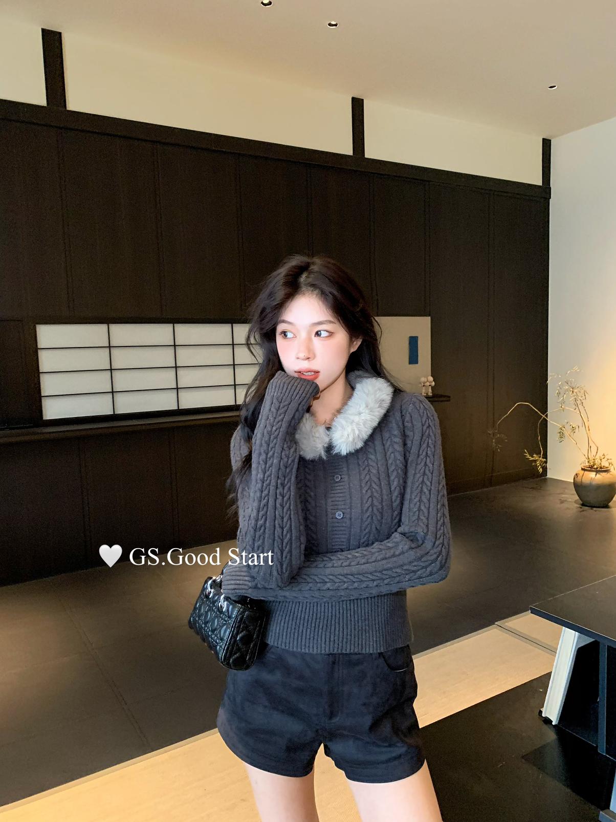 【C7942】被問爆啦~高顏時髦選手*全店自留!秋冬復古純欲毛毛領麻花針織小衫(配可拆卸毛領)