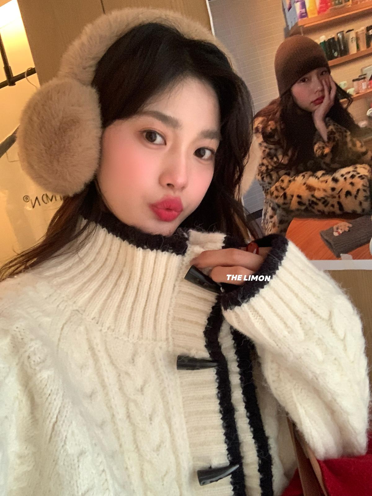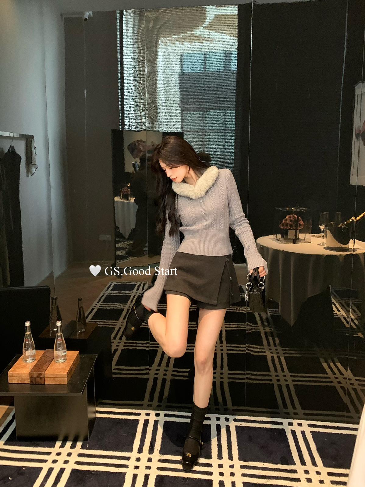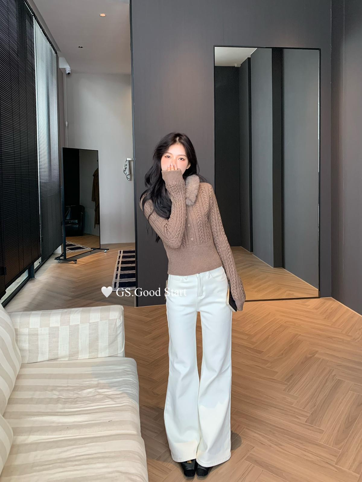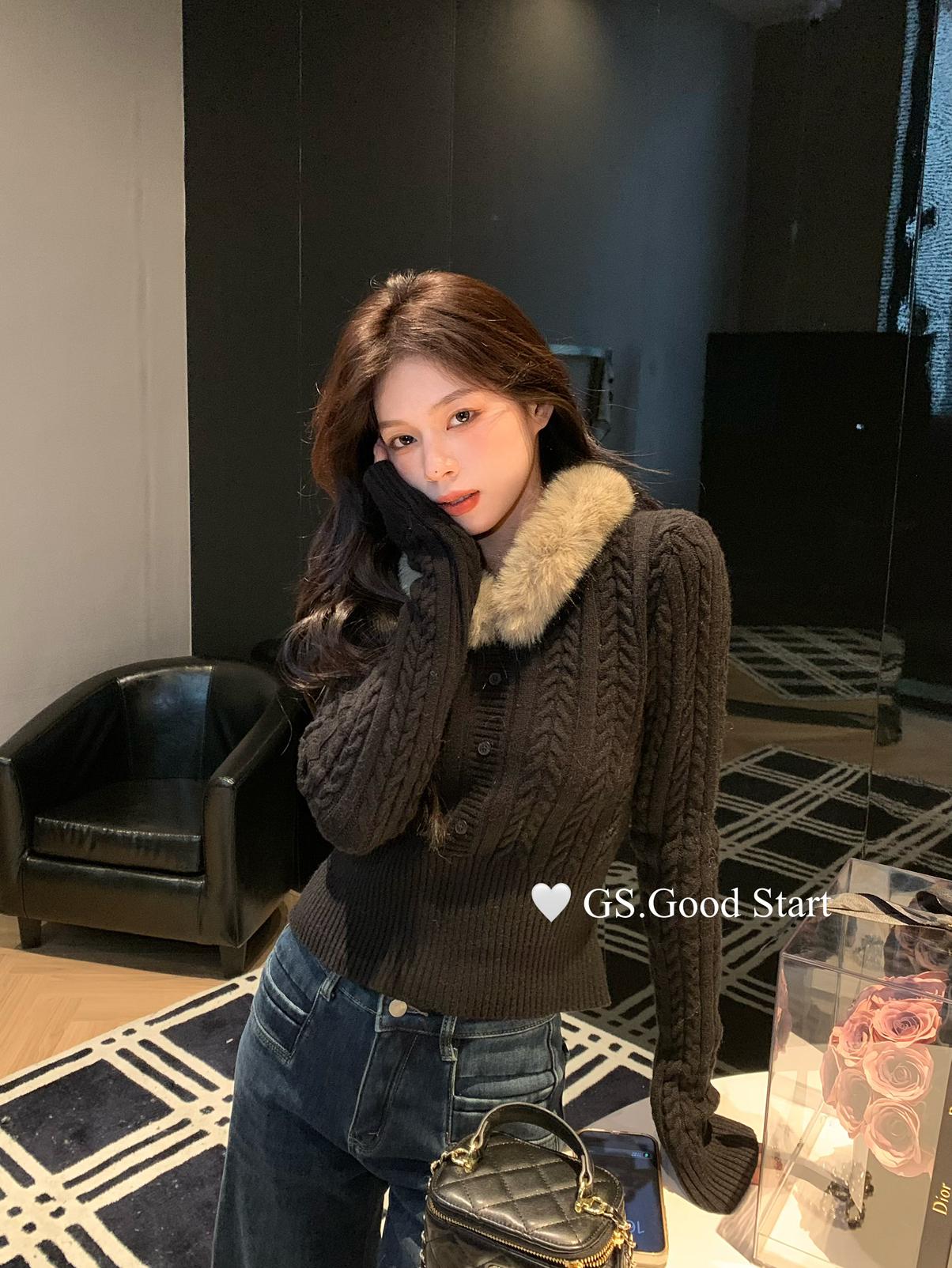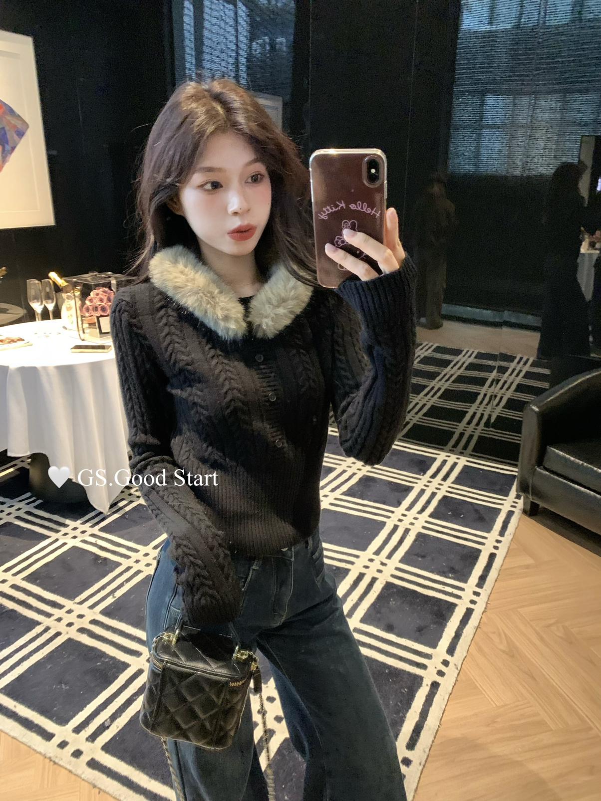 【C7942】被問爆啦~高顏時髦選手*全店自留!秋冬復古純欲毛毛領麻花針織小衫(配可拆卸毛領)