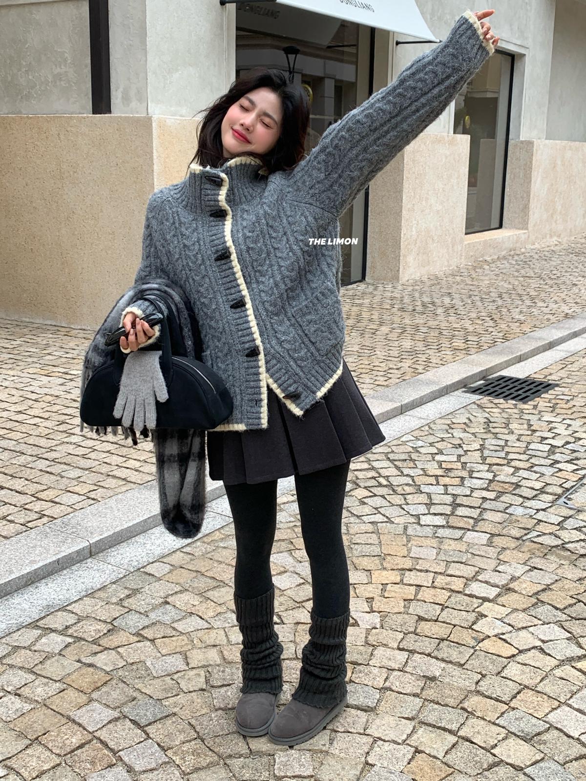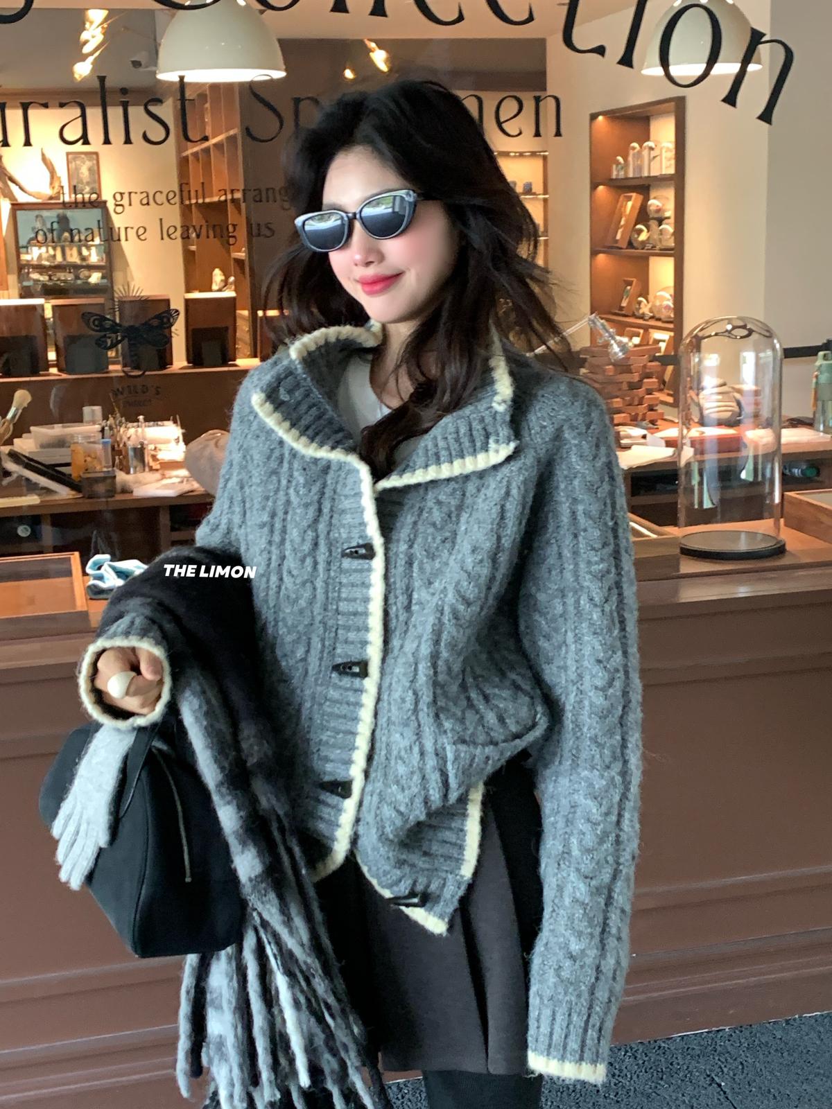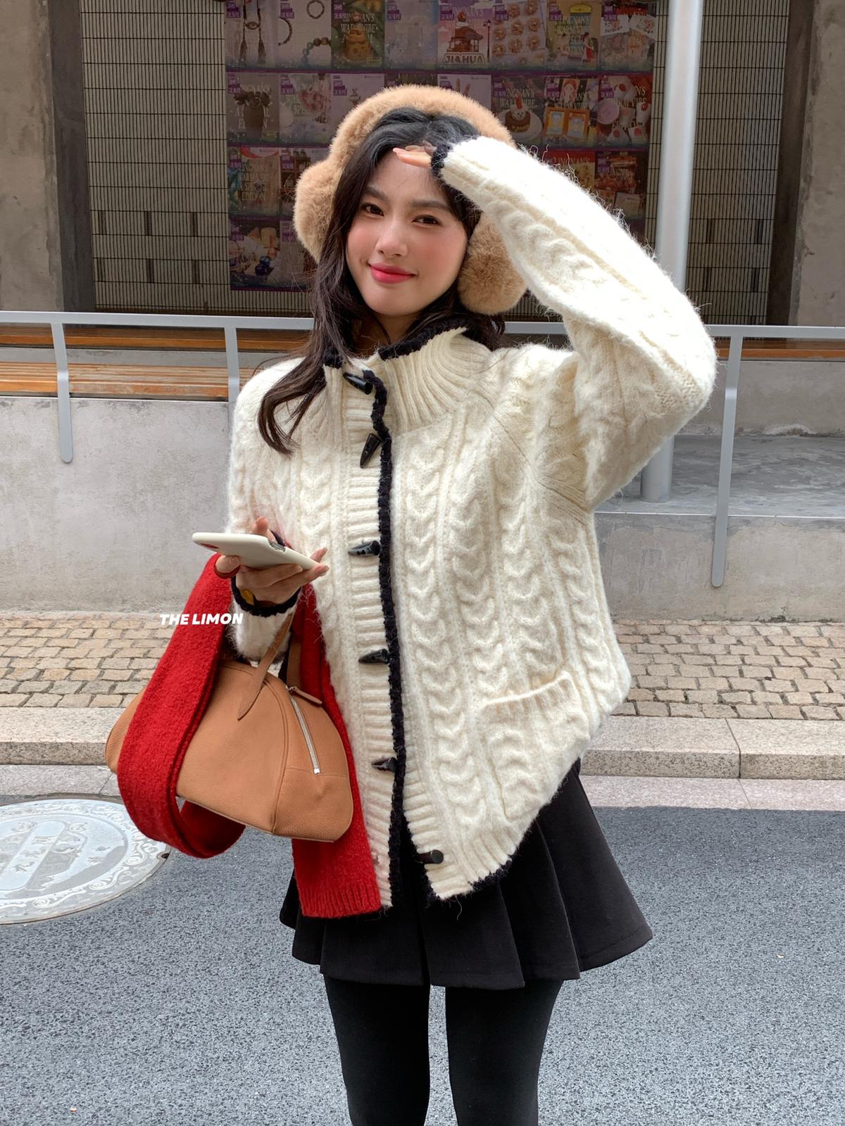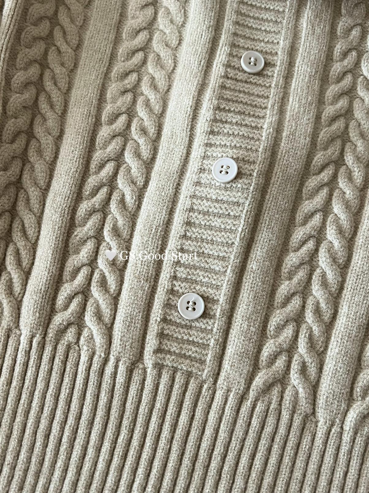 【C8006】重工質感!復古麻花牛角扣開衫保暖毛衣(含10%羊毛)