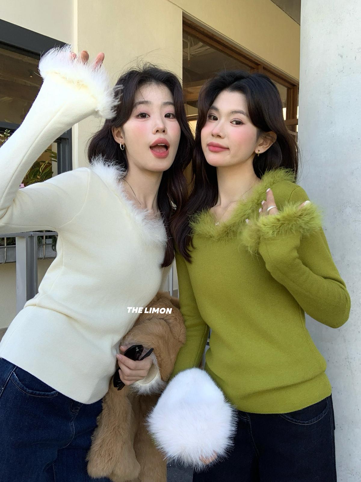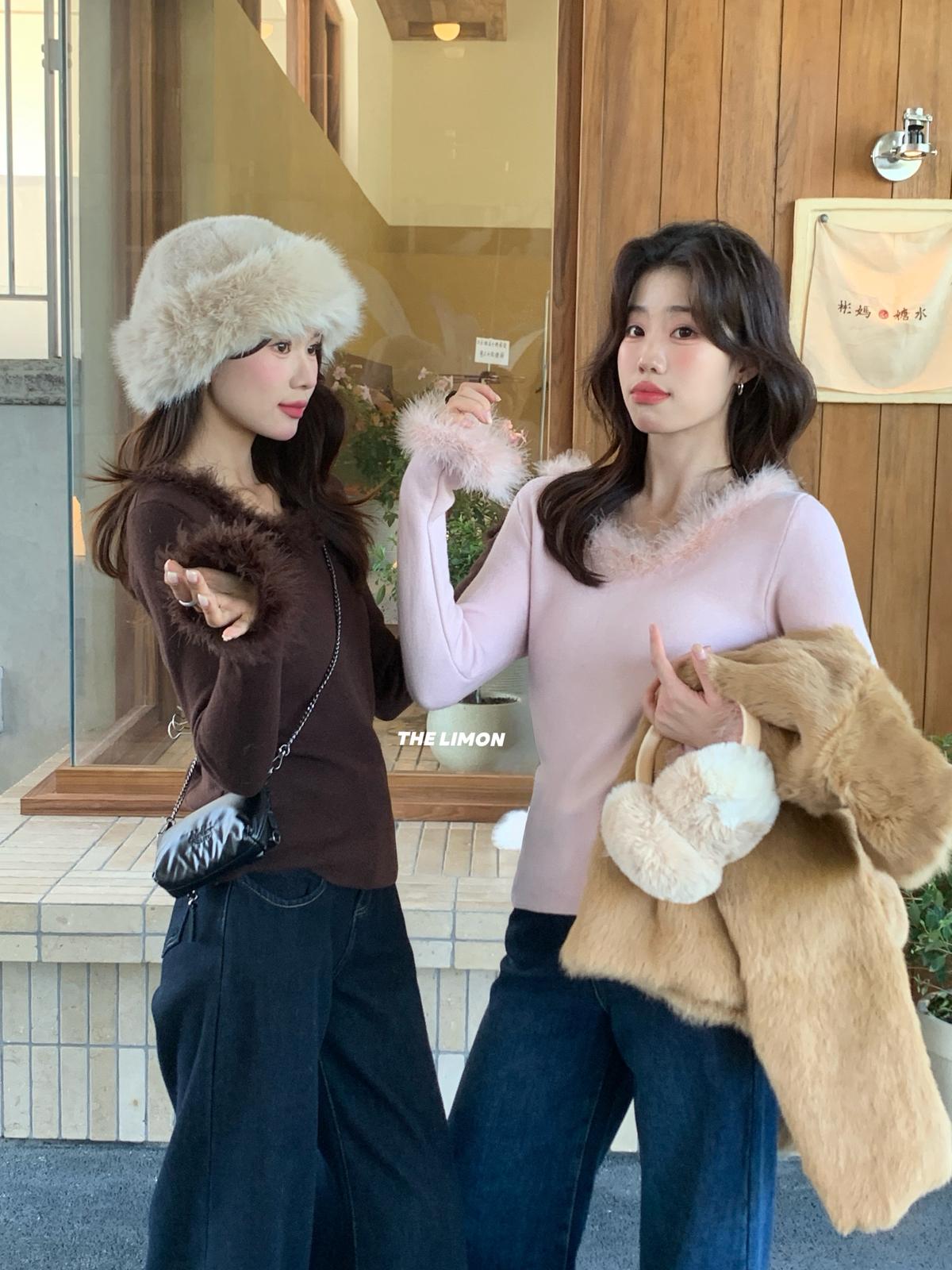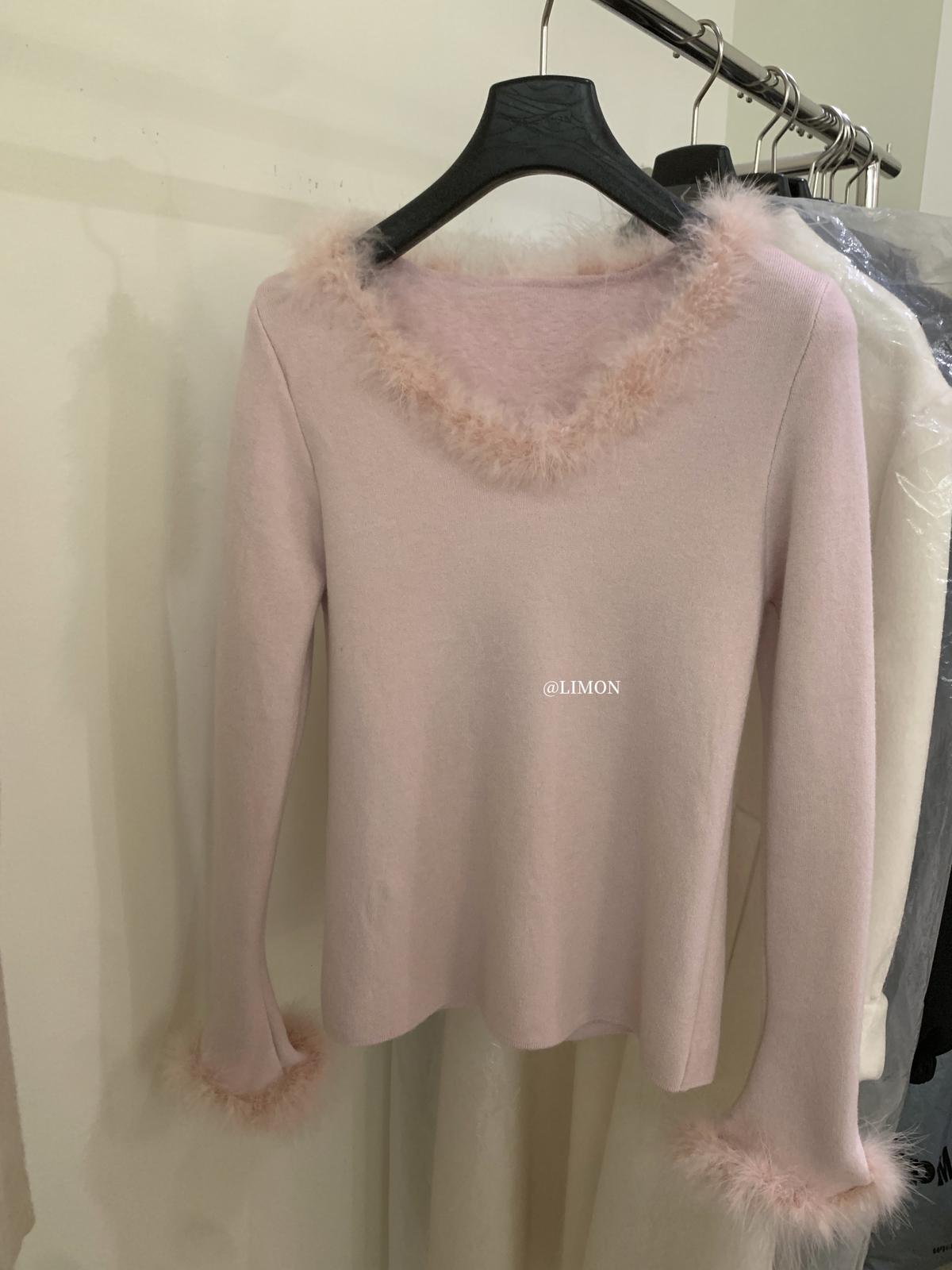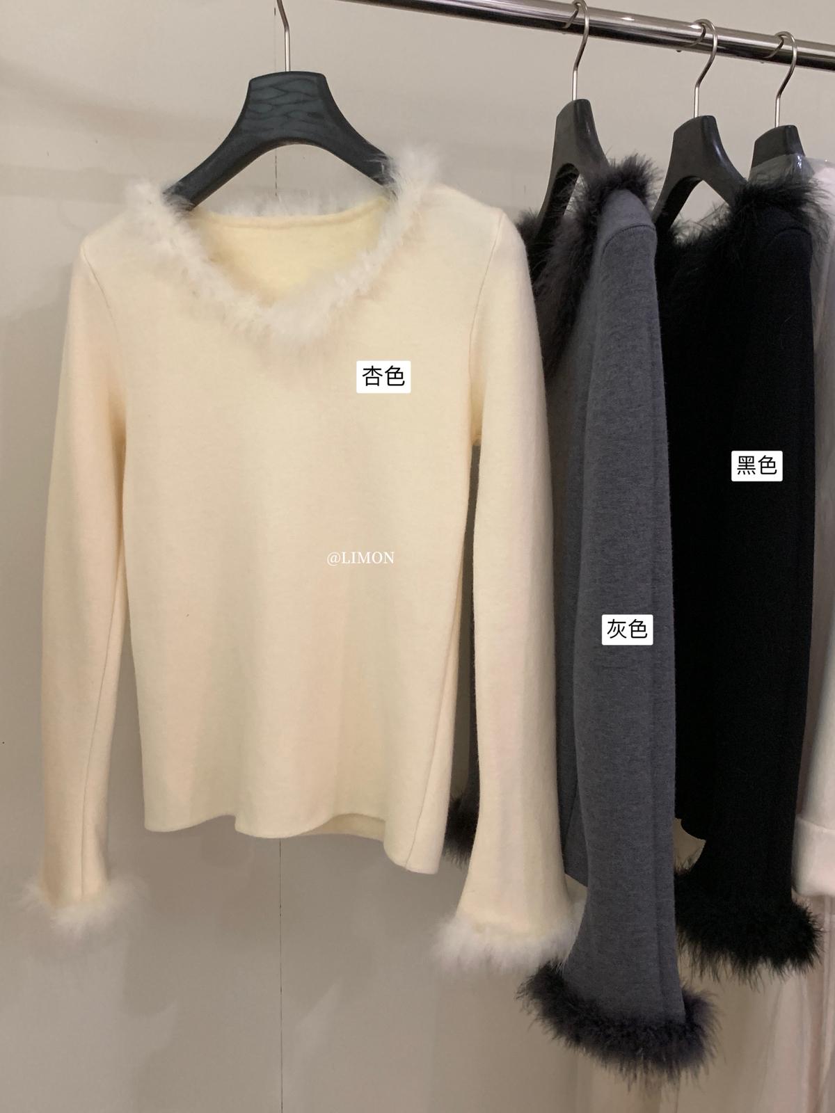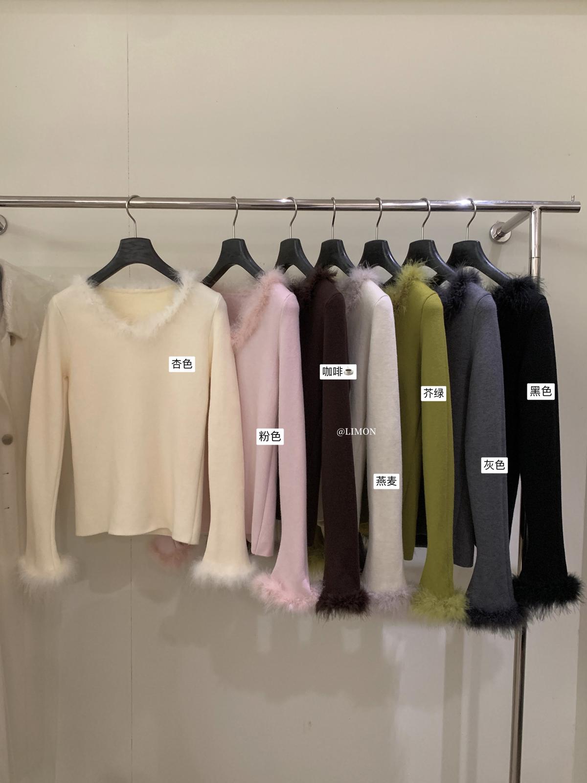 【C7950】法式氣質優雅毛毛拼接打底衫針織衫