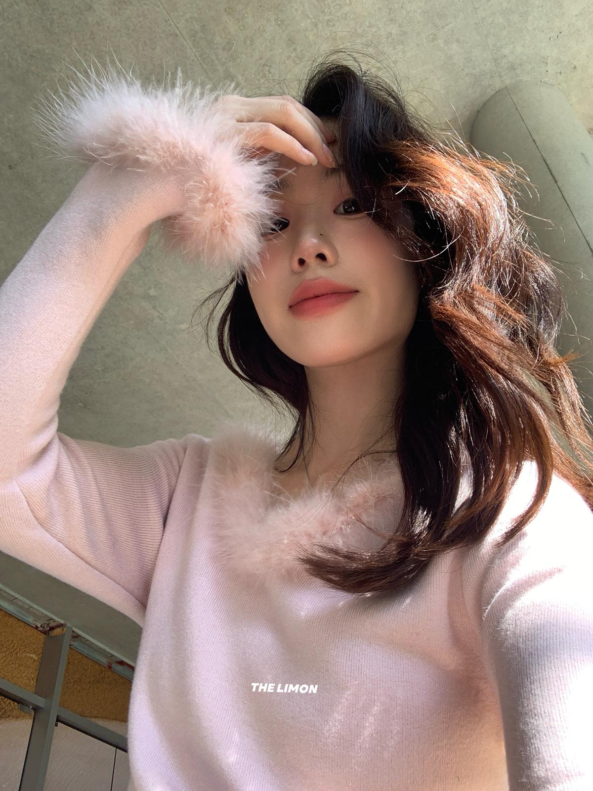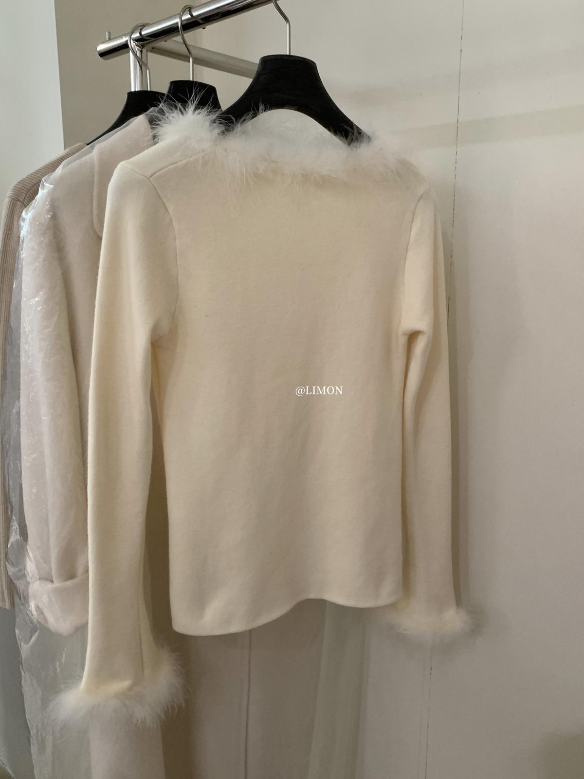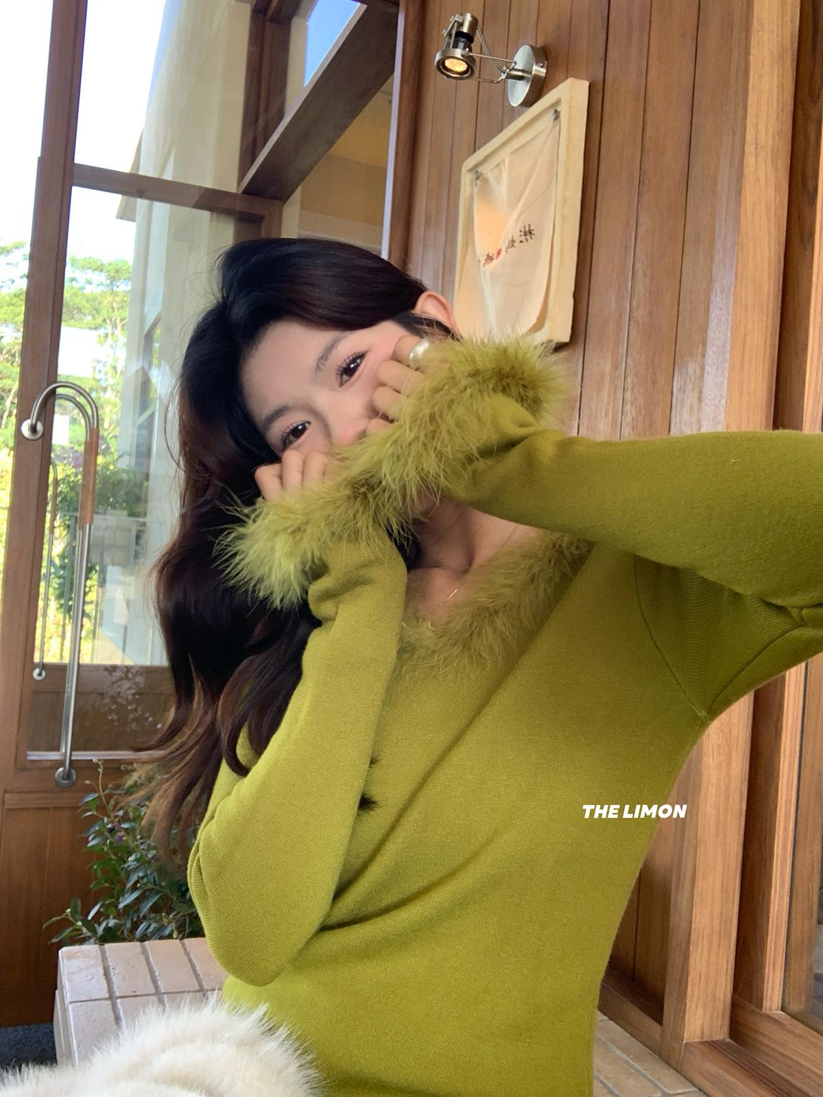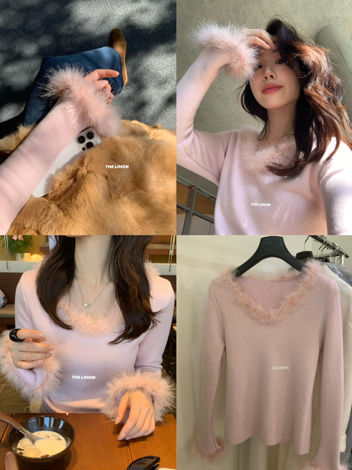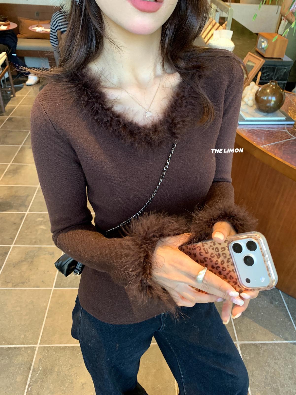 【C7950】法式氣質優雅毛毛拼接打底衫針織衫