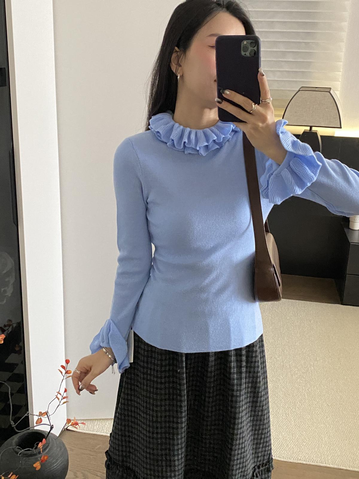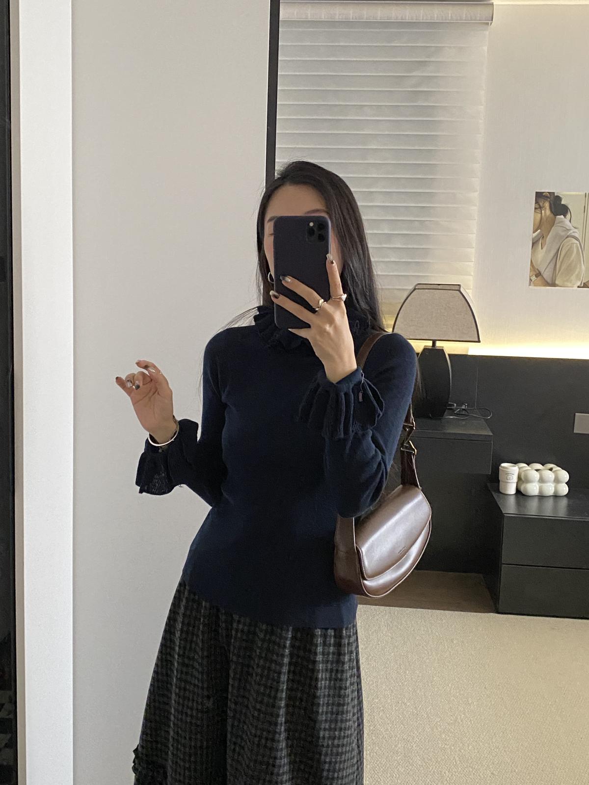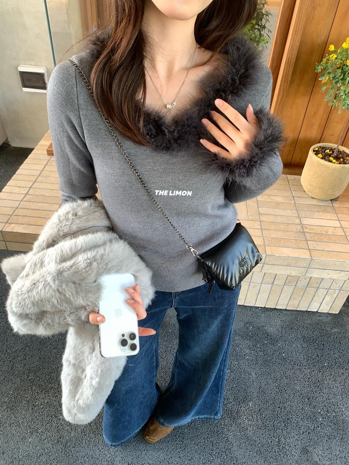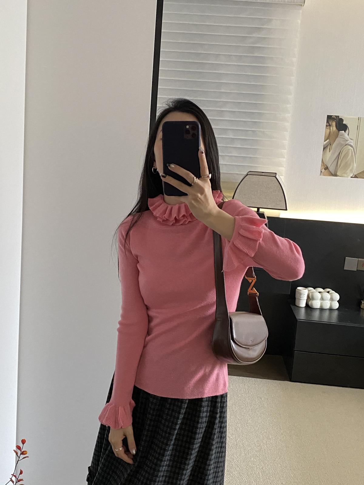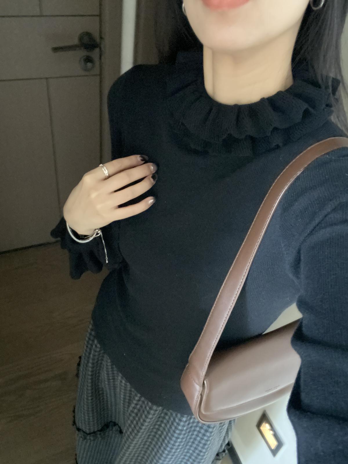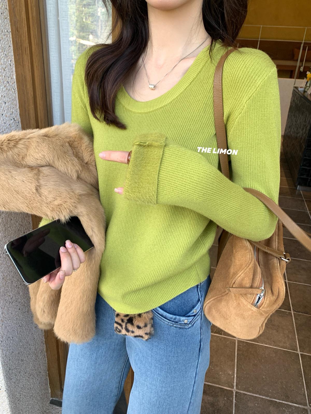 【C7950】法式氣質優雅毛毛拼接打底衫針織衫