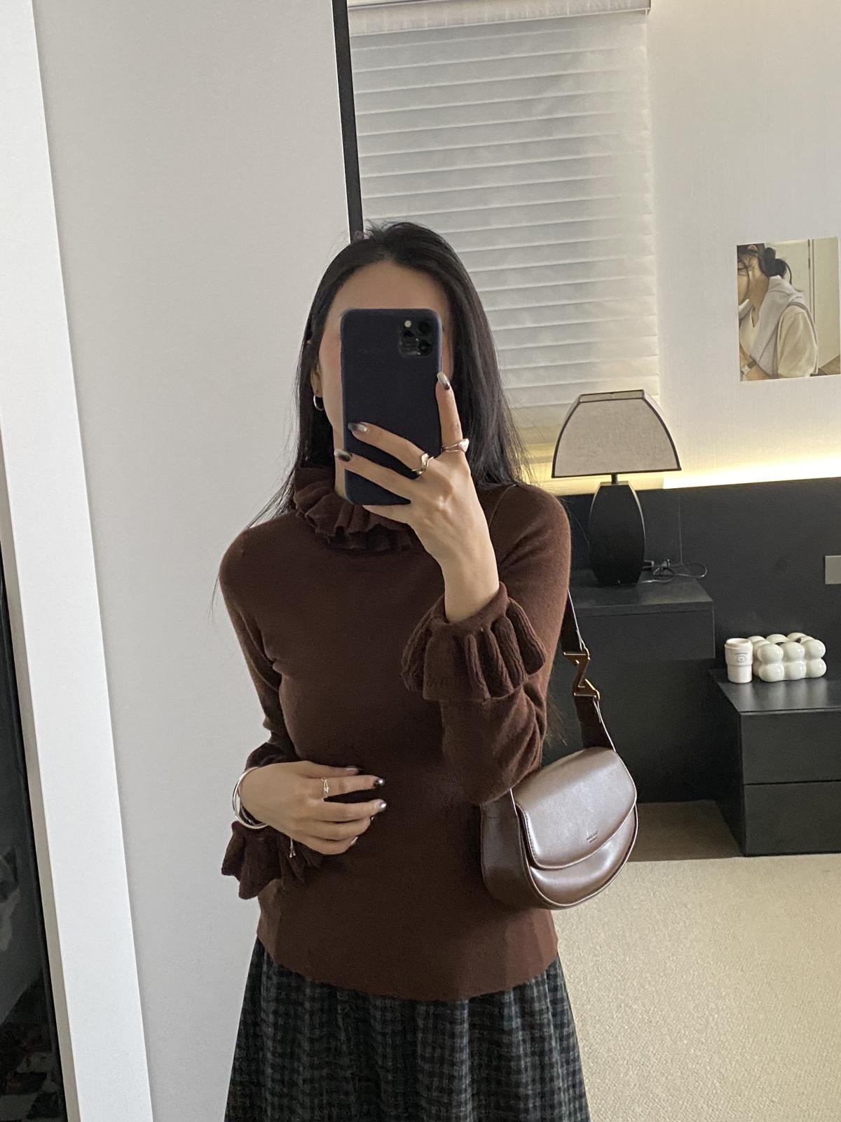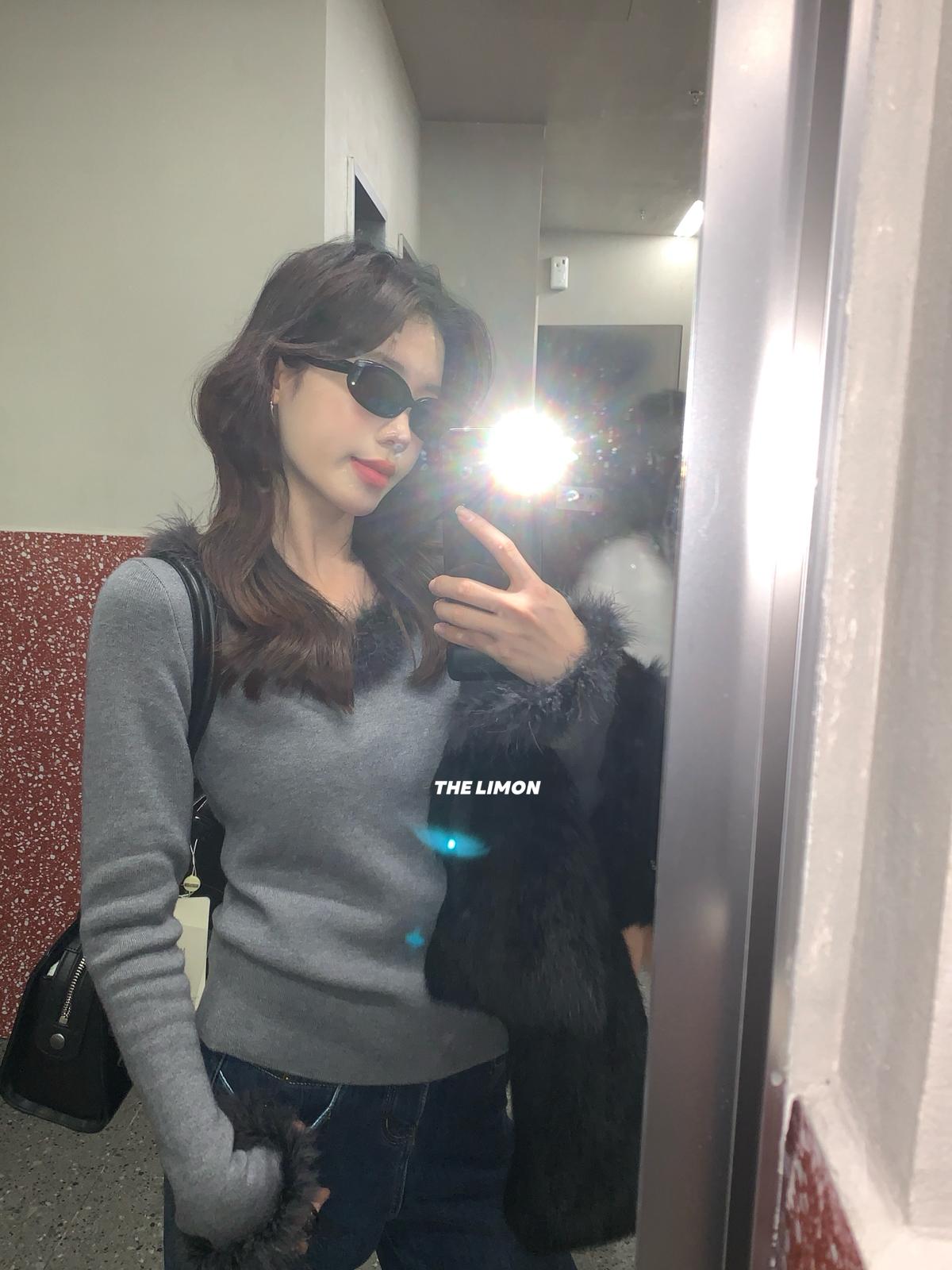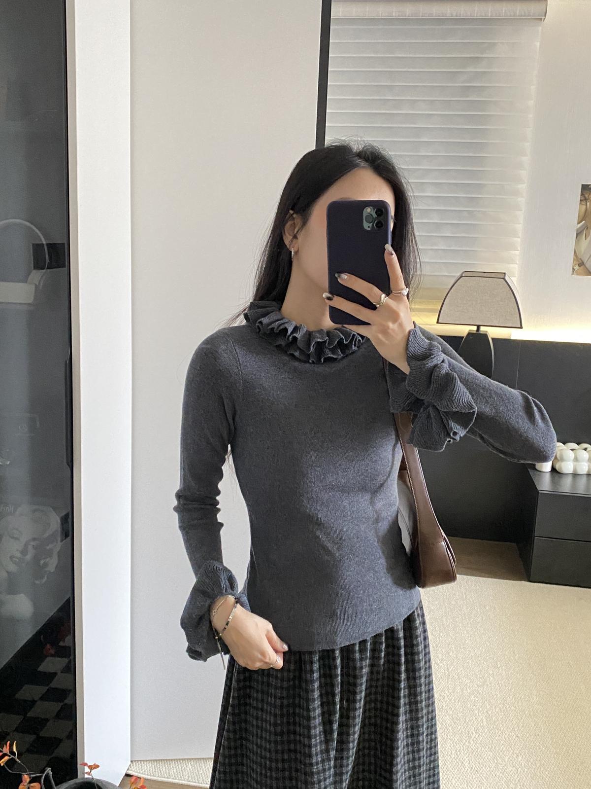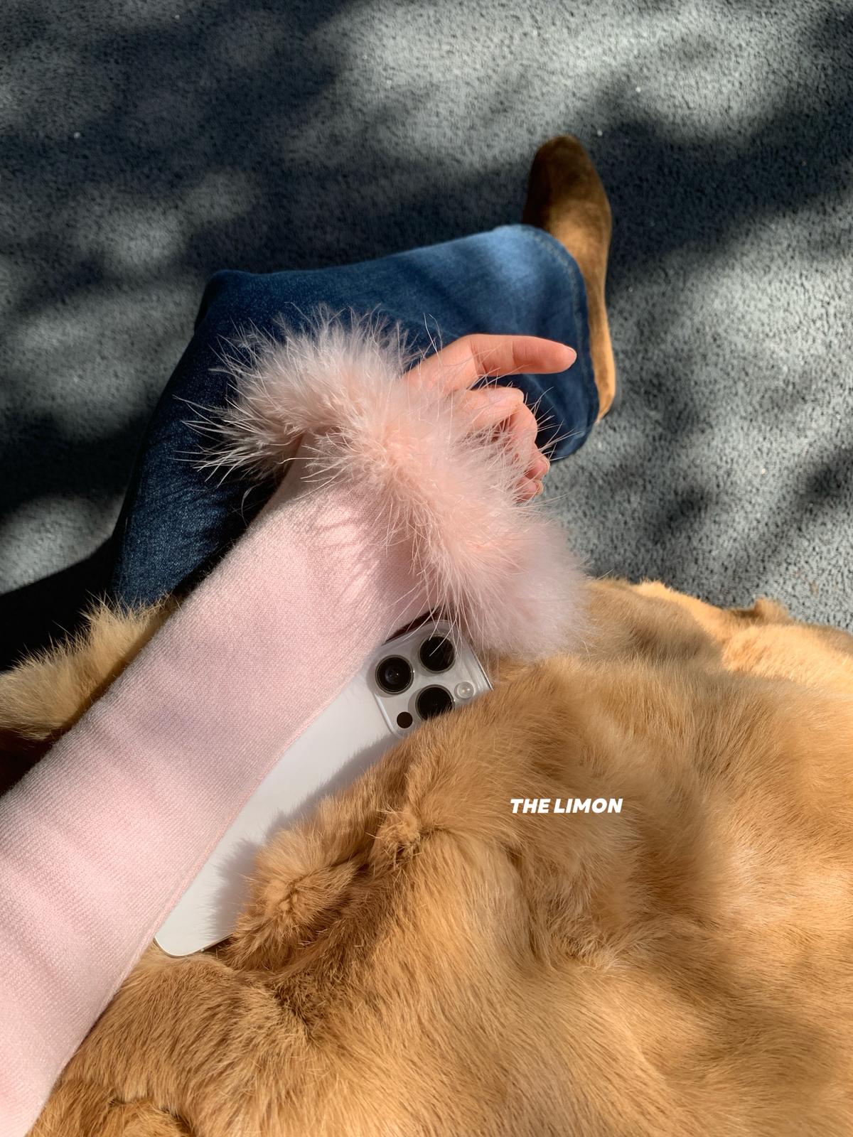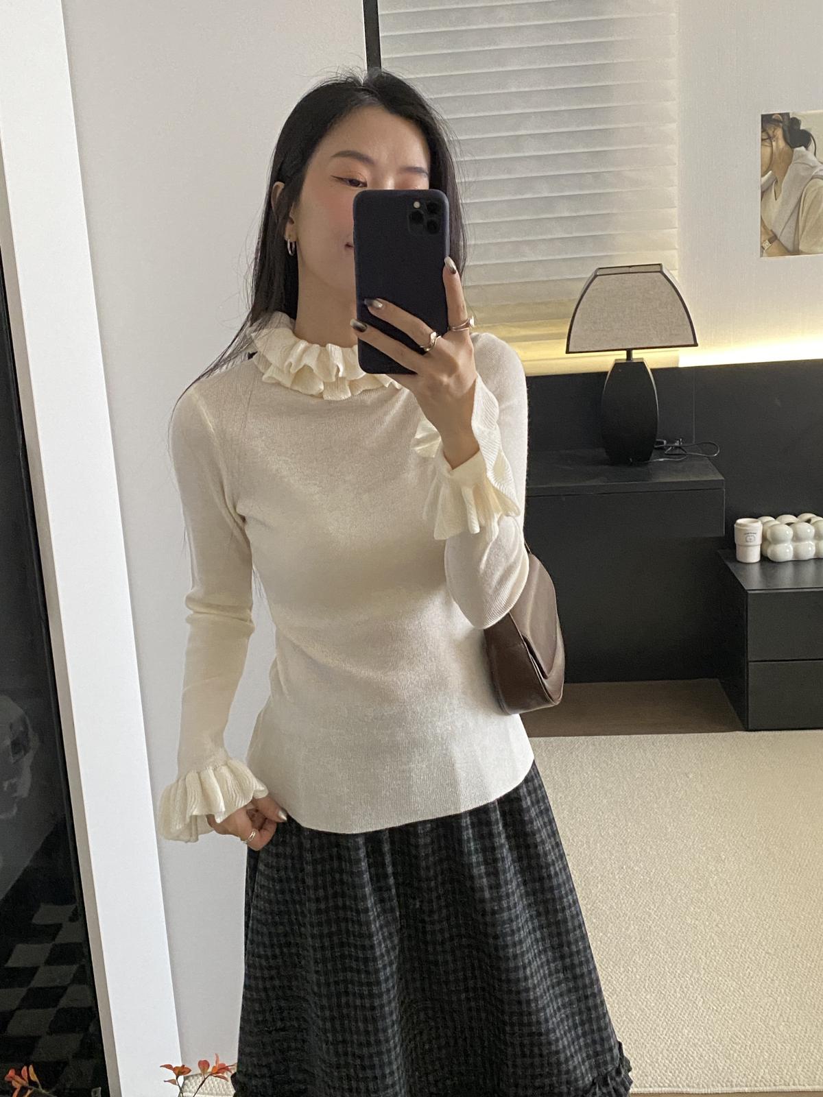 【C7950】法式氣質優雅毛毛拼接打底衫針織衫