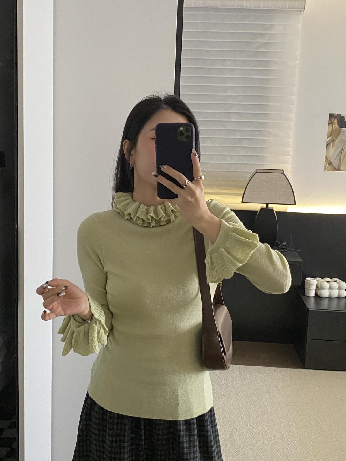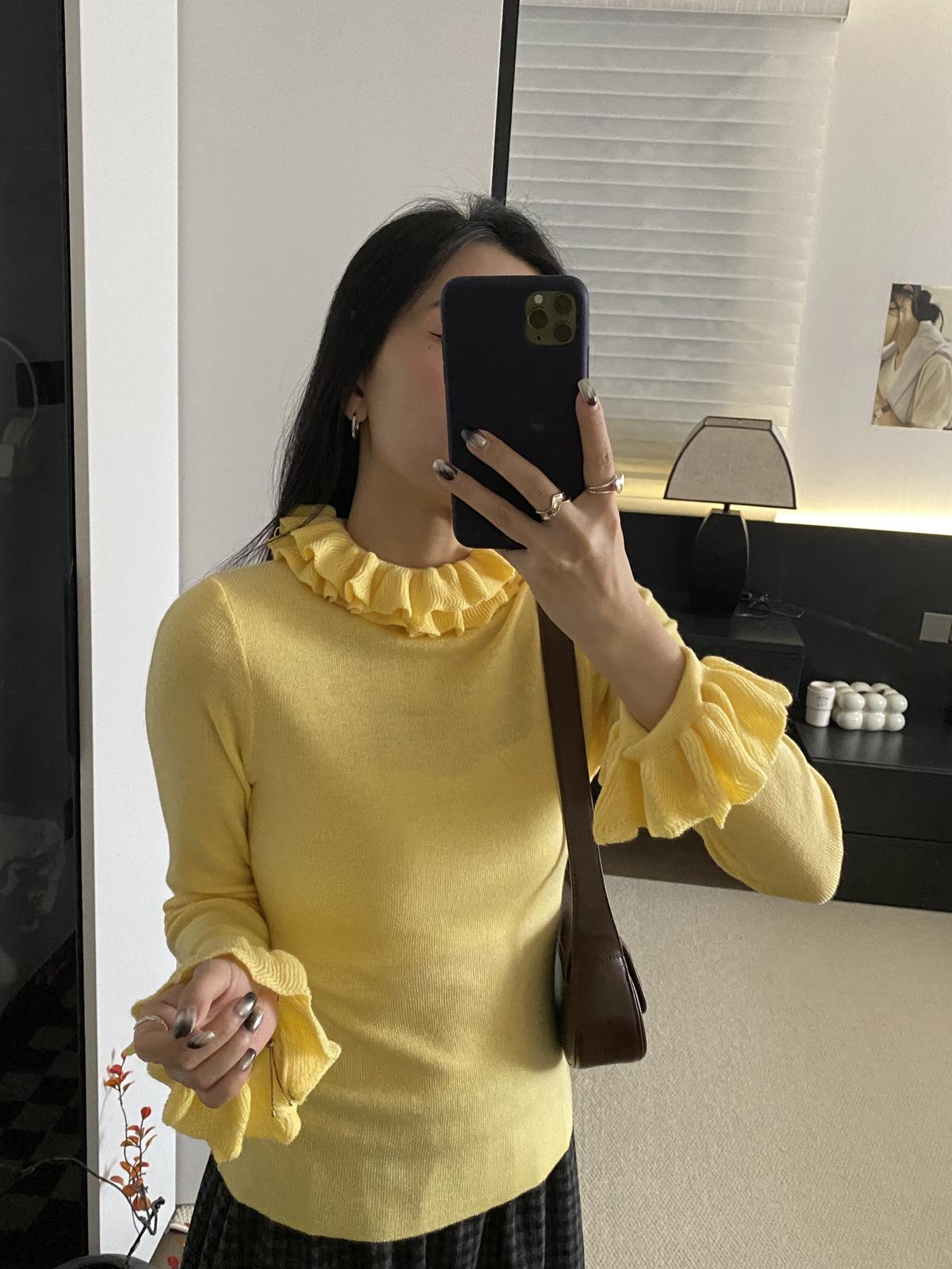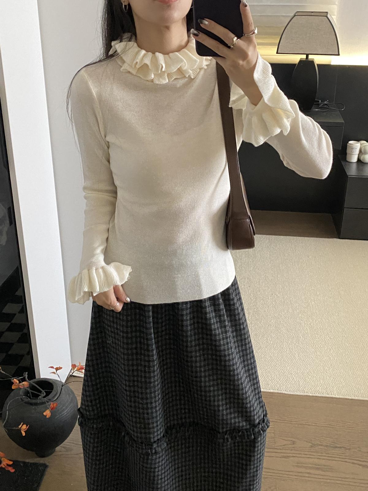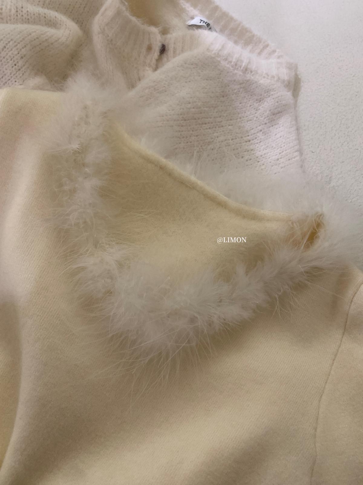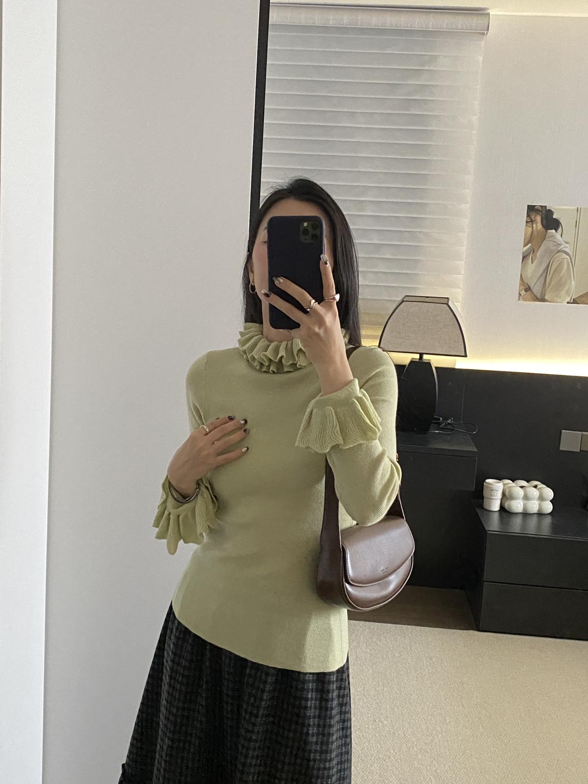 【C7950】法式氣質優雅毛毛拼接打底衫針織衫