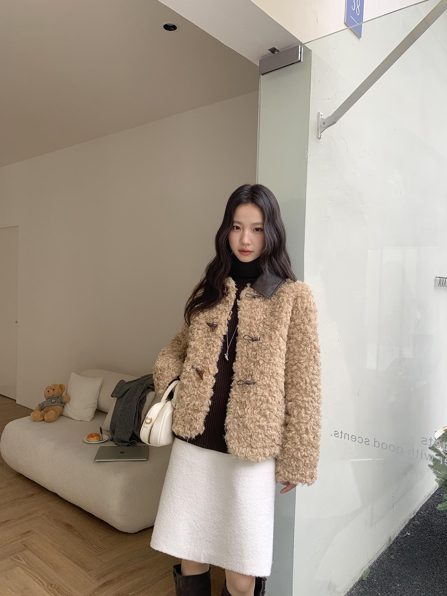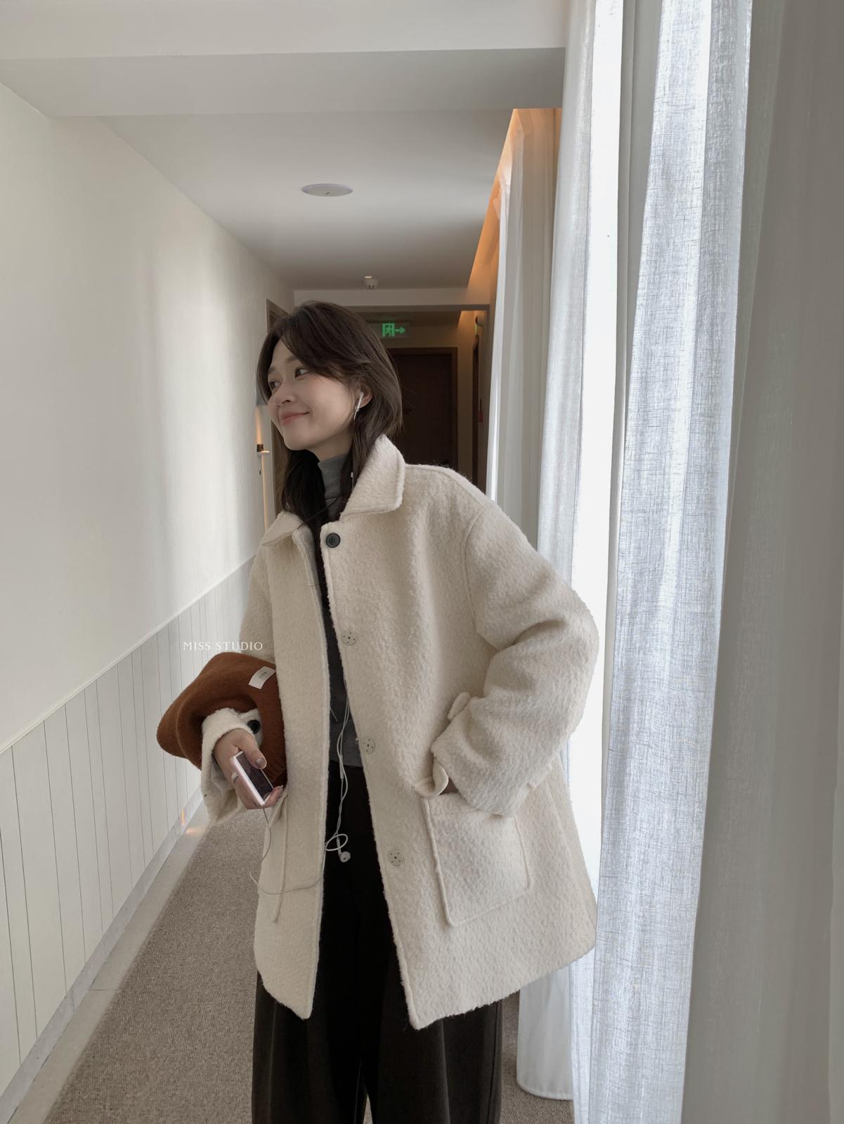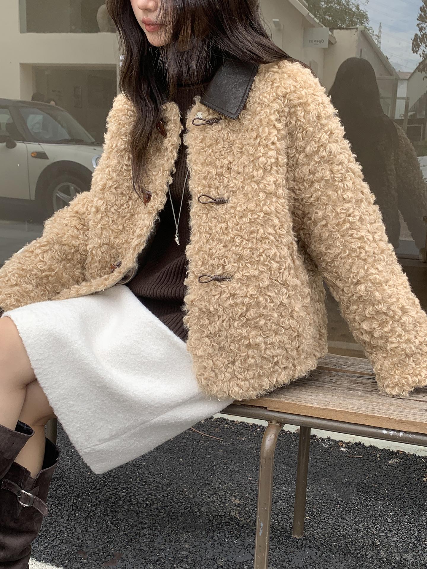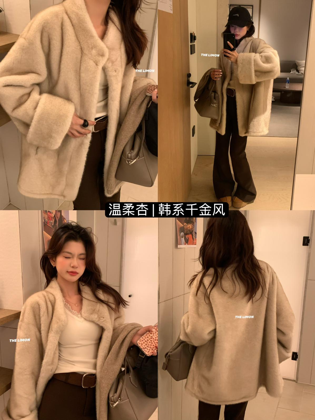 【C7961】冬上新!法式復古可拆皮領仿羊羔羊毛外套(可拆卸皮領)