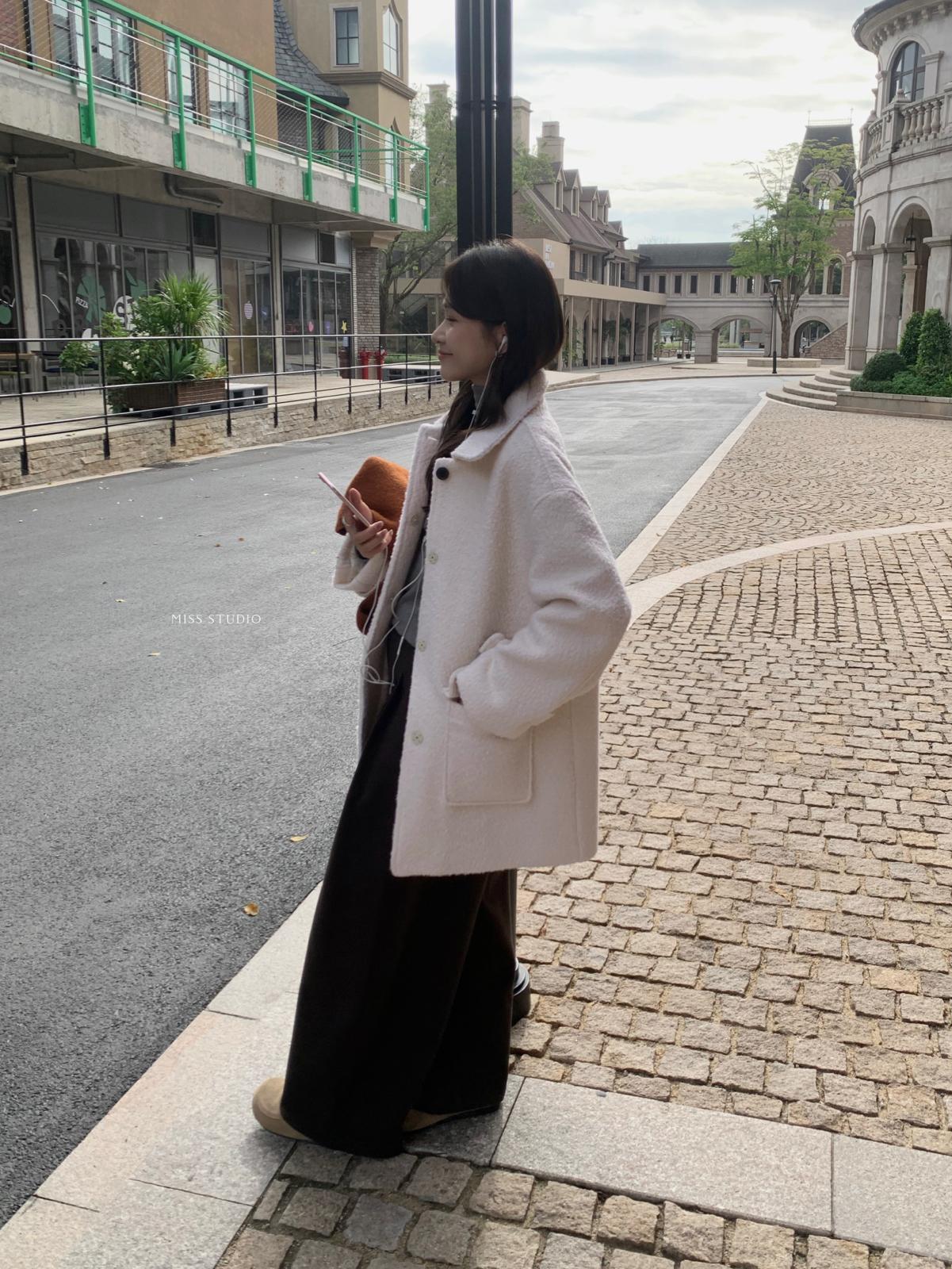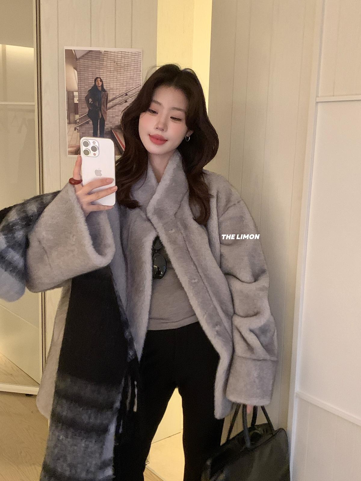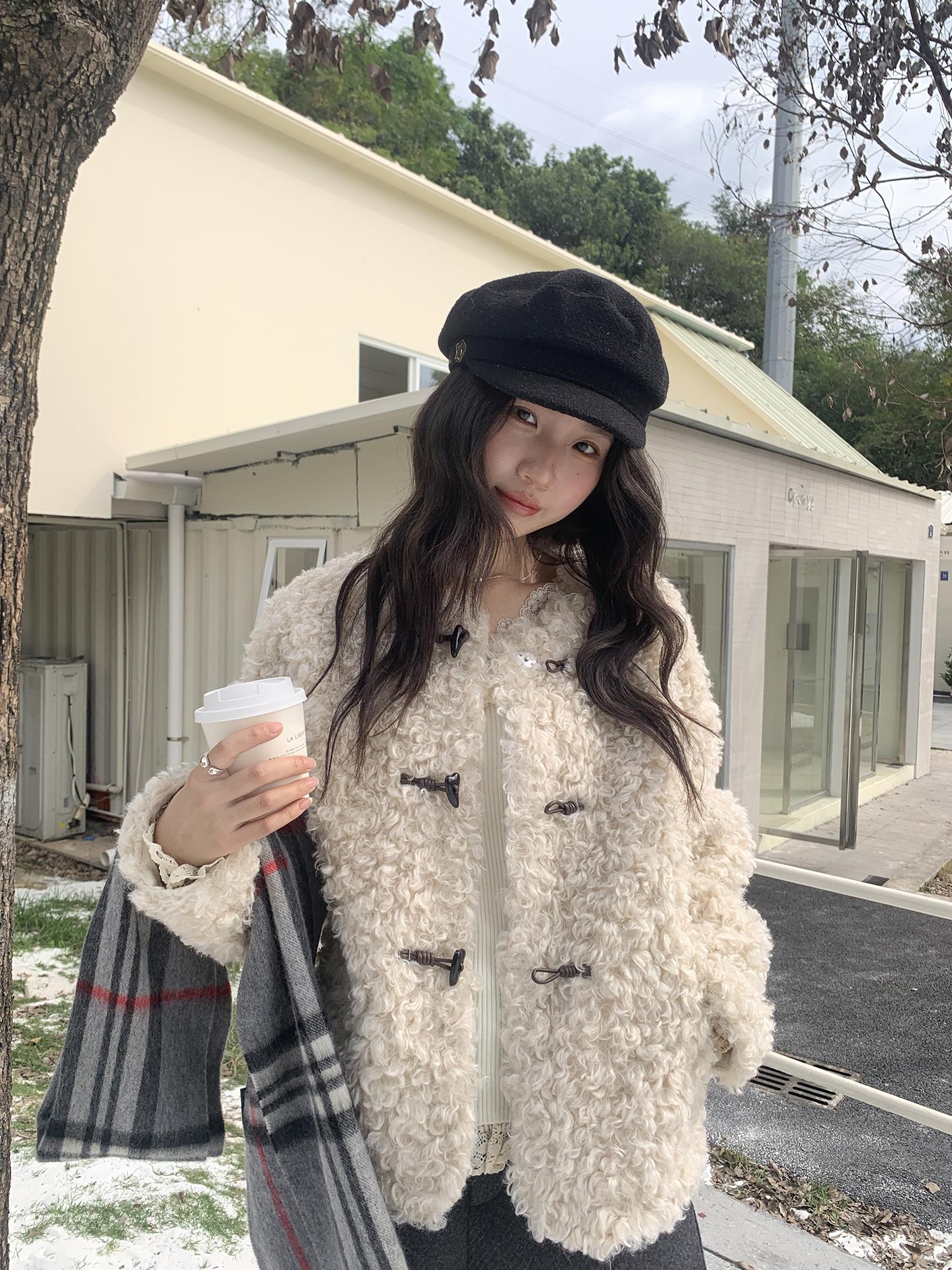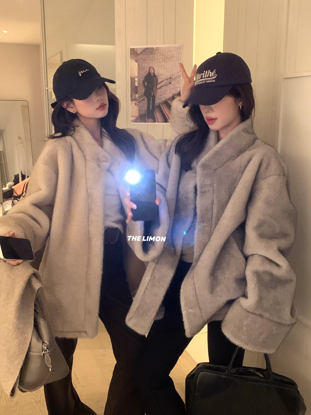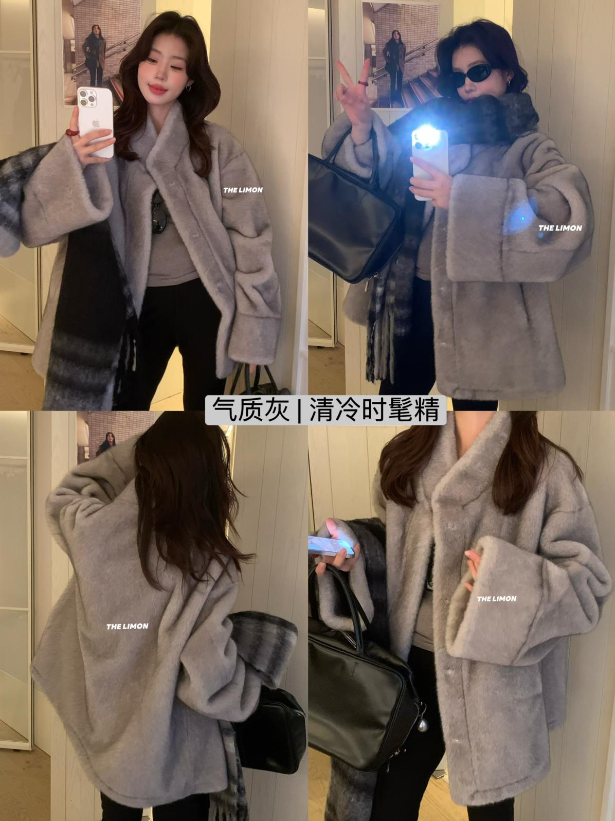 【C7961】冬上新!法式復古可拆皮領仿羊羔羊毛外套(可拆卸皮領)