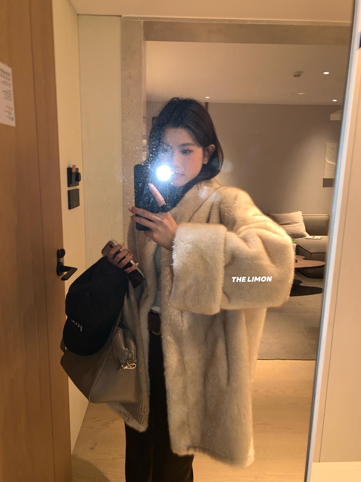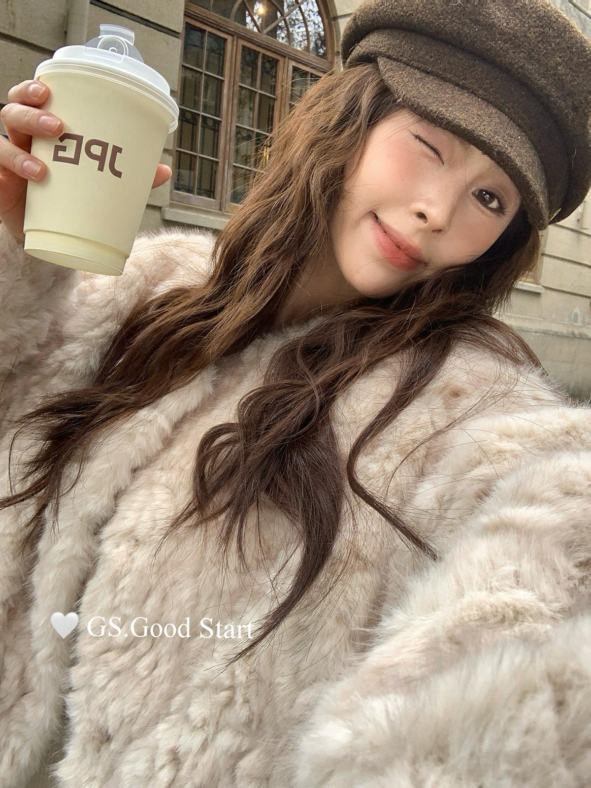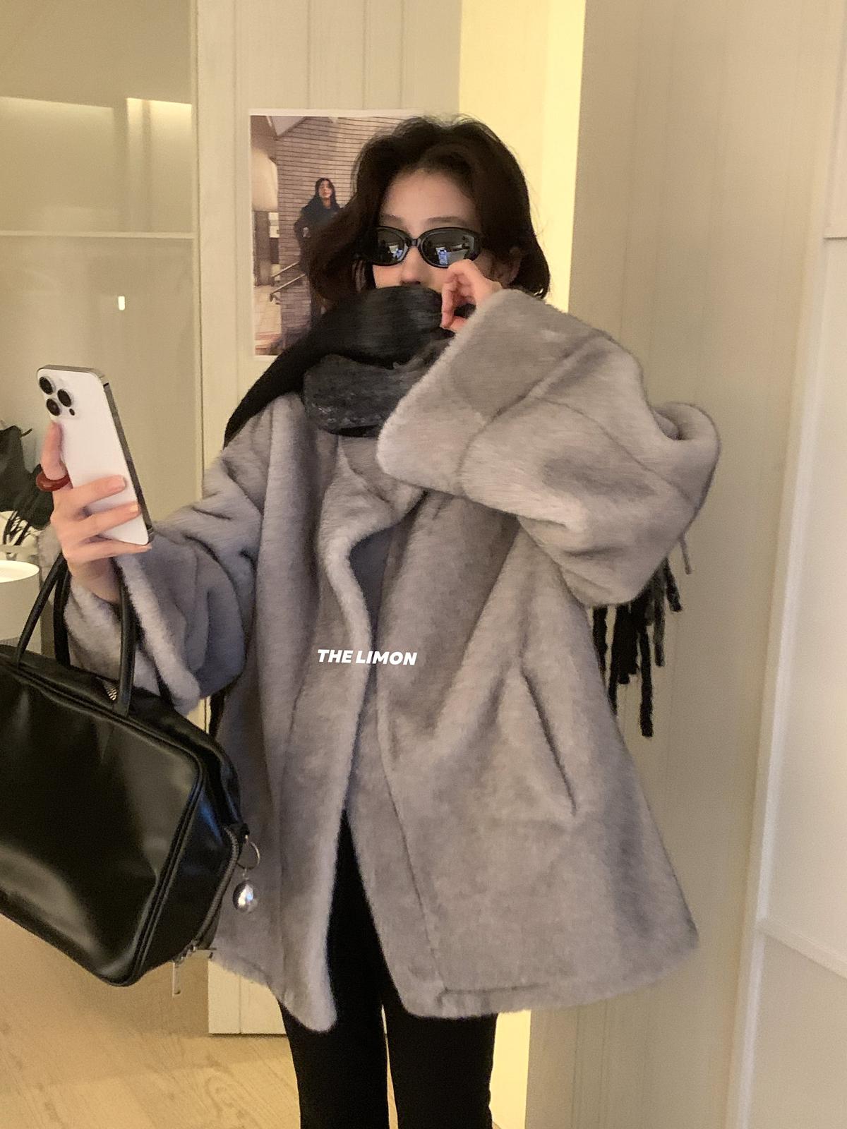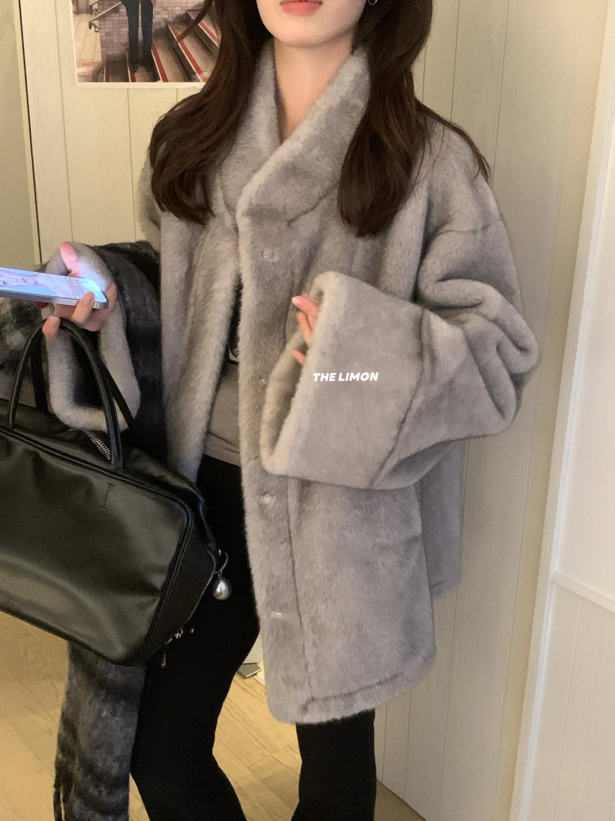 【C7961】冬上新!法式復古可拆皮領仿羊羔羊毛外套(可拆卸皮領)