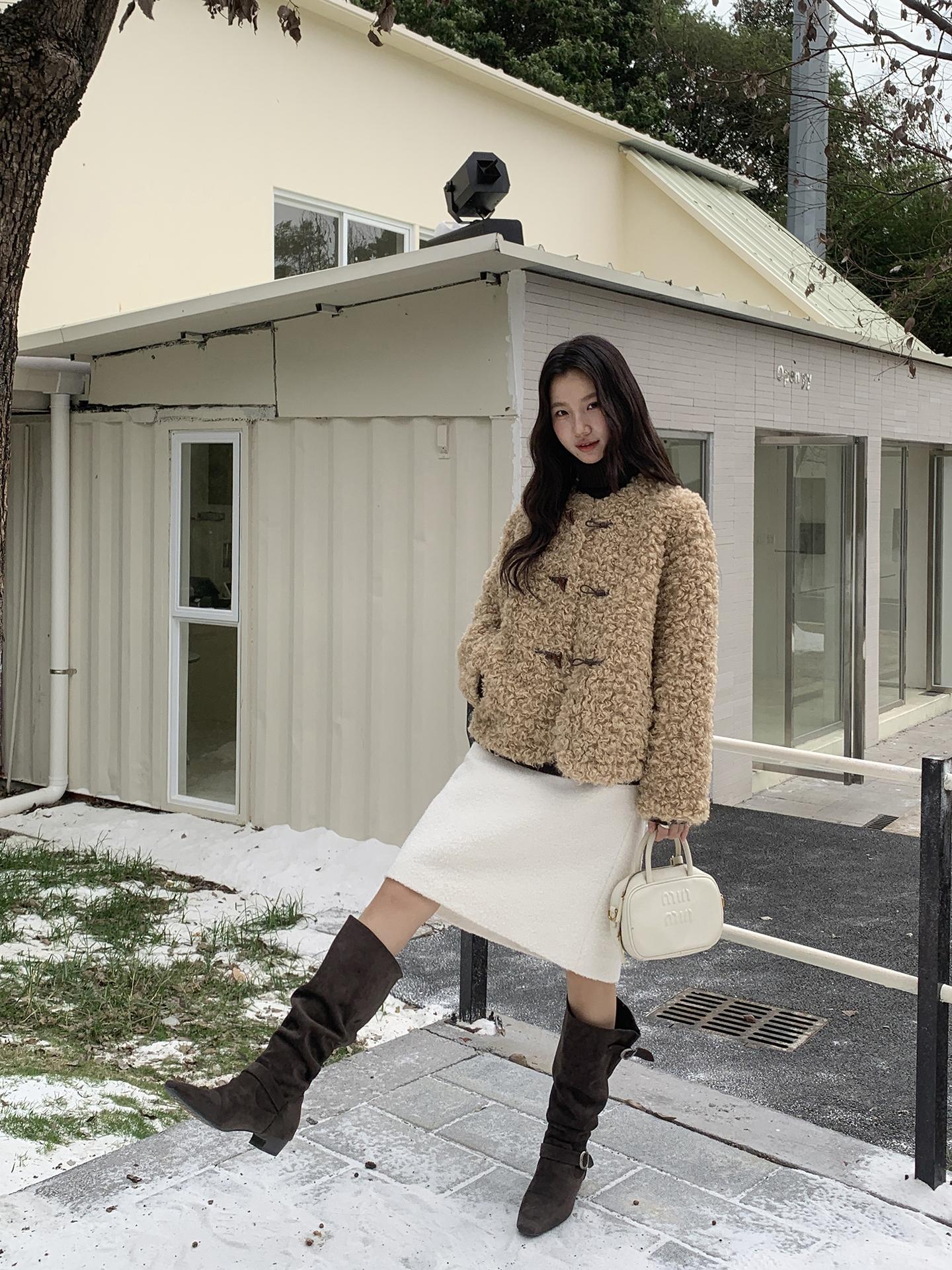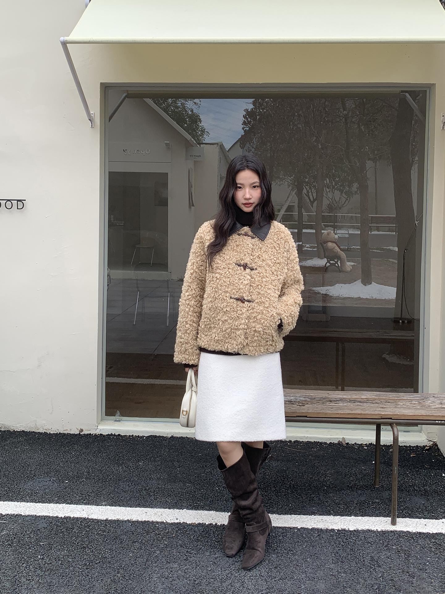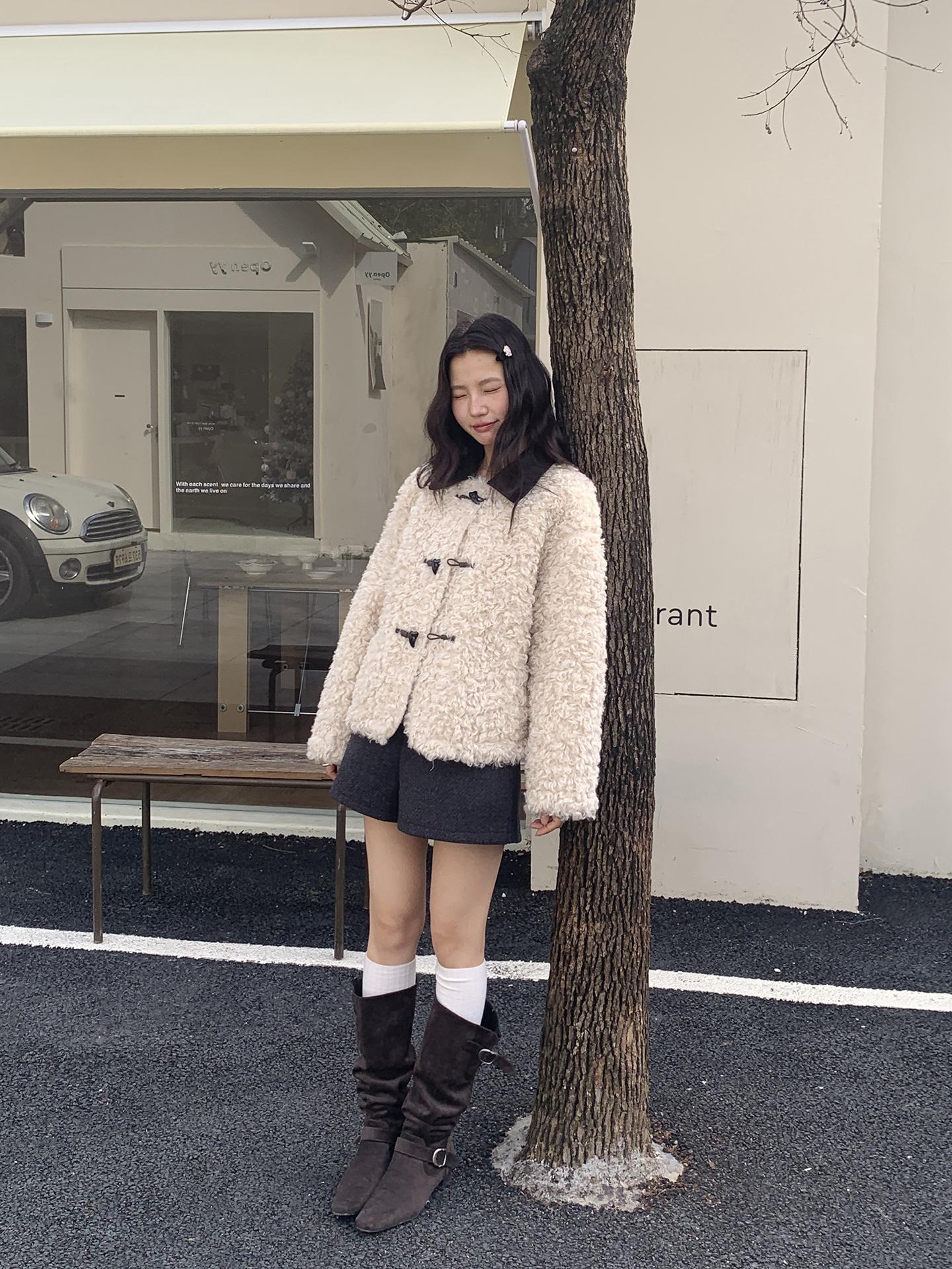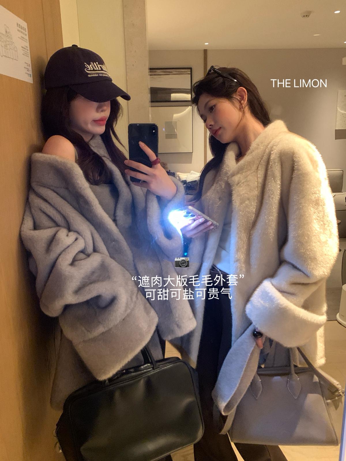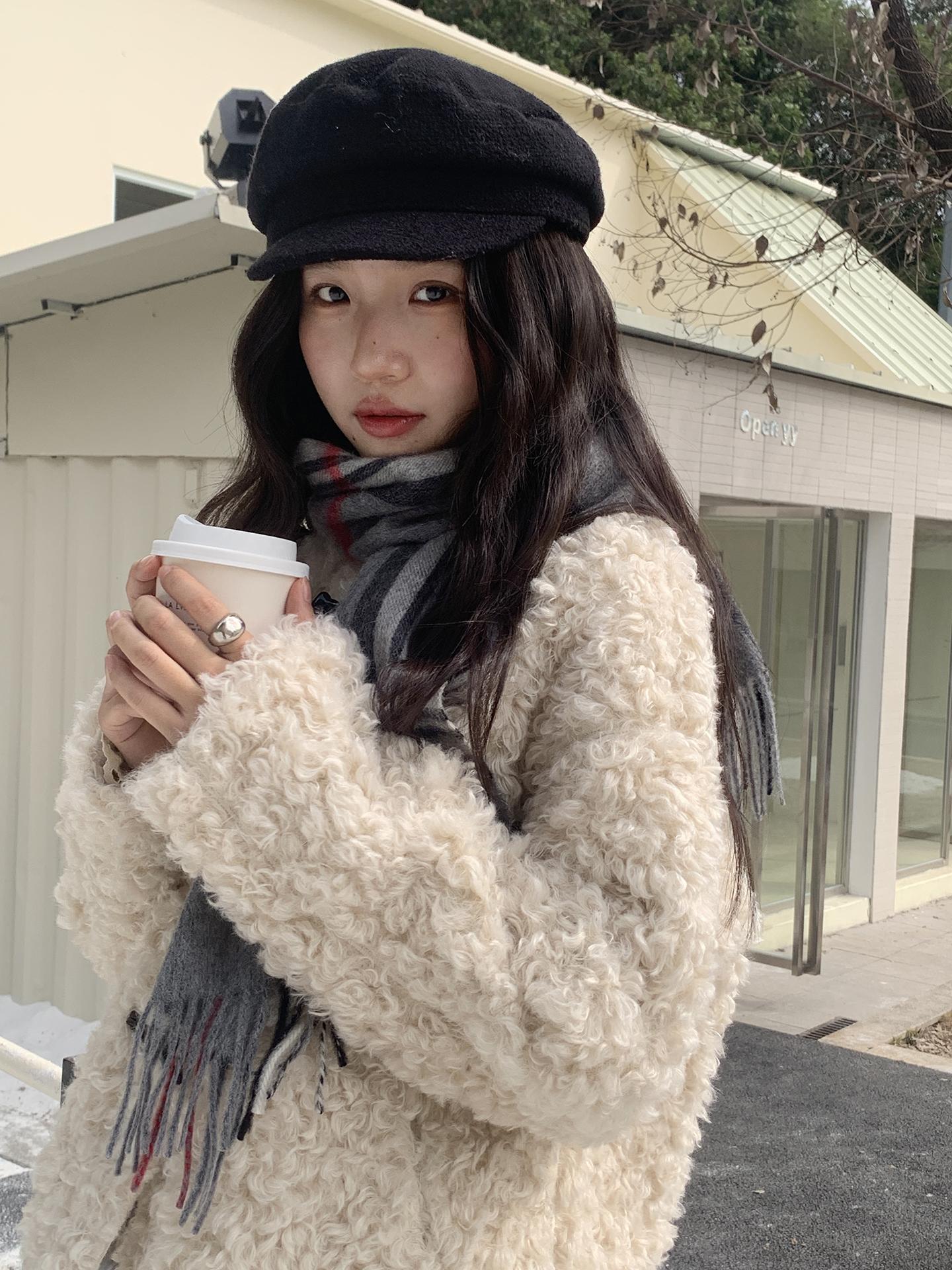 【C7961】冬上新!法式復古可拆皮領仿羊羔羊毛外套(可拆卸皮領)
