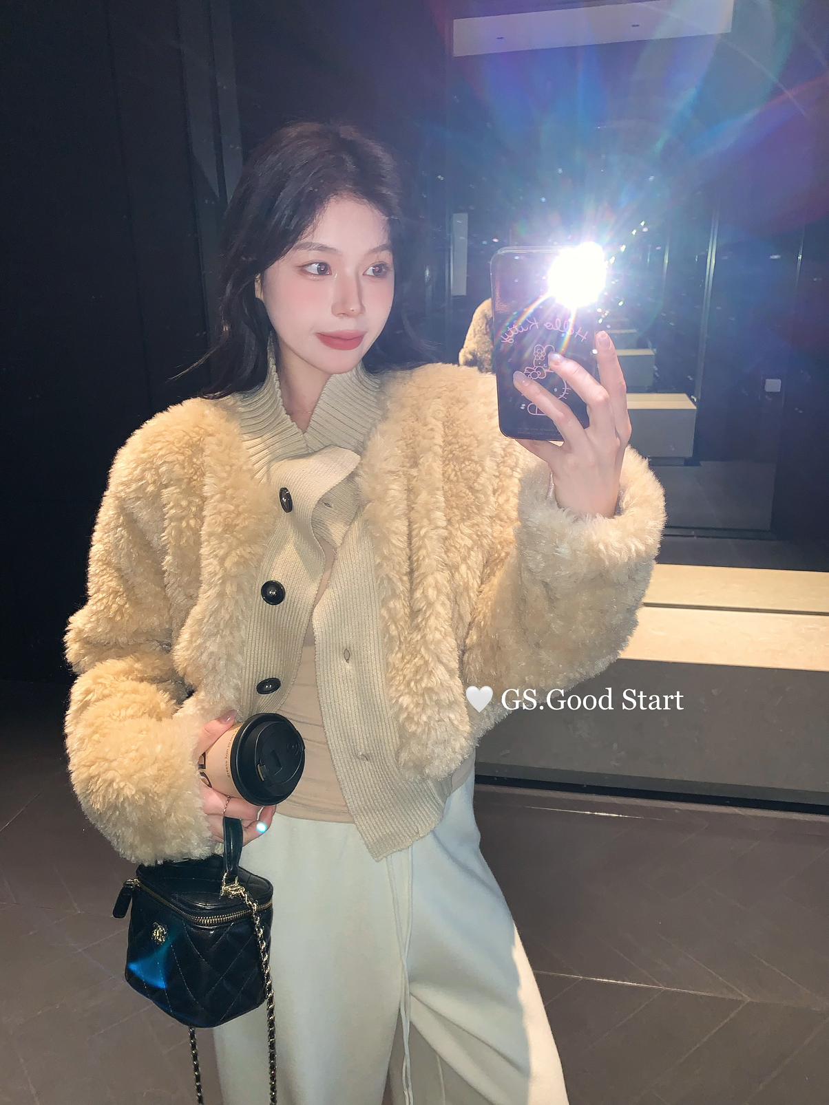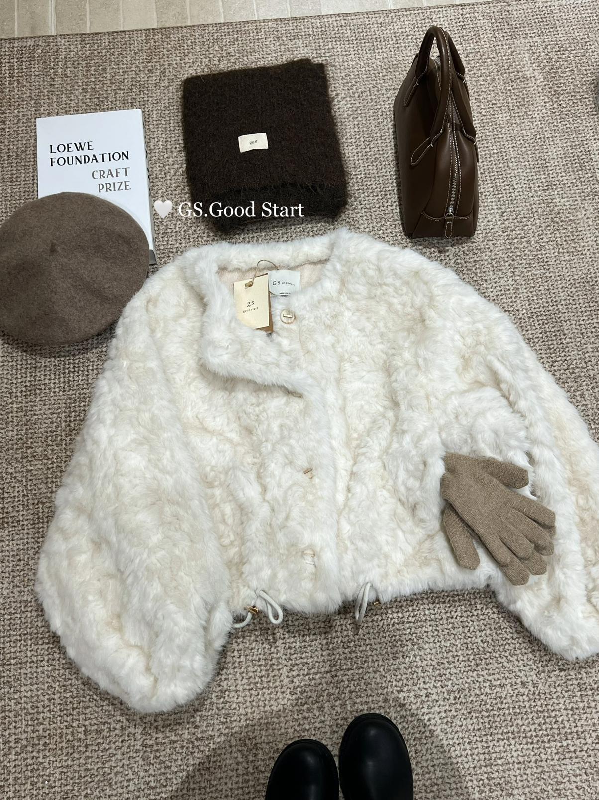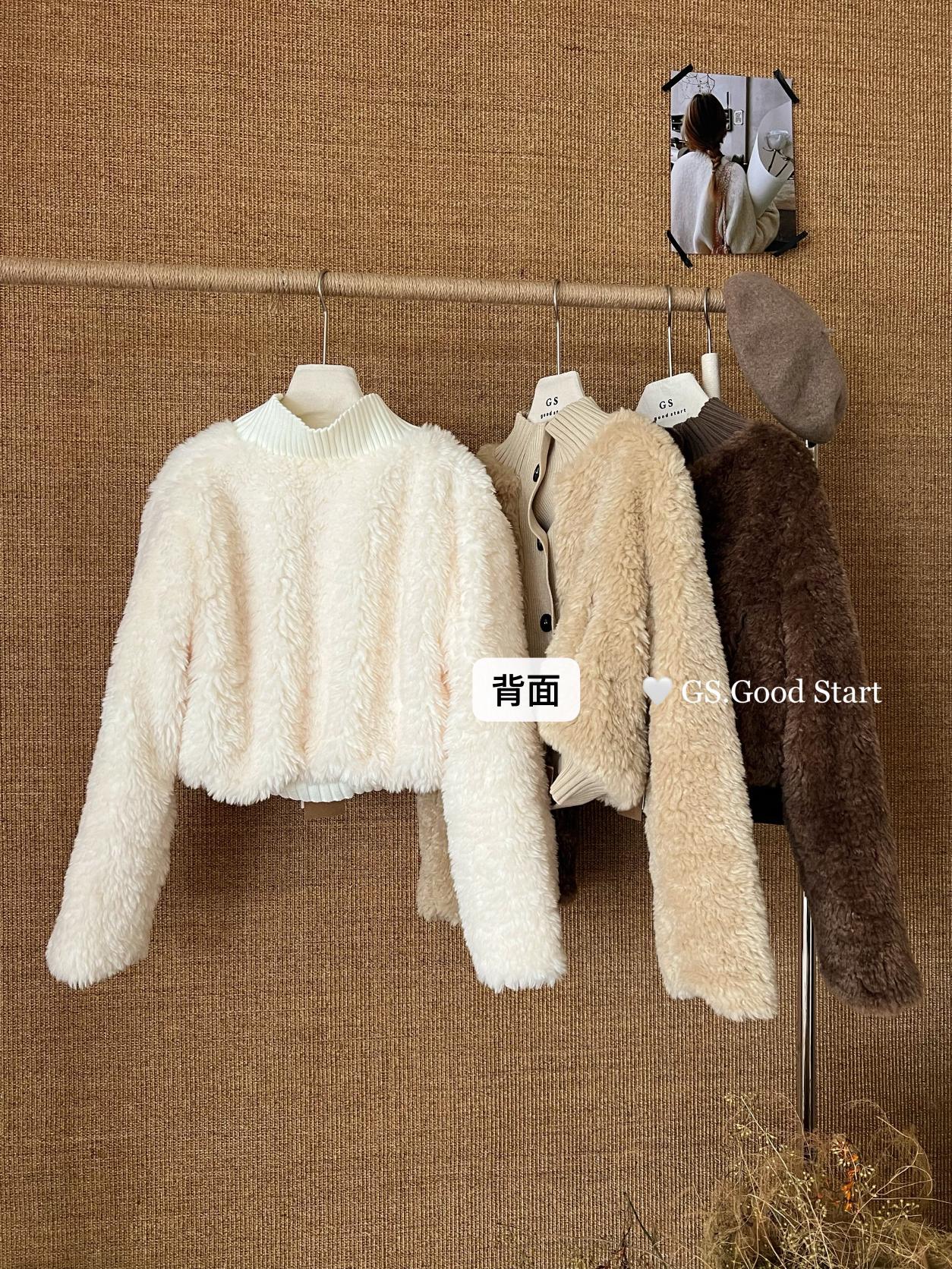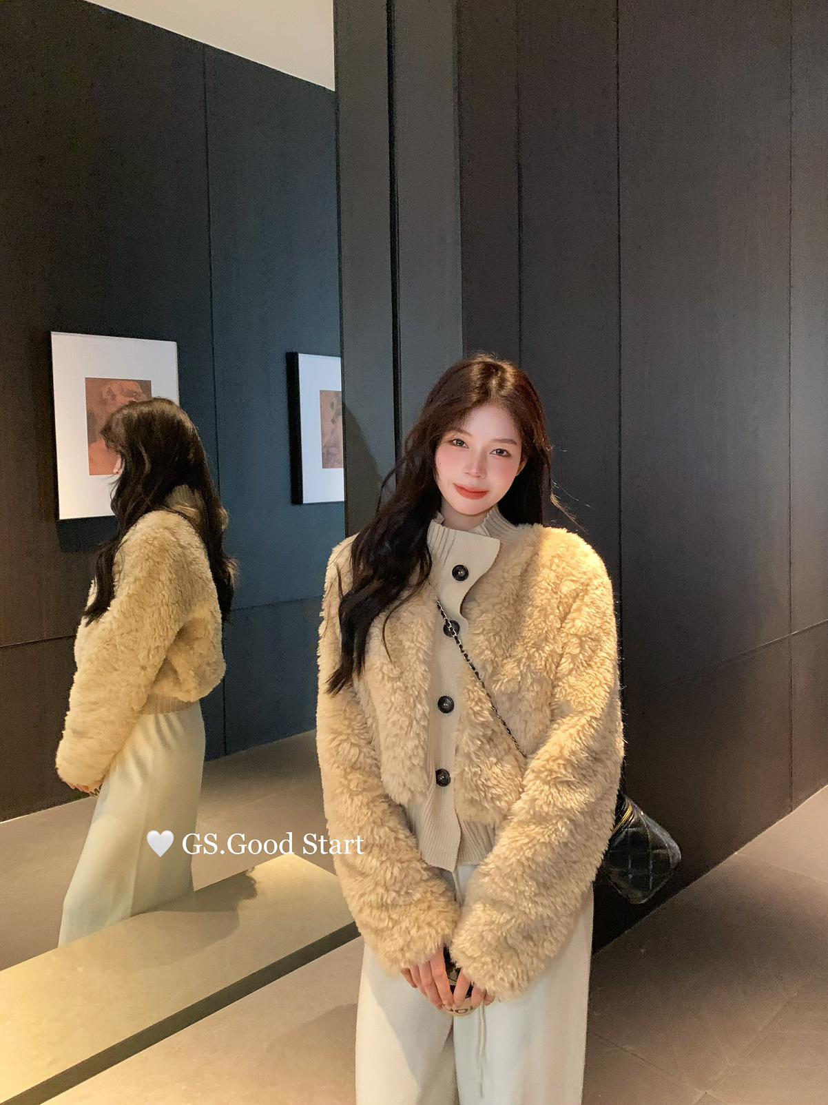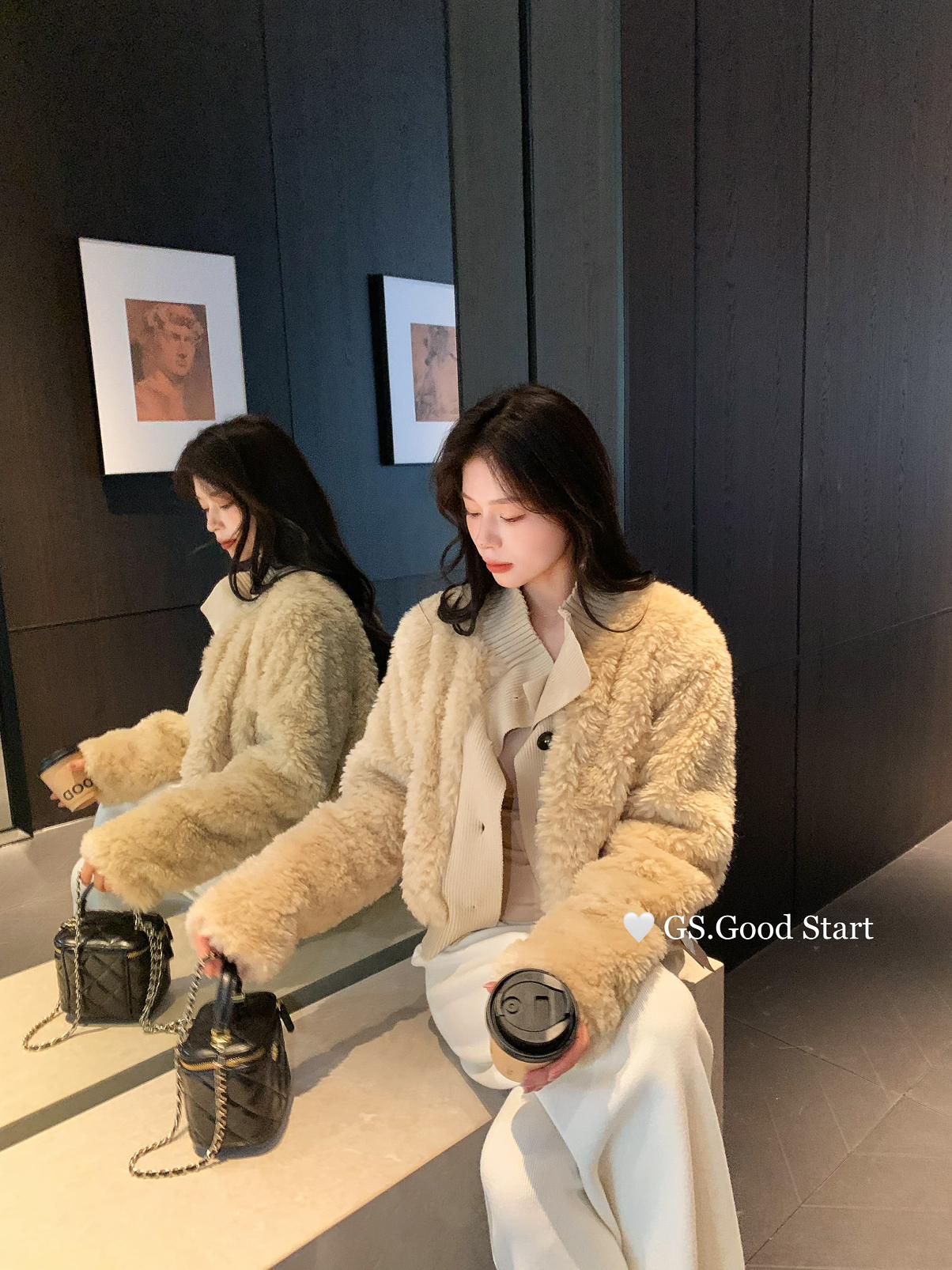 【C7949】老錢慵懶風百搭洋氣環保毛短外套