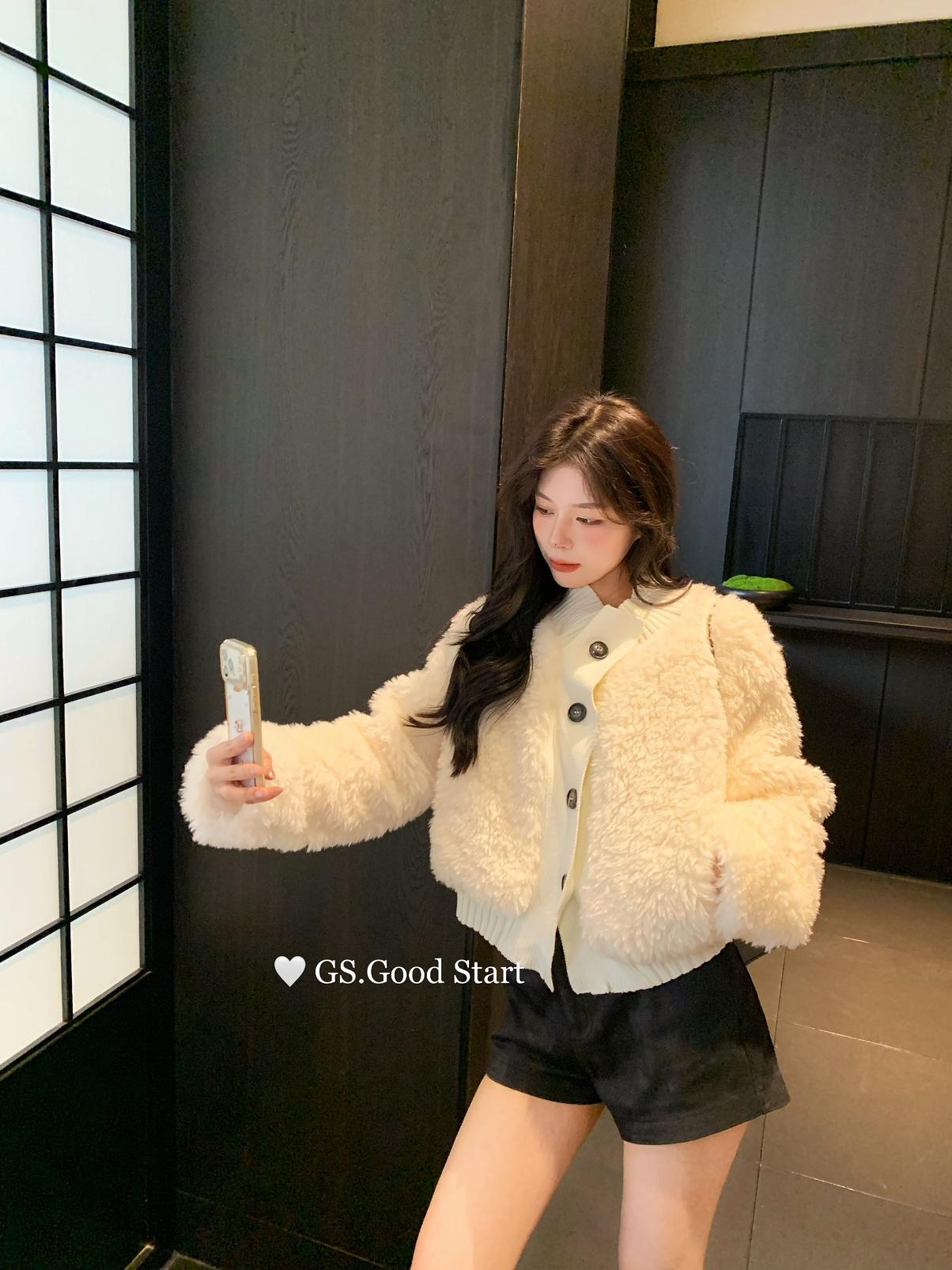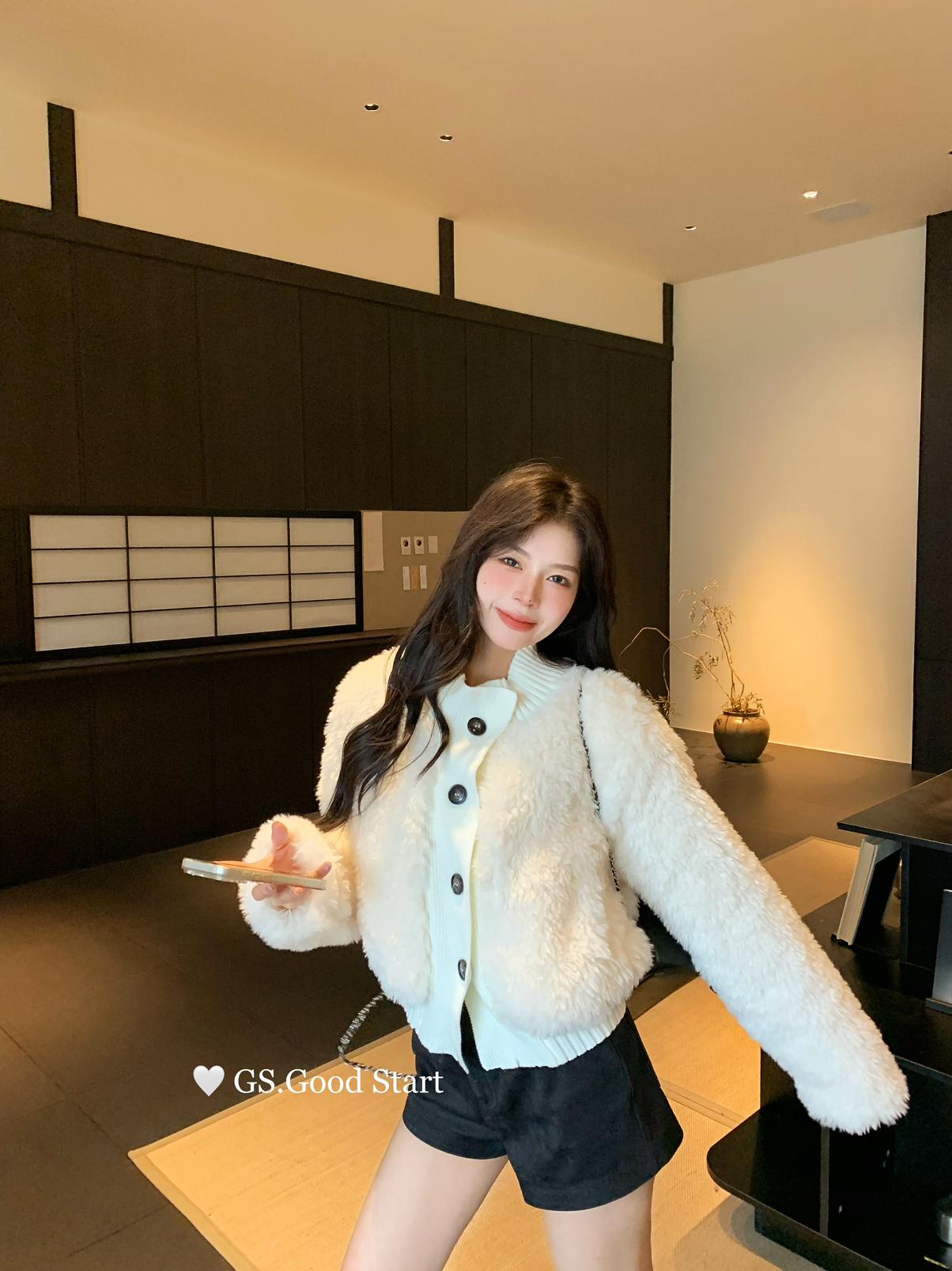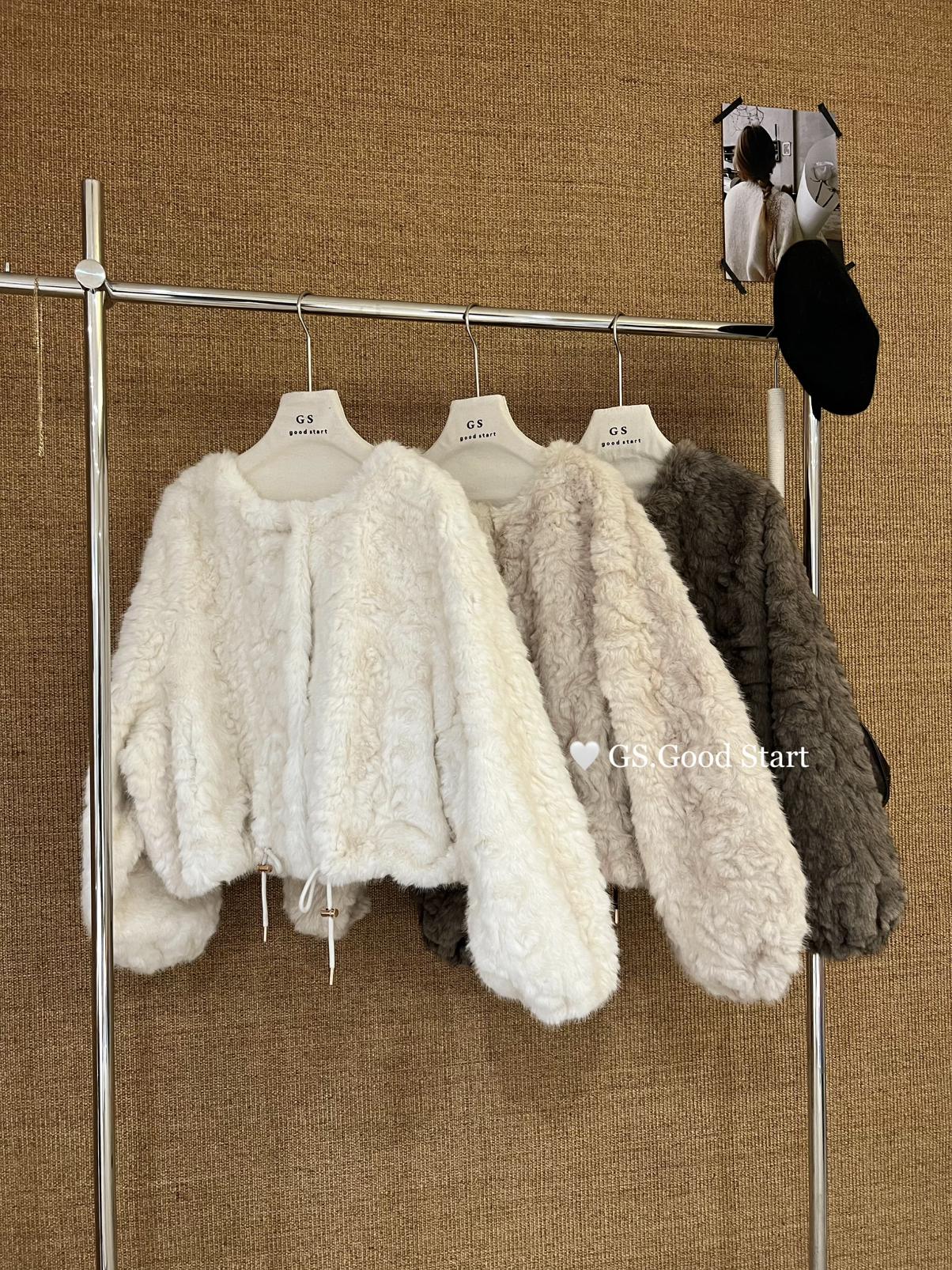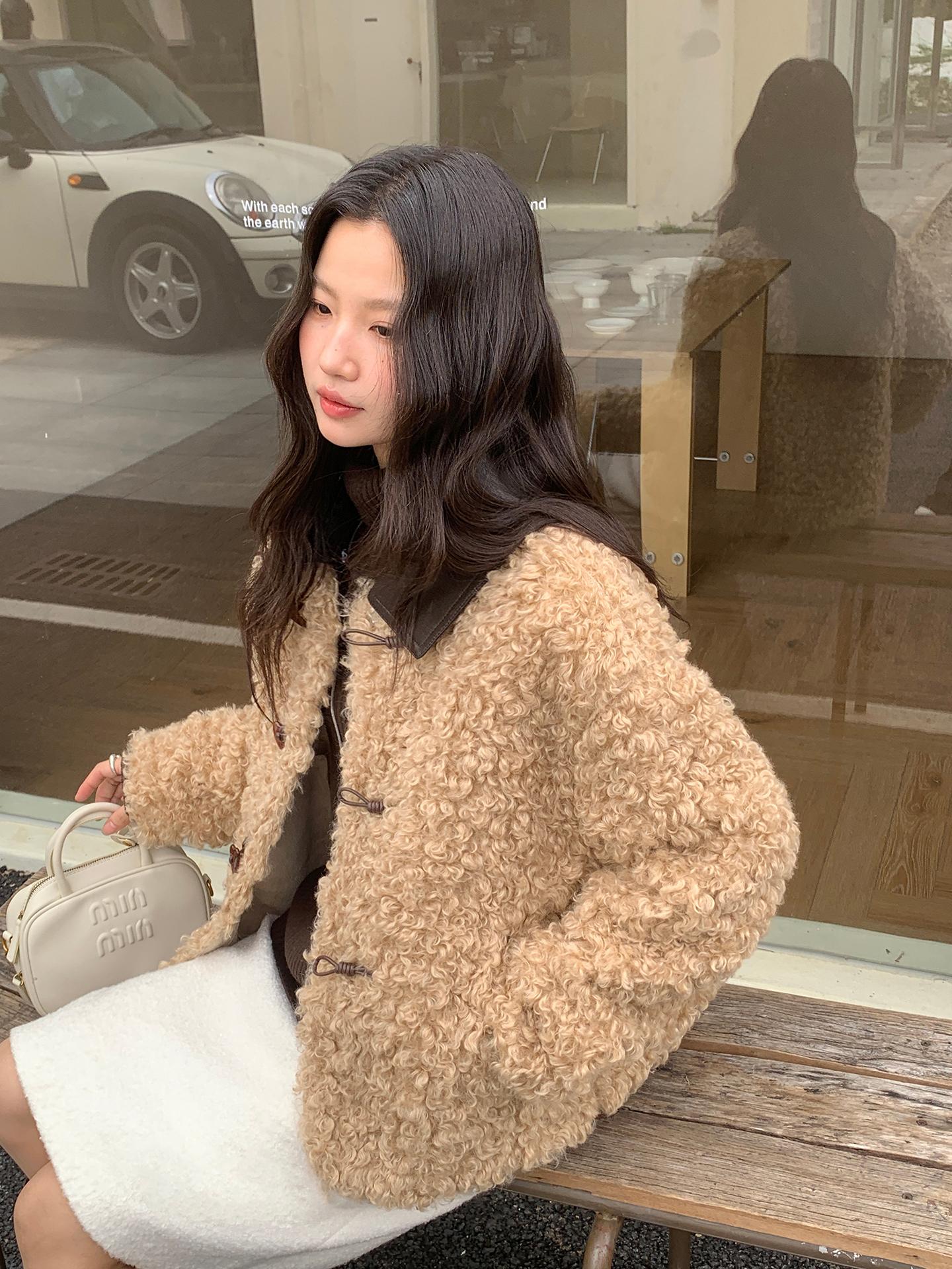 【C7949】老錢慵懶風百搭洋氣環保毛短外套