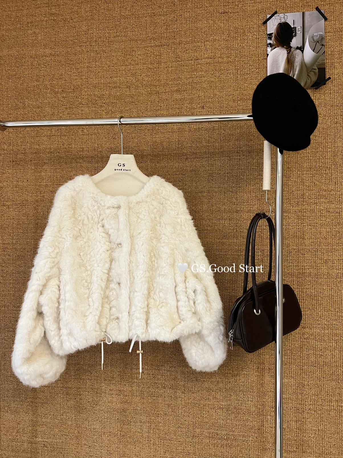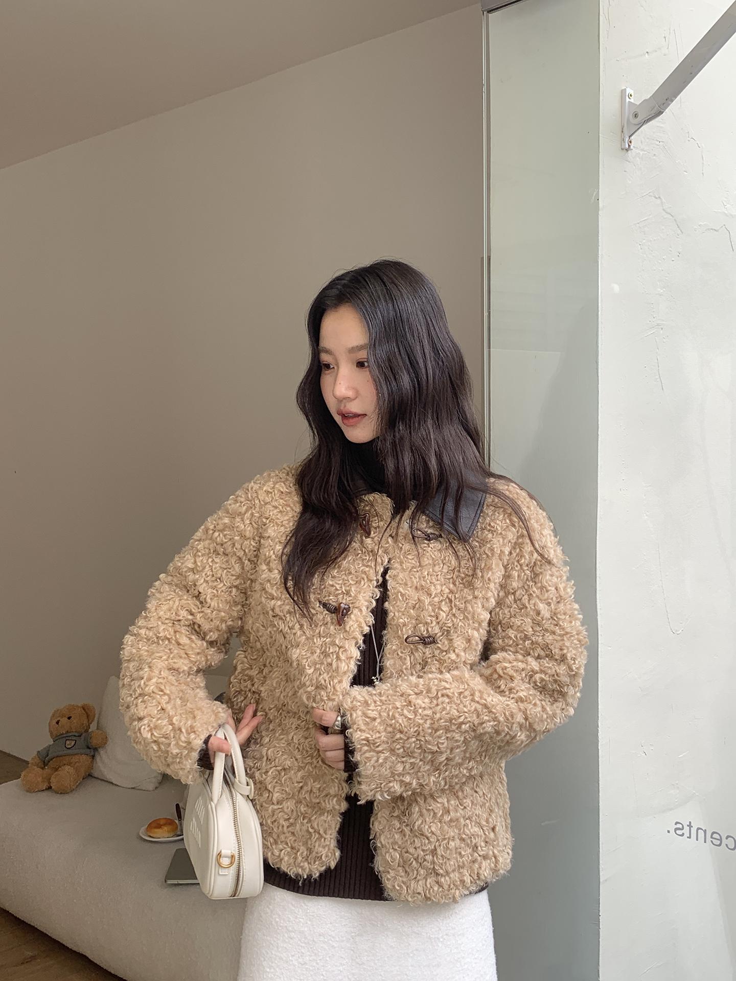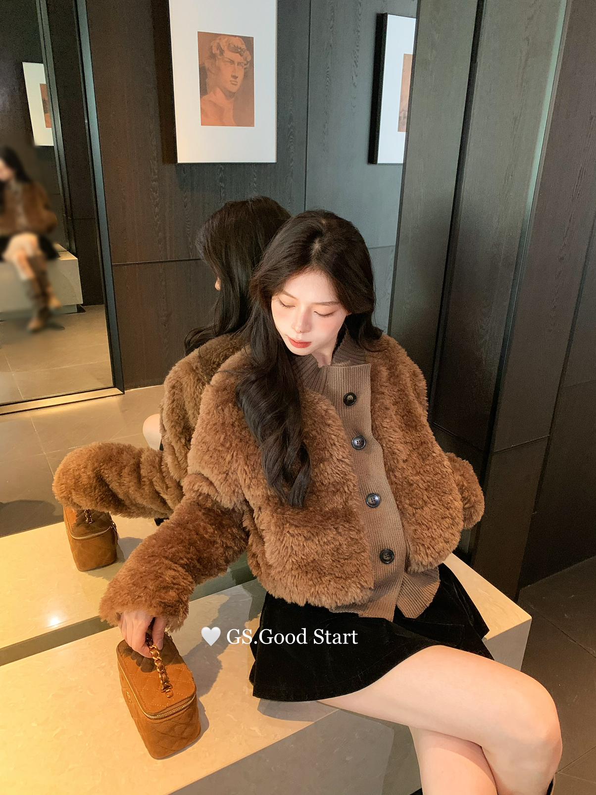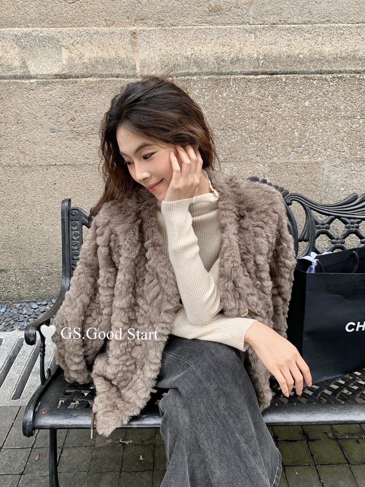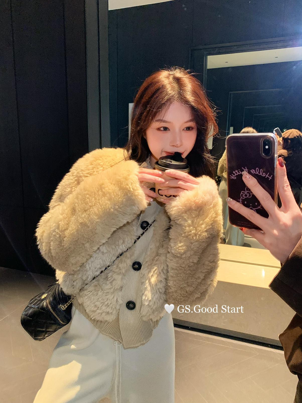 【C7949】老錢慵懶風百搭洋氣環保毛短外套