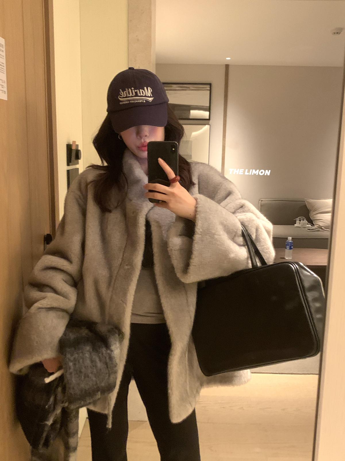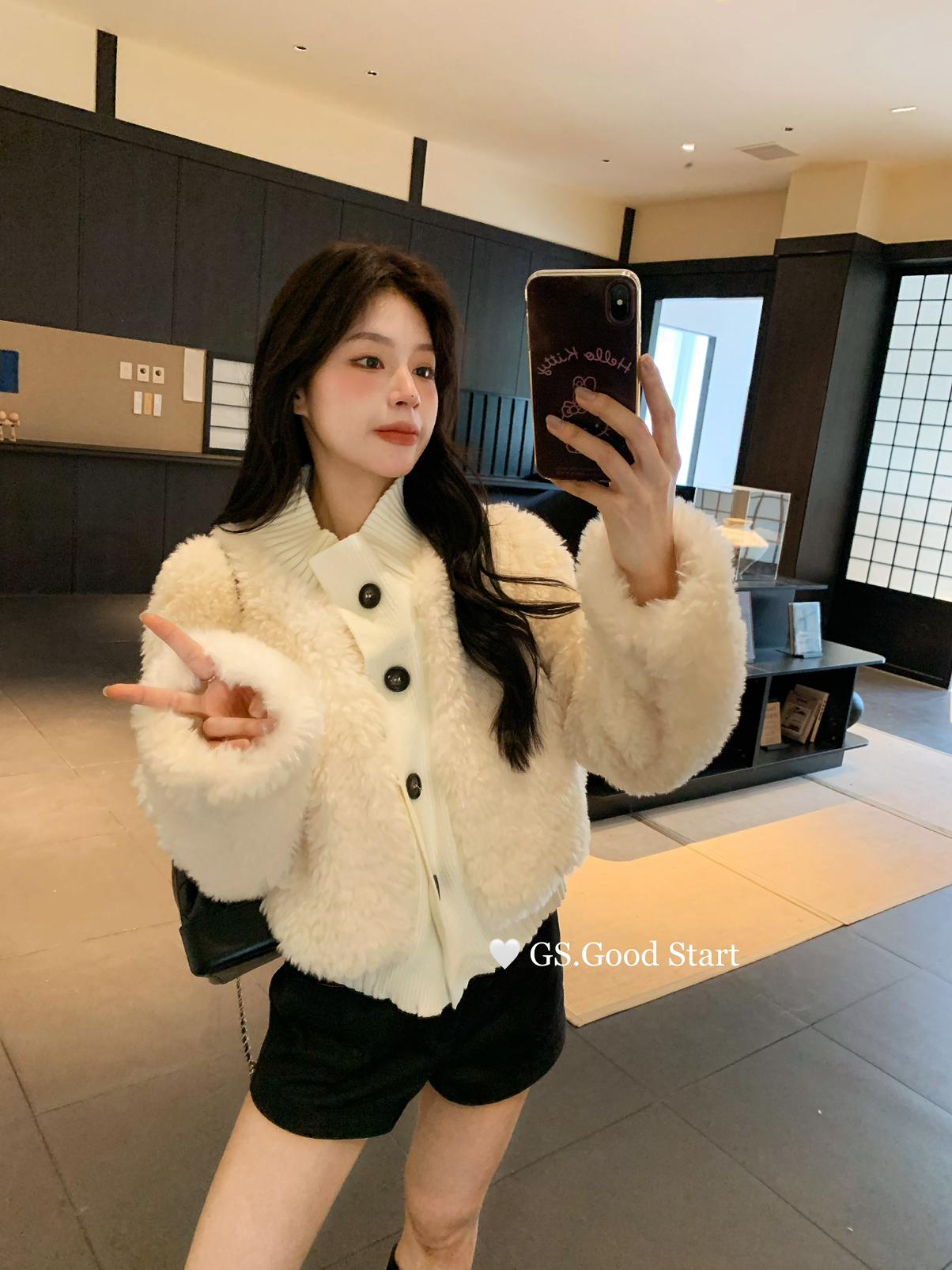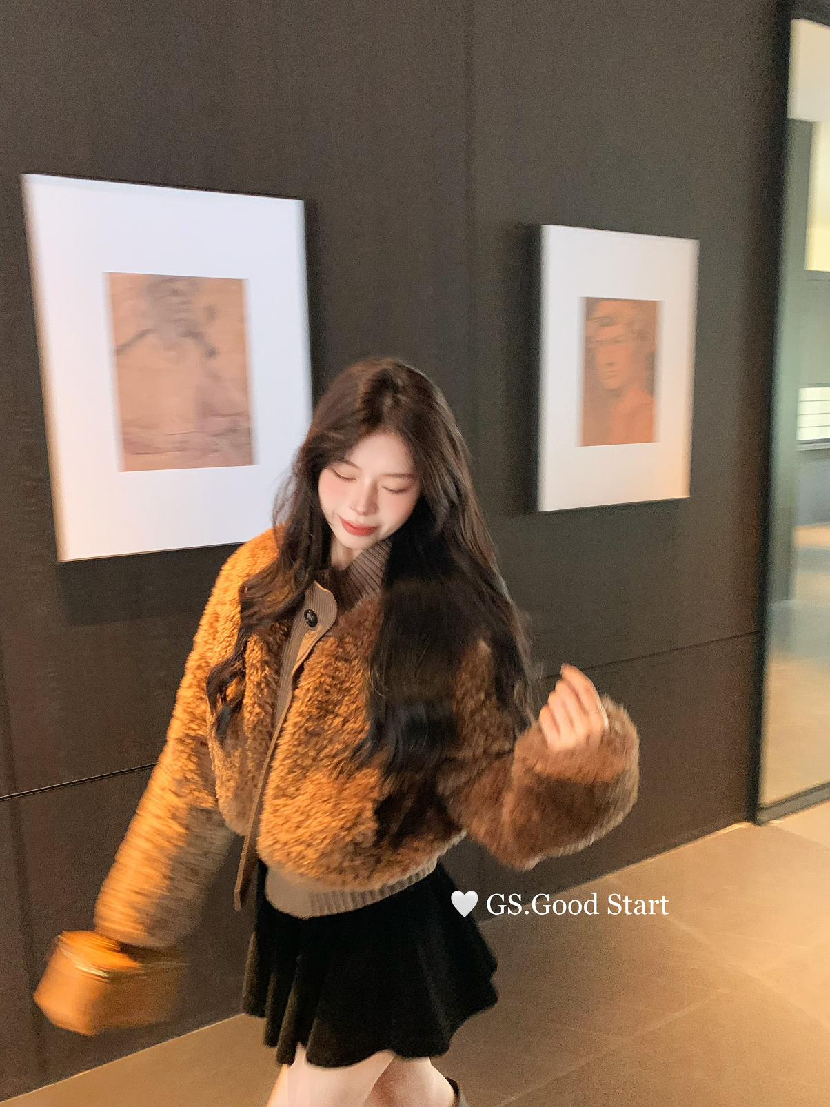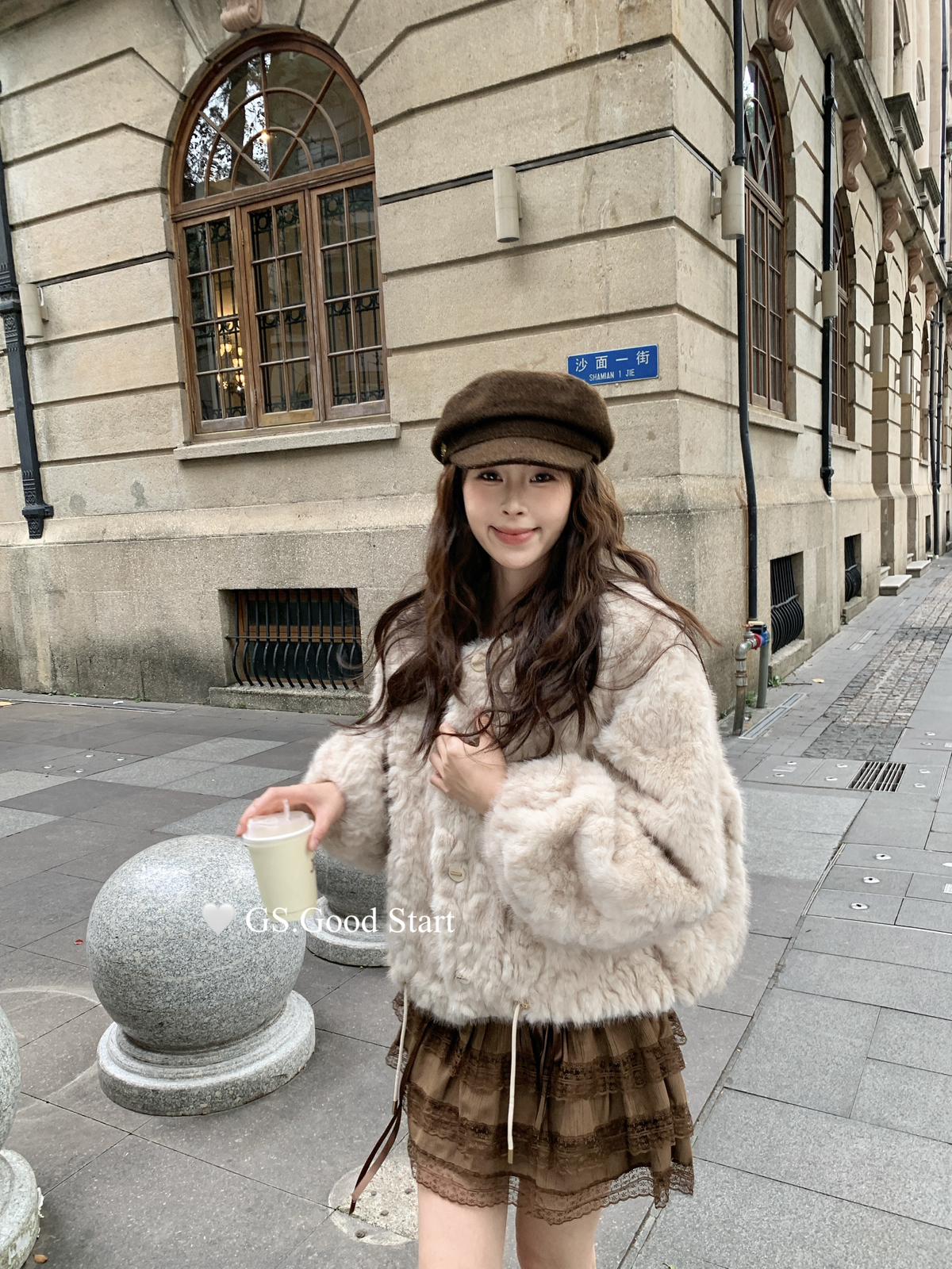 【C7949】老錢慵懶風百搭洋氣環保毛短外套
