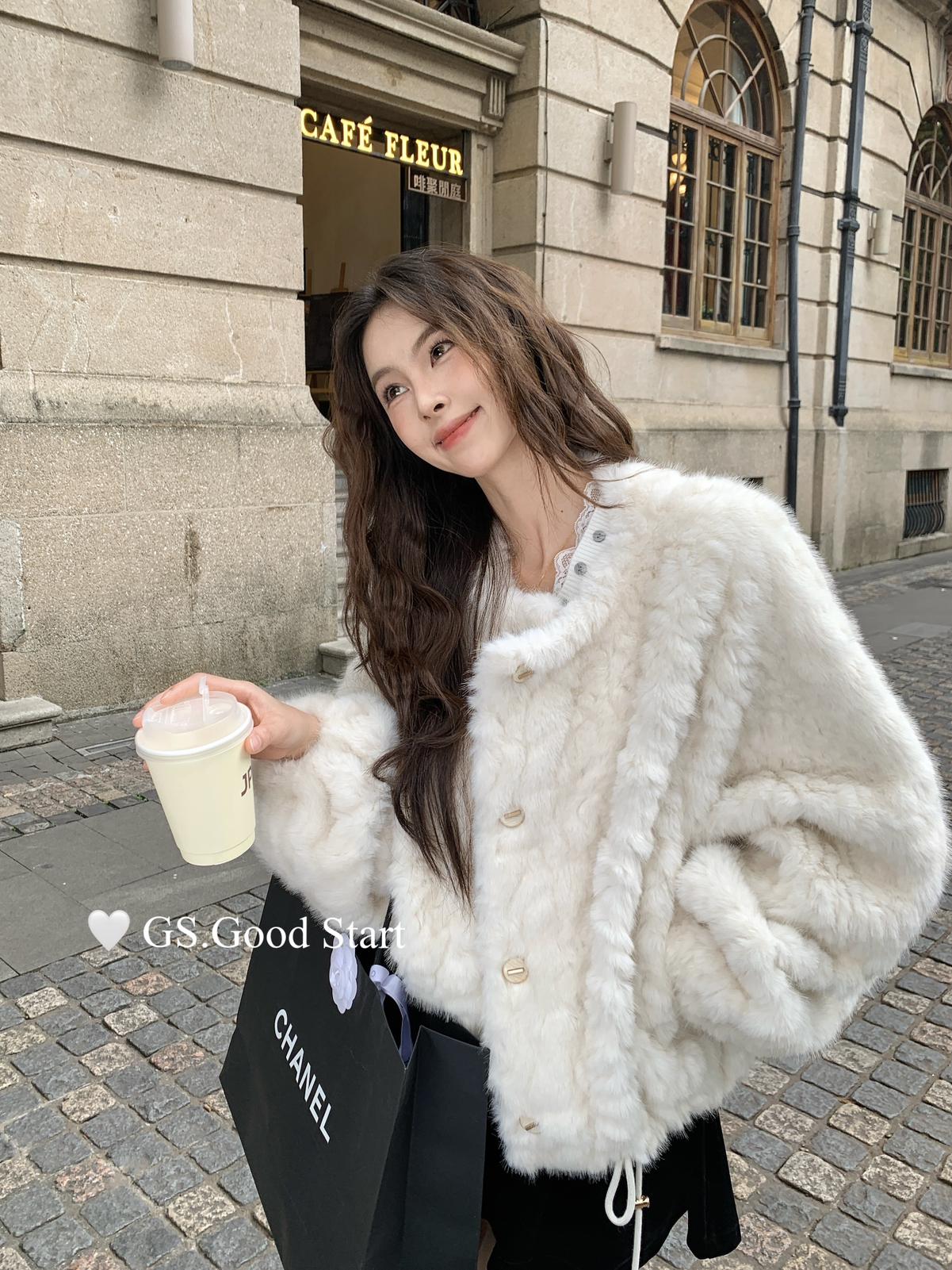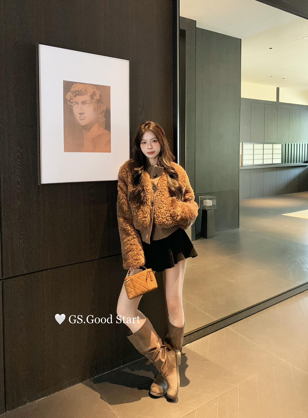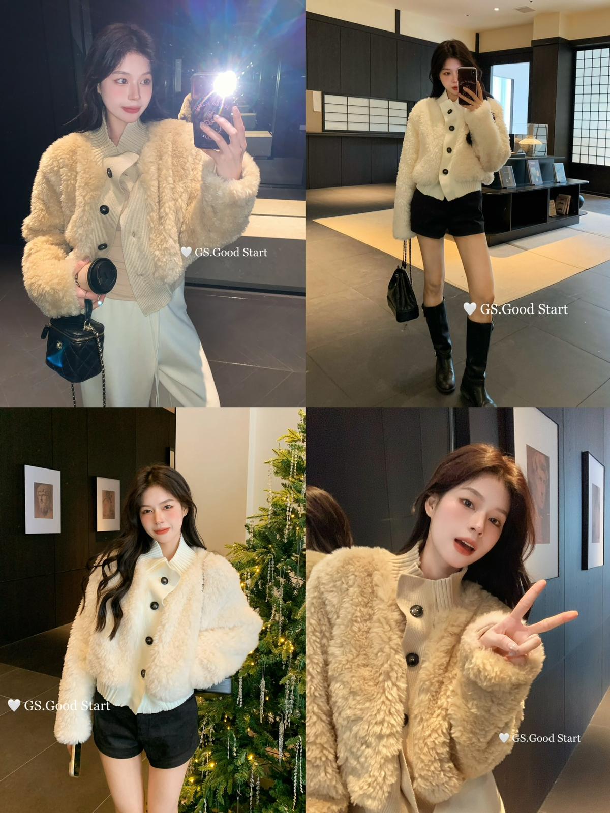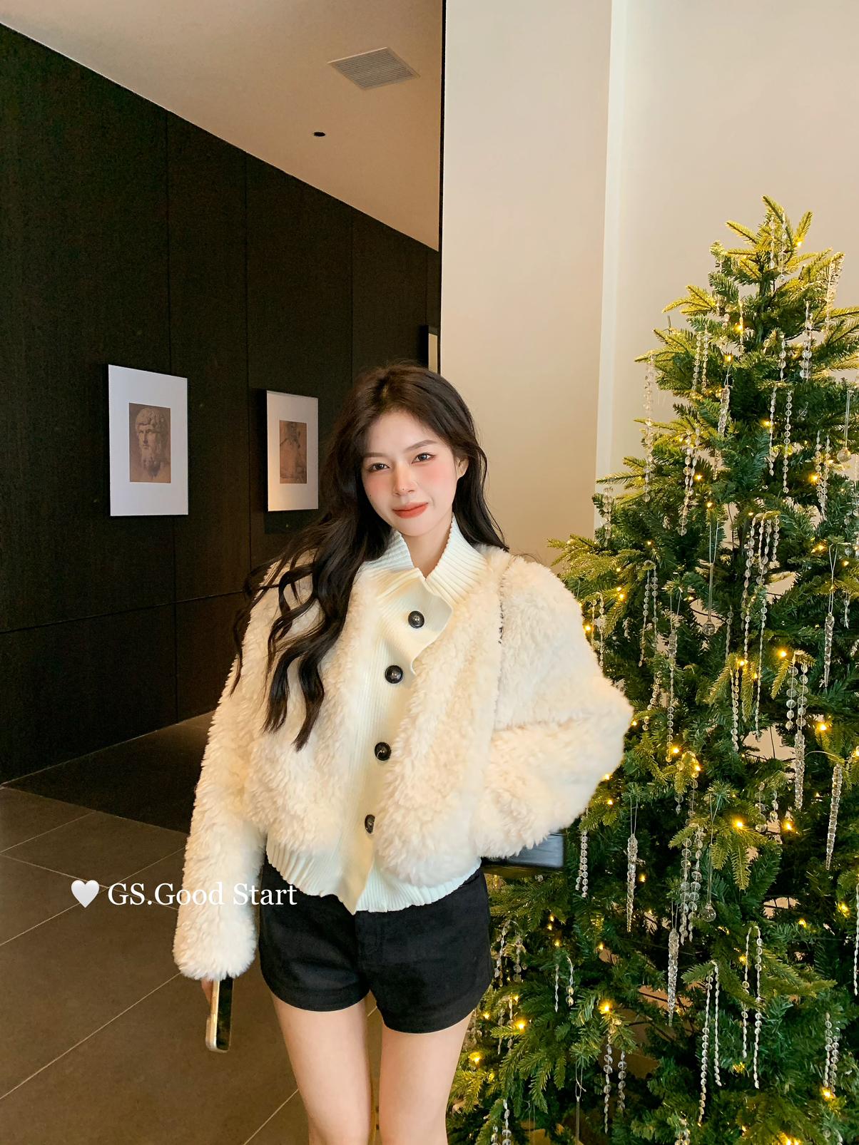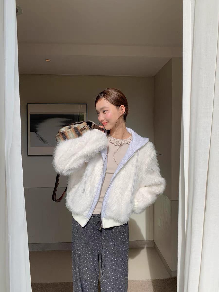 【C7949】老錢慵懶風百搭洋氣環保毛短外套